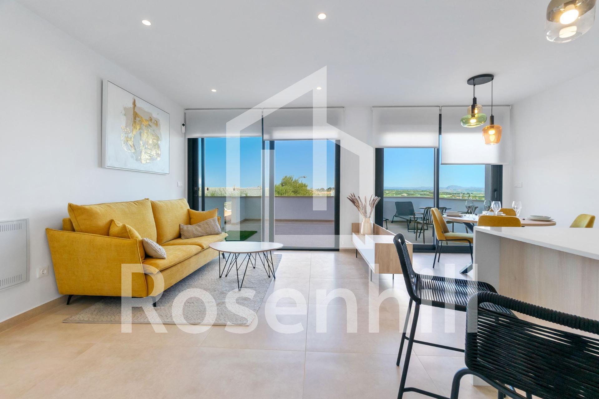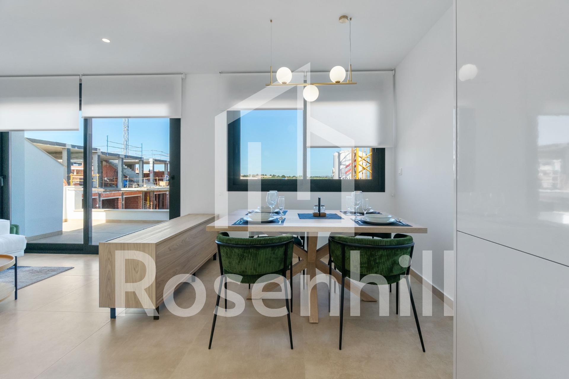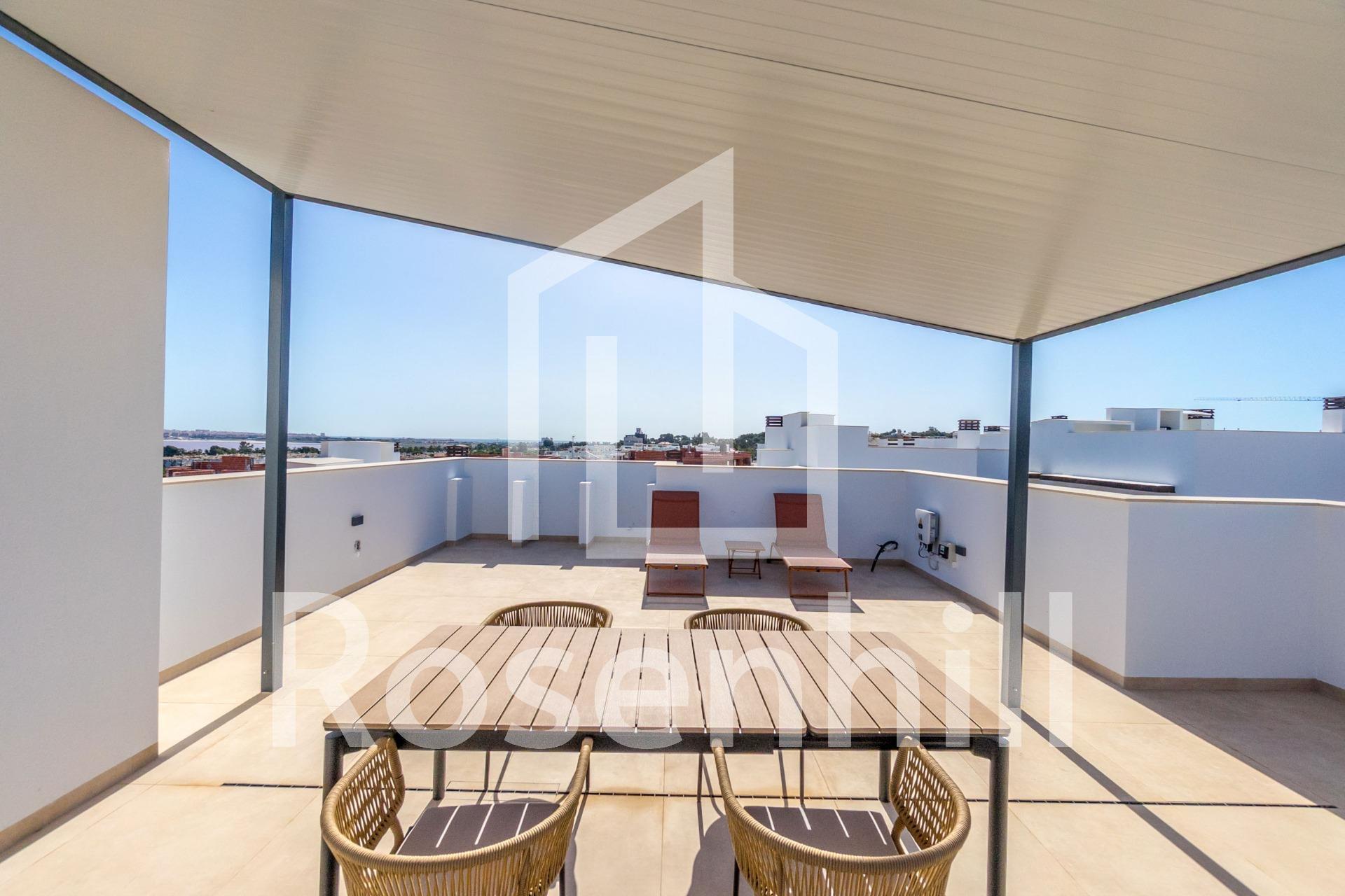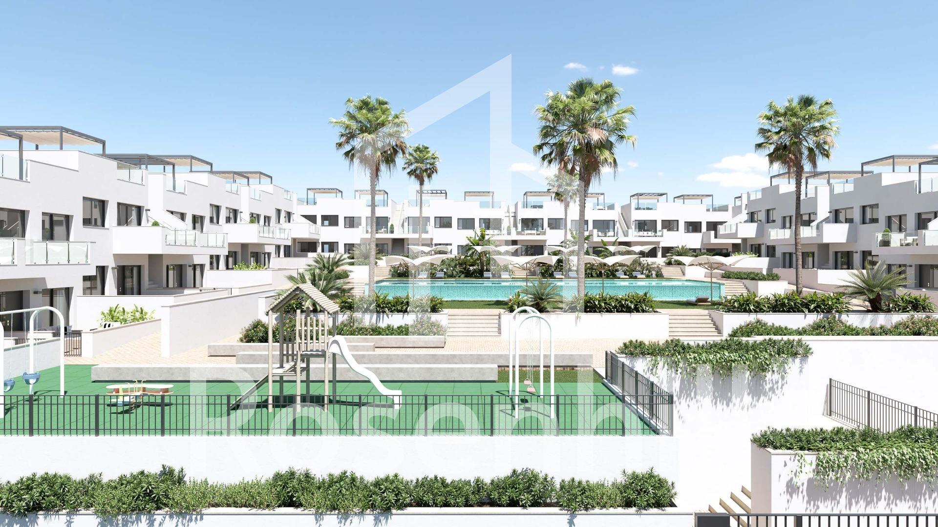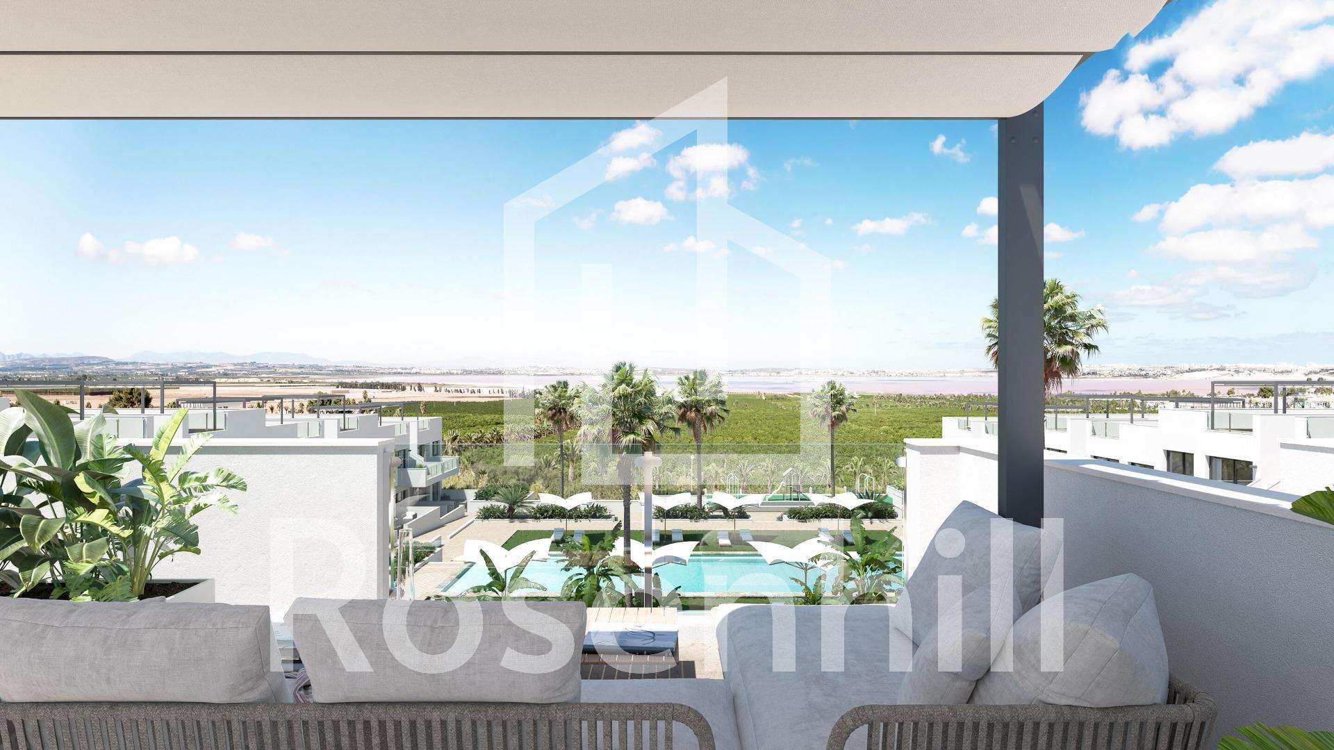 NEW BUILD RESIDENTIAL OF BUNGALOW APARTMENTS IN LOS BALCONES Discover the perfect harmony between luxury and comfort in our ground-floor apartments with a garden or upper-floor apartments featuring a balcony and solarium. The residences consist of 2 bedrooms and 2 bathrooms, with the option of a third bedroom to suit your needs. Each apartment offers spectacular views of the pink lagoon of Torrevieja, creating a unique experience where nature becomes an integral part of your daily life. The common areas are an extension of your own private oasis. Immerse yourself in our infinity pool while enjoying panoramic views of the pink lagoon, play with the little ones in the playground, or stroll through the landscaped green areas. Strategically nestled, places you minutes away from the beaches of Torrevieja, the bustling Zenia Boulevard shopping center, and a variety of amenities such as supermarkets, pharmacies, and restaurants. The proximity to golf courses and the highway exit to Alicante Airport ensures easy access to everything you love. This properties are more than a home; it is a lifestyle that embraces natural beauty, modern comfort, and convenience. Exceptional residential is the perfect place to live the life you’ve always imagined. Welcome to new residential, where each day is a masterpiece of luxury and serenity!