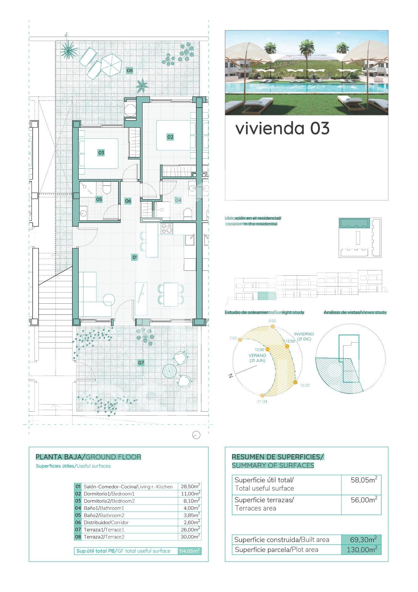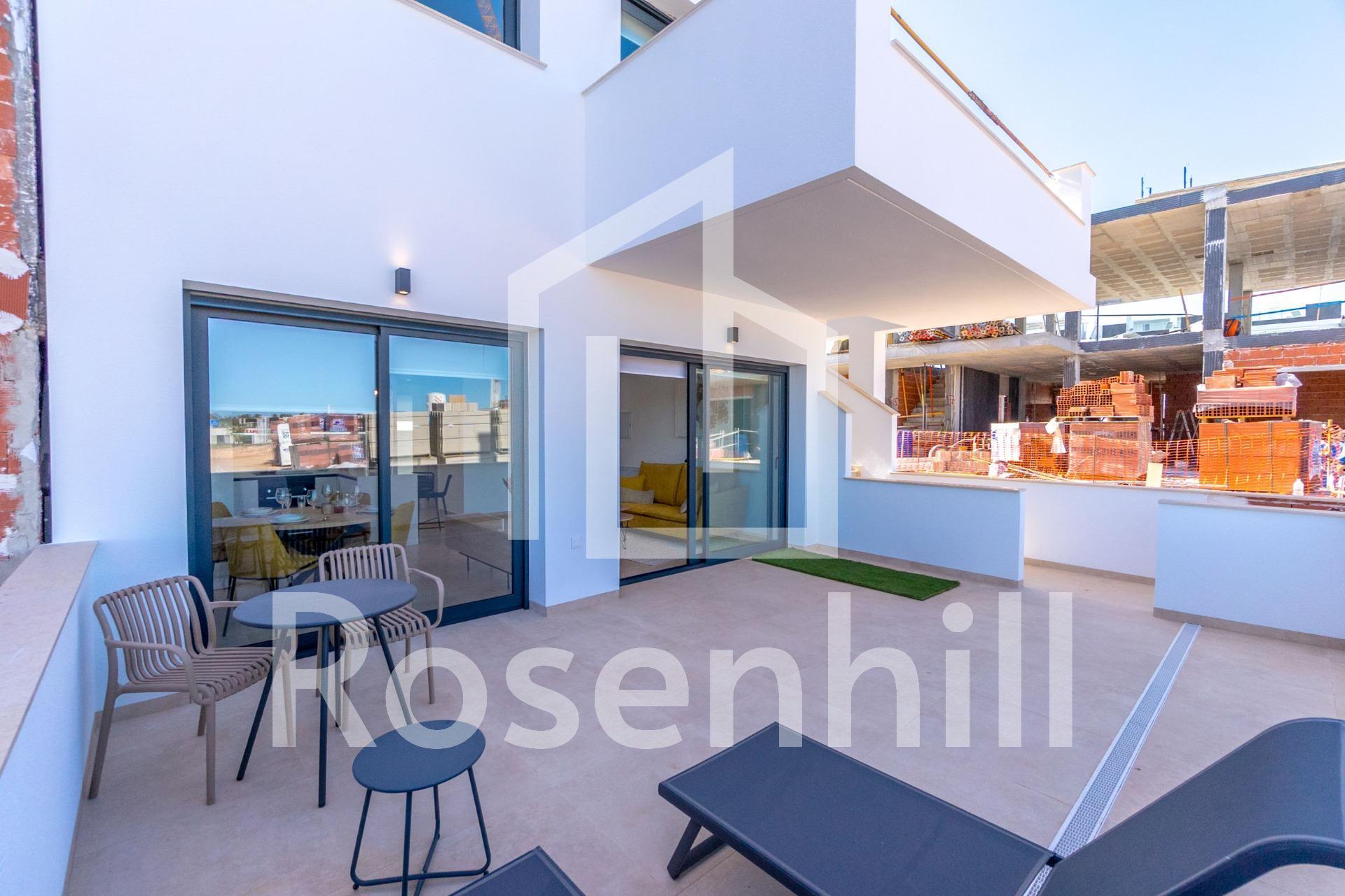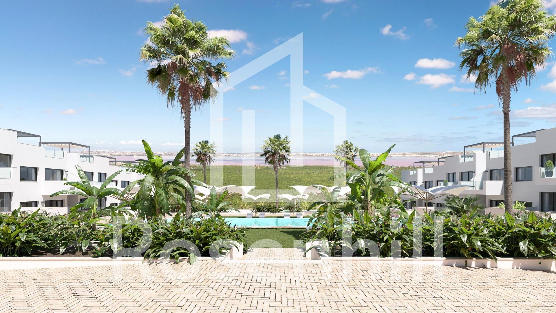 NEW BUILD RESIDENTIAL OF BUNGALOW APARTMENTS IN LOS BALCONES Discover the perfect harmony between luxury and comfort in our ground-floor apartments with a garden or upper-floor apartments featuring a balcony and solarium. The residences consist of 2 bedrooms and 2 bathrooms, with the option of a third bedroom to suit your needs. Each apartment offers spectacular views of the pink lagoon of Torrevieja, creating a unique experience where nature becomes an integral part of your daily life. The common areas are an extension of your own private oasis. Immerse yourself in our infinity pool while enjoying panoramic views of the pink lagoon, play with the little ones in the playground, or stroll through the landscaped green areas. Strategically nestled, places you minutes away from the beaches of Torrevieja, the bustling Zenia Boulevard shopping center, and a variety of amenities such as supermarkets, pharmacies, and restaurants. The proximity to golf courses and the highway exit to Alicante Airport ensures easy access to everything you love. This properties are more than a home; it is a lifestyle that embraces natural beauty, modern comfort, and convenience. Exceptional residential is the perfect place to live the life you’ve always imagined. Welcome to new residential, where each day is a masterpiece of luxury and serenity!