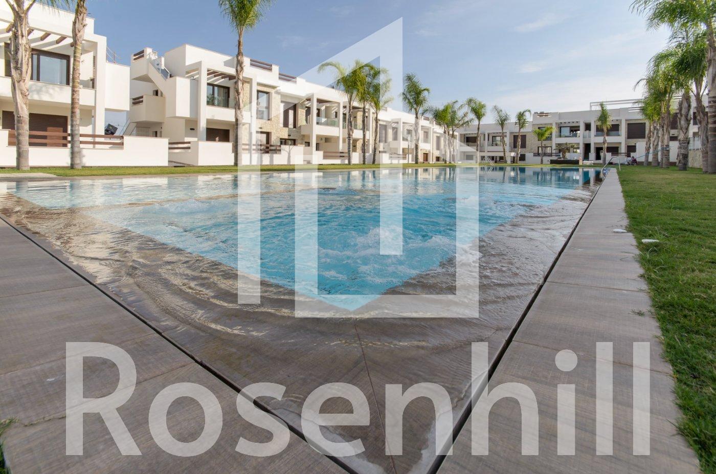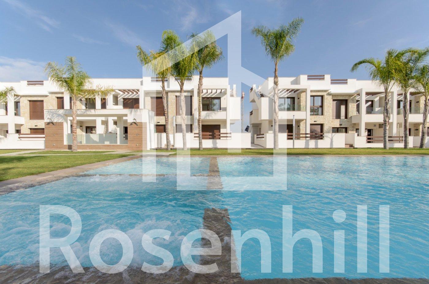 NEW BUILD RESIDENTIAL OF BUNGALOW APARTMENTS IN LOS BALCONES, TORREVIEJA New Build residential complex with magnificent pink salt lake views in Los Balcones. Complex consist of 104 bungalow apartments with 2 and 3 bedrooms, top floor bungalow has private solariums with panoramic views to the salt lake and ground floors bungalows have big terraces overlooking the green area. These bungalows share beautiful green areas and 2 large swimming pools. Optional underground parking and storage spaces are available. This residential offers modern design, selected materials, apartments finished to very highest specification using only top quality materials. The Residential will be built up to a hillside, in this way the view and also the air is clear and unique quality. Los Balcones located just outside Torrevieja with all accessible services, just 5 minutes from Playa de Los Náufragos, supermarkets, the school and the La Zenia Boulevard Shopping Centre, and a minute from Torrevieja University Hospital. Furthermore you will find 4 golf courses within a short drive, including the award winning Las Colinas Golf & Country Club. Complex located 40 minutes from Alicante airport and 1 hour Murcia – Corvera airport.