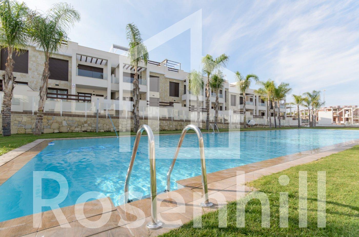 NEW BUILD RESIDENTIAL OF BUNGALOW APARTMENTS IN LOS BALCONES, TORREVIEJA New Build residential complex with magnificent pink salt lake views in Los Balcones. Complex consist of 104 bungalow apartments with 2 and 3 bedrooms, top floor bungalow has private solariums with panoramic views to the salt lake and ground floors bungalows have big terraces overlooking the green area. These bungalows share beautiful green areas and 2 large swimming pools. Optional underground parking and storage spaces are available. This residential offers modern design, selected materials, apartments finished to very highest specification using only top quality materials. The Residential will be built up to a hillside, in this way the view and also the air is clear and unique quality. Los Balcones located just outside Torrevieja with all accessible services, just 5 minutes from Playa de Los Náufragos, supermarkets, the school and the La Zenia Boulevard Shopping Centre, and a minute from Torrevieja University Hospital. Furthermore you will find 4 golf courses within a short drive, including the award winning Las Colinas Golf & Country Club. Complex located 40 minutes from Alicante airport and 1 hour Murcia – Corvera airport.