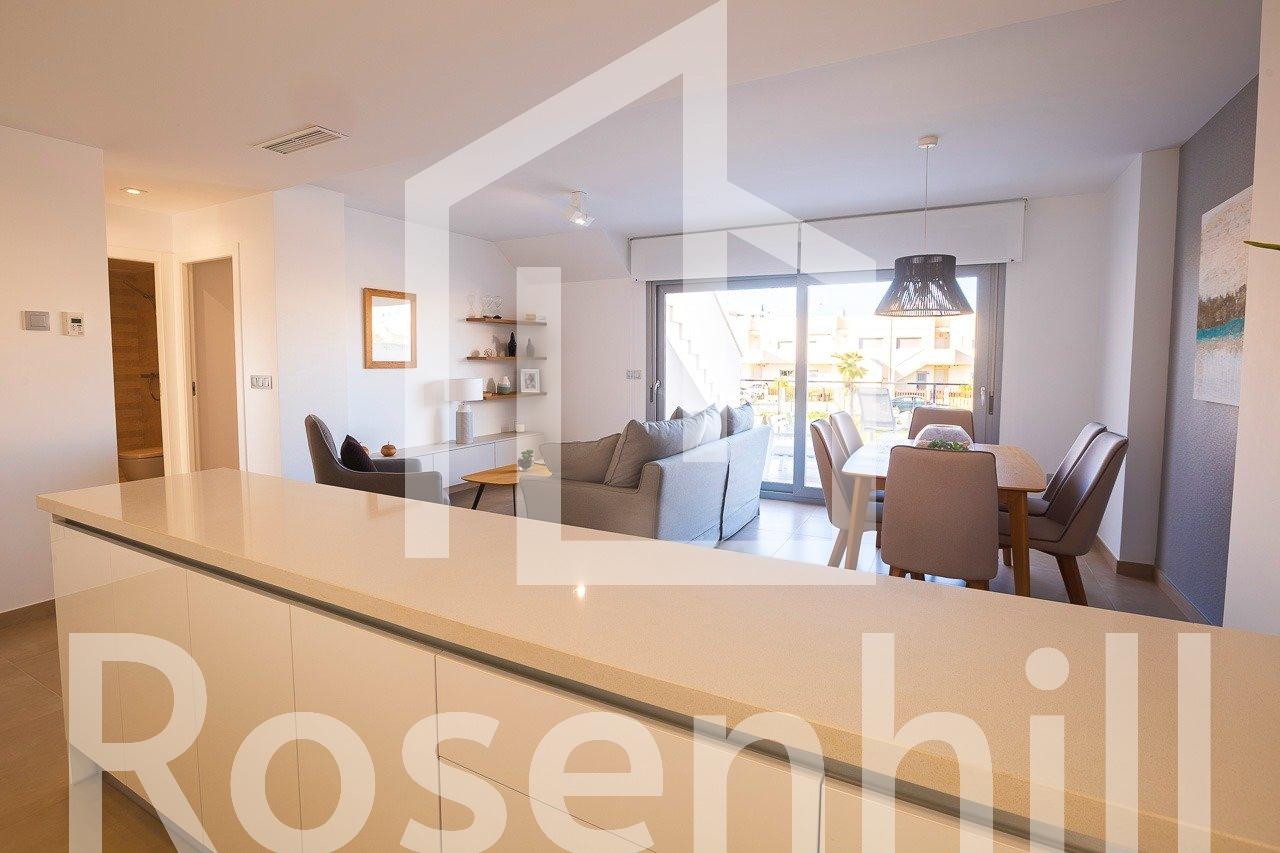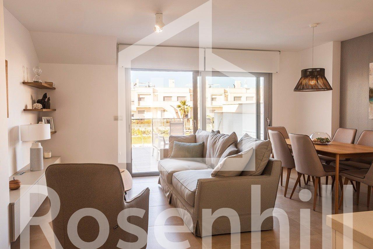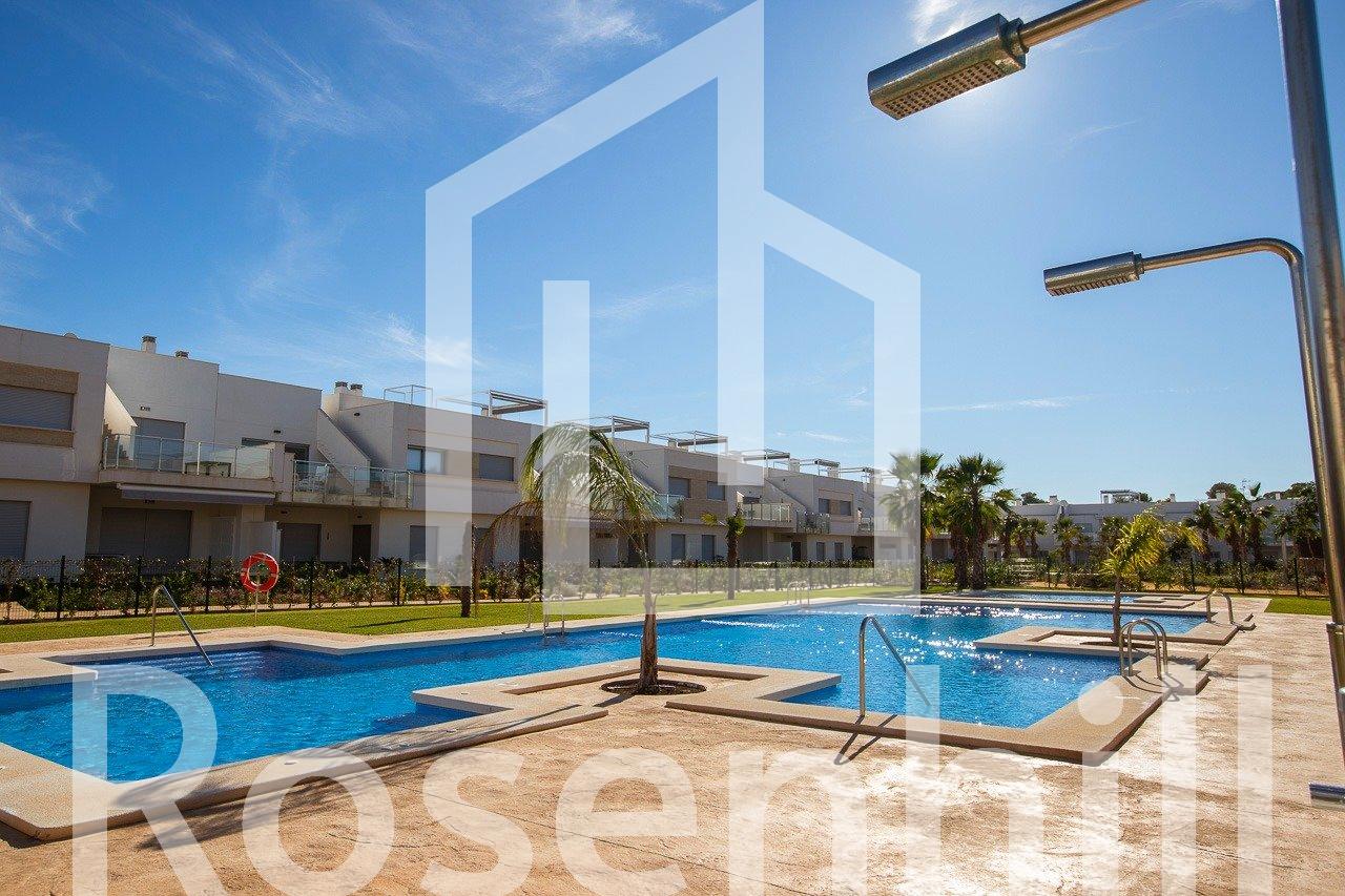 NEW BUILD RESIDENTIAL OF BUNGALOW APARTMENTS IN VISTABELLA New Build residential complex on bungalow apartments in Vistabella near the golf course. Complex with communal facilities and swimming pool consist of 2 and 3 bedrooms bungalows, on the ground floor with private garden and top floor with private solarium, open plan kitchen with the lounge area, fitted wardrobes, terrace. Each apartment has private parking. An options storeroom at an extra cost. At Vistabella Golf there is space for everyone. The course is designed so that each player can enjoy it from start to finish. Its undulating streets, strategic bunkers or lakes are some of the features that make it one of the most attractive designs in the area, where every stroke is a challenge and a pleasure for the senses. The 18 Holes of Vistabella Golf, par 72 and more than 6,000 meters in length have been designed following the guidelines of the modern fields with 4 tees of great amplitude in each hole, wide fairways and raised bunkers. The Vistabella Golf club house & restaurant & local bars & shops are within 5 minutes walk. The busy town of San Miguel de Salinas & Los Montesinos are 5 minutes drive away & the lovely Blue flag beaches at Guardamar are just 15 minutes drive away. Alicante airport is 35 minutes away & the new Corvera Murcia airport is 45 minutes away.