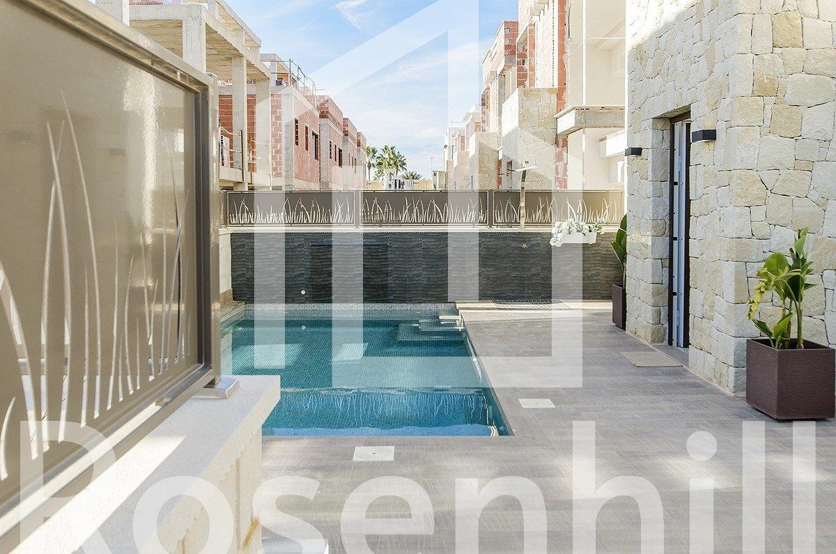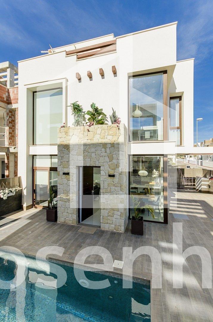 NEW BUILD RESIDENTIAL OF VILLAS IN LOS MONTESINOS New Build villas with 3 bedrooms and 3 bathrooms, open plan kitchen with living room-dining room. All villas have a terrace, a private swimming pool, a private garden, and a driveway. Basements are also available at an extra cost. They are all built with high-quality materials using advanced technology for our clients’ comfort and convenience. The typical town of Los Montesinos is strategically located 10 minutes by car from the beaches and leisure of Torrevieja (with all the services of a big city: theatre, 2 hospitals, international schools, etc.), from several golf courses and with easy access to the A7 motorway to reach Alicante airport in 20 min. In the urbanization there are supermarkets and bars for day-to-day service, being a rural and quiet environment. The climate in this area guarantees 300 days of sunshine a year with an average temperature of 20ºC, which, together with the rich gastronomy and cultural and sports activities available in its surroundings, makes this area an ideal place to establish a second residence for vacation or a quiet place to live permanently.