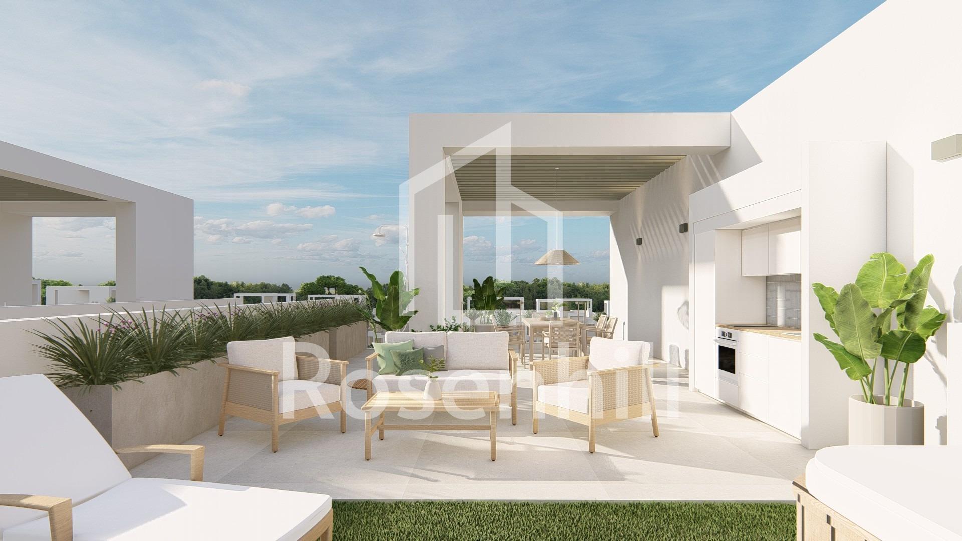 New Build Resort Apartments at La Serena Golf-Los Alcazares Near the Beach Modern Golf Front Living on the Costa Calida Discover this exclusive new build residential resort located at La Serena Golf in Los Alcazares. This contemporary development features 66 stylish apartments with 2 or 3 bedrooms and 2 bathrooms, one of them en suite, designed to offer comfort, elegance and an exceptional Mediterranean lifestyle just 300 meters from the Mar Menor. Los Alcazares is a charming coastal town known for its relaxed atmosphere, sandy beaches and long seaside promenade. With more than 300 days of sunshine per year, the area offers a perfect environment for outdoor living, water sports and golf. The town also provides a wide selection of restaurants, shops, marinas and sports facilities, making it a highly desirable destination for both permanent residence and holiday homes. Apartments with Terraces, Gardens and Private Solariums The residential complex offers several property types to suit different lifestyles. Buyers can choose between ground floor apartments with private gardens, middle floor homes with spacious terraces or penthouses with terraces and large rooftop solariums. The solariums include an outdoor shower and offer the option to add a summer kitchen and private jacuzzi, creating an ideal space for relaxation and entertaining while enjoying open views of the golf course and surrounding landscape. Each home has been designed with bright interiors and open plan living spaces that connect seamlessly with the outdoor areas. Resort Style Amenities and Exceptional Communal Areas One of the most distinctive features of this development is its resort style concept. Residents can enjoy a spectacular lagoon style swimming pool of approximately 190 m2 with beach style access and relaxing areas with Balinese beds. Additional communal facilities include landscaped gardens, a spa area, gym and sauna located in the basement level. The complex also offers a children playground, two petanque courts and communal restrooms near the pool area, creating a welcoming environment for residents and guests. Quality Finishes and Modern Features The apartments are built with modern materials and high quality specifications designed for comfort and style. Fully equipped kitchen with white glass finish appliances Bathrooms with vanity units, shower screens and backlit mirrors Motorized window shutters Basic lighting package Fully installed ducted air conditioning Underground parking space for each property Underground bicycle parking and optional storage rooms Prime Location Close to Beach and Golf Mar Menor beach 0.3 km La Serena Golf next to the development Los Alcazares town center 2 km Cartagena 22 km Murcia 40 km Region de Murcia International Airport 30 km Alicante Elche Airport 90 km The calm and shallow waters of the Mar Menor are ideal for swimming, sailing and paddle surfing throughout the year. Secure Your Home at La Serena Golf Resort These modern apartments combine beachside living, golf views from most units and resort style amenities in one of the most attractive areas of the Costa Calida. Contact us today to receive more information or arrange a visit and secure your new home in La Serena Golf-Los Alcazares.