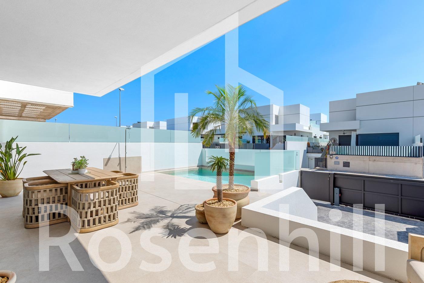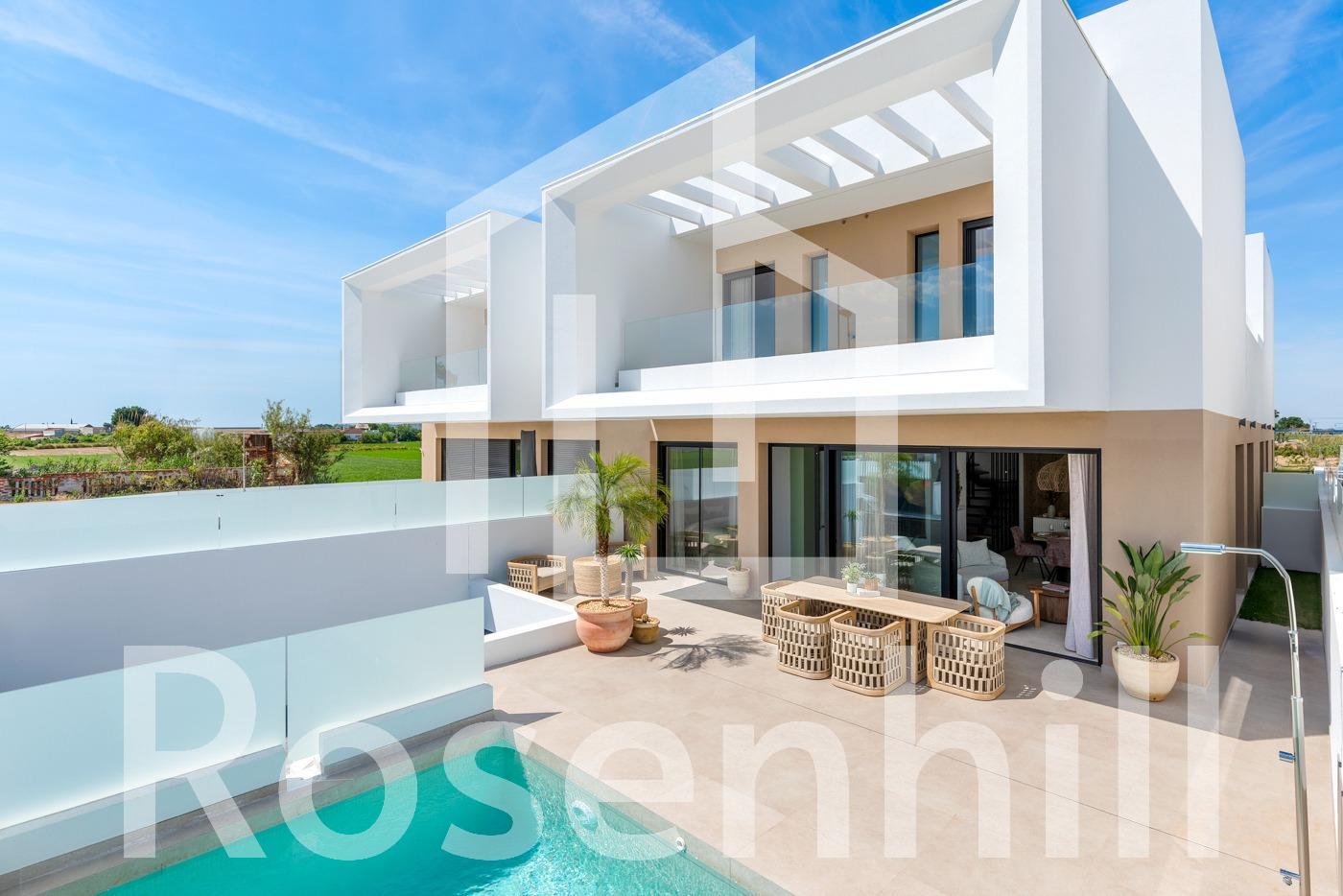 New Build Semi-Detached and Terraced Villas in Dolores, Alicante Discover this exclusive new development of 20 modern semi-detached and terraced villas in Dolores, a charming town located in the heart of the Vega Baja region, in the province of Alicante. Surrounded by orchards and natural beauty, Dolores offers a peaceful lifestyle just a short drive from the Mediterranean coast. Contemporary Villas with Private Pools Each home in this new development is thoughtfully designed over two floors and features: 3 spacious bedrooms 2 full bathrooms and 1 guest toilet Open-plan kitchen with island, furnished and equipped with appliances Bright living-dining area with direct access to the terrace Private garden with swimming pool, filtration system, and LED lighting On-site parking within the plot These villas combine functionality and style, offering everything needed for modern Mediterranean living. High-Efficiency Features and Modern Comforts Built to the highest standards, the homes include: Ducted air conditioning installation on both floors 250-liter aerothermal water heating system Electric underfloor heating in bathrooms Motorized blinds LED lighting throughout the interior and exterior 3kW photovoltaic solar panels for improved energy efficiency These features ensure a sustainable and comfortable home environment year-round. Ideal Location Near the Coast and Amenities Dolores is a well-connected and growing town just 12 km from the stunning beaches of La Marina and Guardamar del Segura. The area offers essential services including shops, restaurants, schools, and health centers. It also maintains a tranquil, residential atmosphere ideal for families and retirees. Distances to main points of interest: La Marina Beach – 12 km Guardamar del Segura – 14 km Alicante Airport – 30 km Murcia-Corvera Airport – 85 km La Marquesa Golf (Ciudad Quesada) – 13 km Torrevieja – 25 km Your New Home Awaits in Dolores Whether you’re looking for a permanent residence, a holiday retreat, or an investment in the Costa Blanca, these new villas in Dolores are a perfect choice. Contact us today for more information or to schedule a viewing.