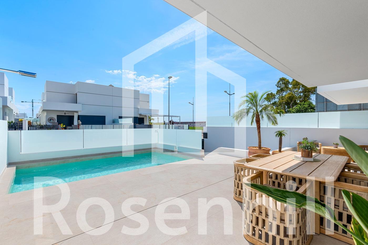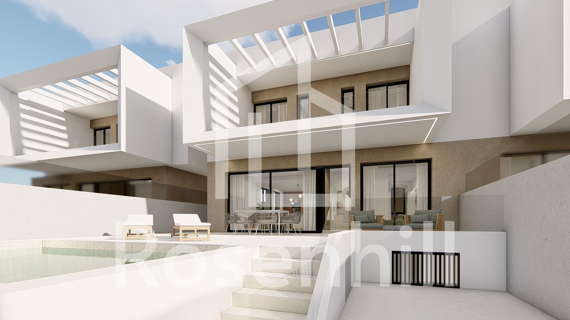New Build Semi-Detached and Terraced Villas in Dolores, Alicante Discover this exclusive new development of 20 modern semi-detached and terraced villas in Dolores, a charming town located in the heart of the Vega Baja region, in the province of Alicante. Surrounded by orchards and natural beauty, Dolores offers a peaceful lifestyle just a short drive from the Mediterranean coast. Contemporary Villas with Private Pools Each home in this new development is thoughtfully designed over two floors and features: 3 spacious bedrooms 2 full bathrooms and 1 guest toilet Open-plan kitchen with island, furnished and equipped with appliances Bright living-dining area with direct access to the terrace Private garden with swimming pool, filtration system, and LED lighting On-site parking within the plot These villas combine functionality and style, offering everything needed for modern Mediterranean living. High-Efficiency Features and Modern Comforts Built to the highest standards, the homes include: Ducted air conditioning installation on both floors 250-liter aerothermal water heating system Electric underfloor heating in bathrooms Motorized blinds LED lighting throughout the interior and exterior 3kW photovoltaic solar panels for improved energy efficiency These features ensure a sustainable and comfortable home environment year-round. Ideal Location Near the Coast and Amenities Dolores is a well-connected and growing town just 12 km from the stunning beaches of La Marina and Guardamar del Segura. The area offers essential services including shops, restaurants, schools, and health centers. It also maintains a tranquil, residential atmosphere ideal for families and retirees. Distances to main points of interest: La Marina Beach – 12 km Guardamar del Segura – 14 km Alicante Airport – 30 km Murcia-Corvera Airport – 85 km La Marquesa Golf (Ciudad Quesada) – 13 km Torrevieja – 25 km Your New Home Awaits in Dolores Whether you’re looking for a permanent residence, a holiday retreat, or an investment in the Costa Blanca, these new villas in Dolores are a perfect choice. Contact us today for more information or to schedule a viewing.
