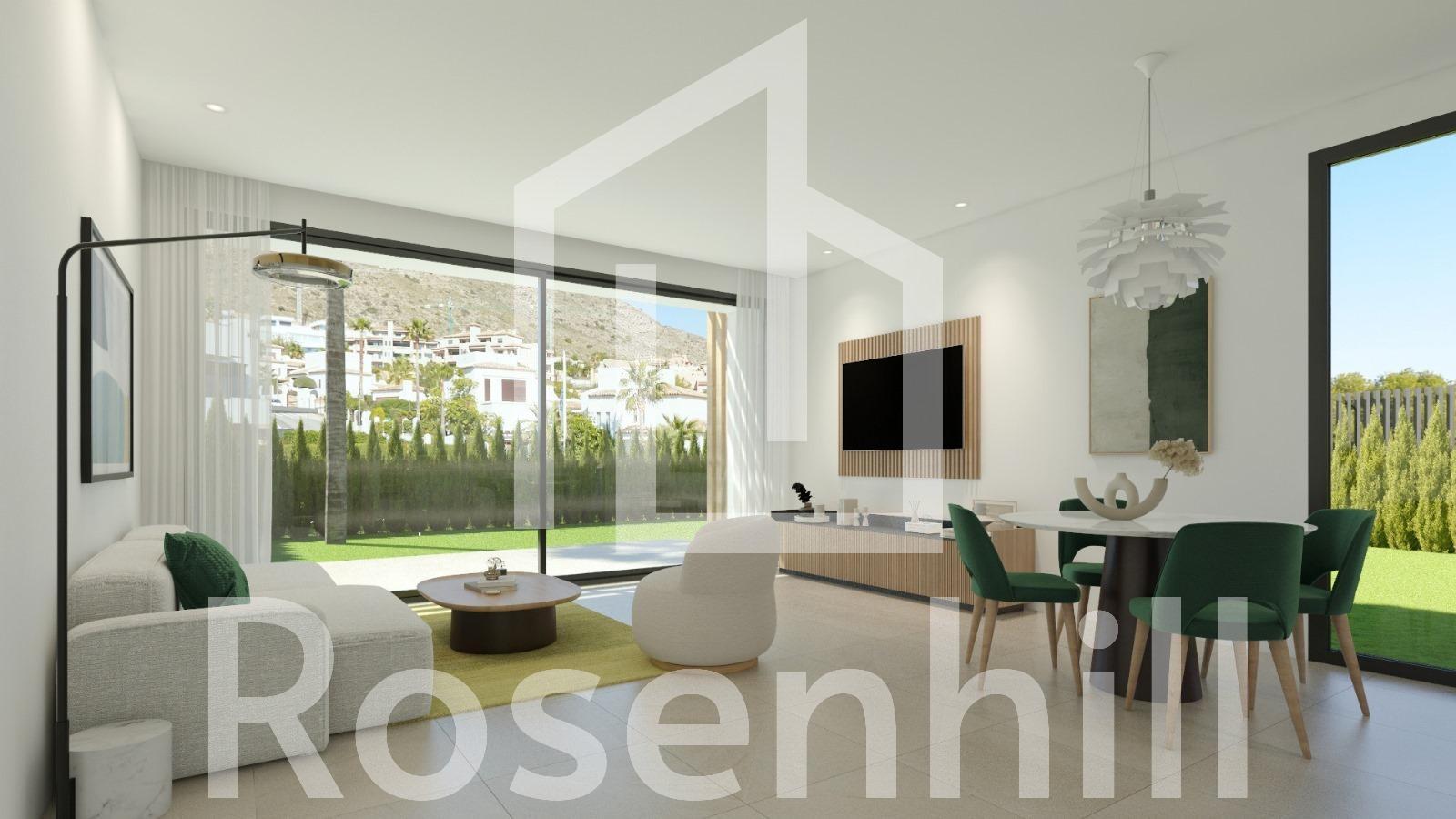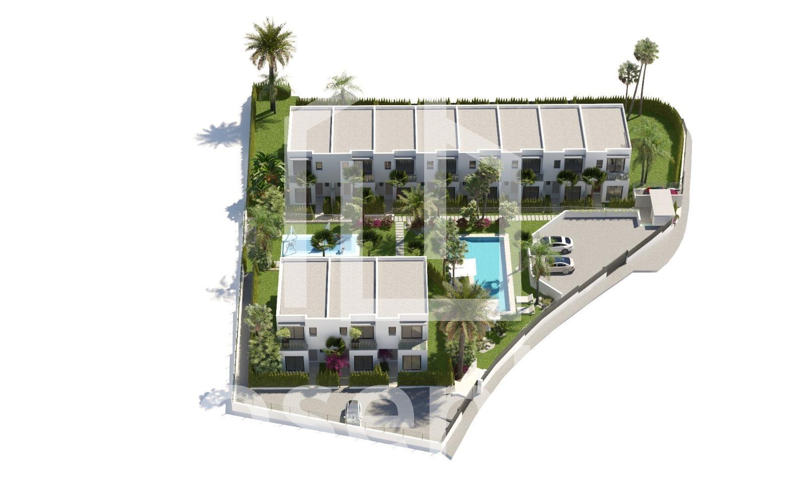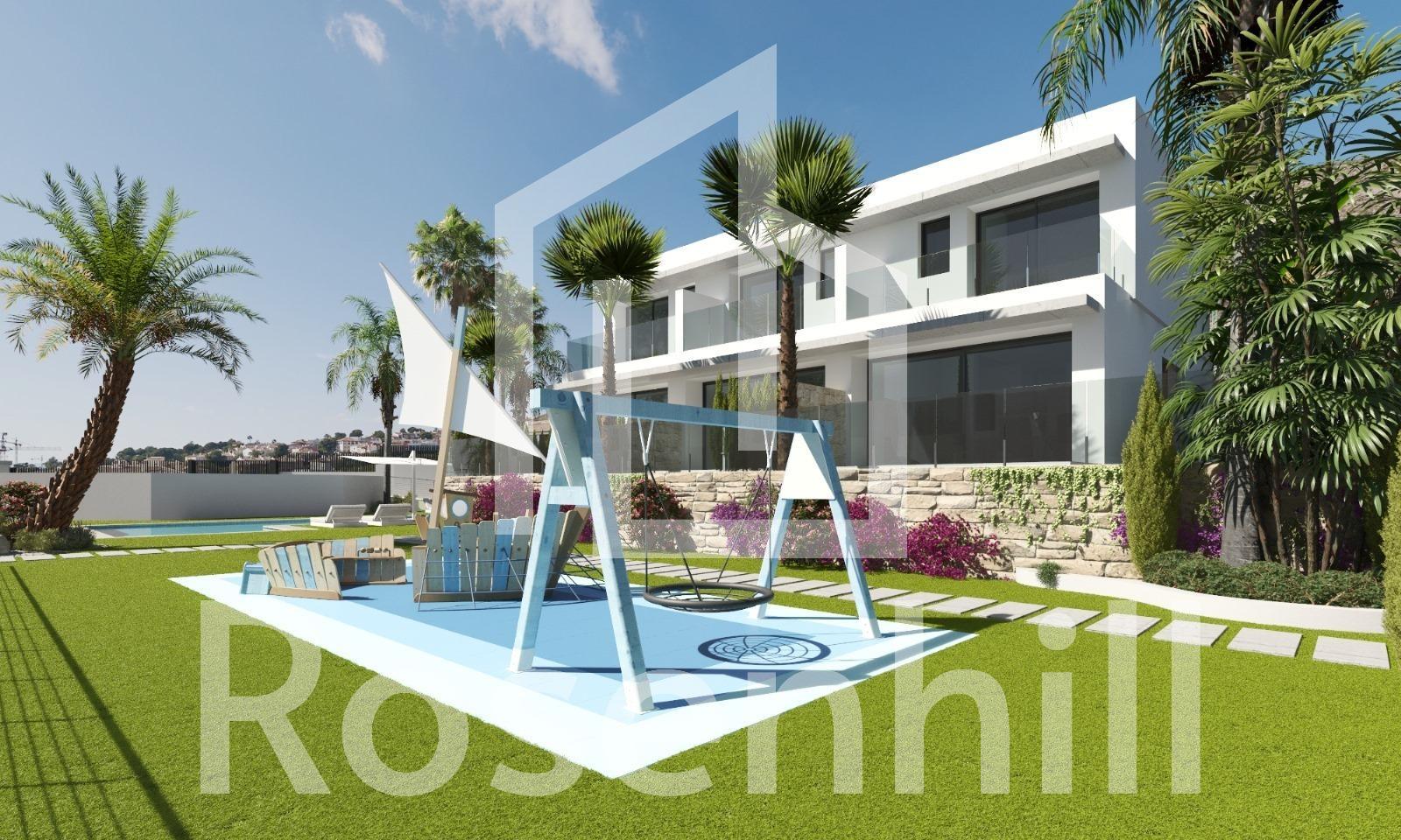 NEW BUILD SEMI-DETACHED VILLAS IN FINESTRAT New Build residential of townhouses and semi-detached villas in Sierra Cortina, Finestrat. All properties will have 3 spacious bedrooms and 3 elegant bathrooms to provide comfort and privacy to its inhabitants. The spacious living-dining room, with its integrated modern kitchen, will be the heart of the house, where family and friends will be able to gather and enjoy unforgettable moments. In addition, the house will be equipped with pre-installation for ducted air conditioning. Cutting-edge technology will be a prominent feature of this house, as it will be fully automated thanks to an advanced home automation system. From lighting control to security management, everything will be at your fingertips. Private garden will be an oasis of tranquillity where you can relax and enjoy nature. In addition, the property will have an impressive communal swimming pool, ideal for cooling off and socialising with neighbours, and a children’s playground. New Build properties will offer a comfortable and functional space for the whole family. It will also have a private parking space for added convenience. In short, this brand new properties in Sierra Cortina will be a perfect residence for those who are looking for a comfortable and luxurious lifestyle. This magnificent New Built properties will be located in the exclusive Sierra Cortina urbanisation, just 5 minutes from Benidorm.