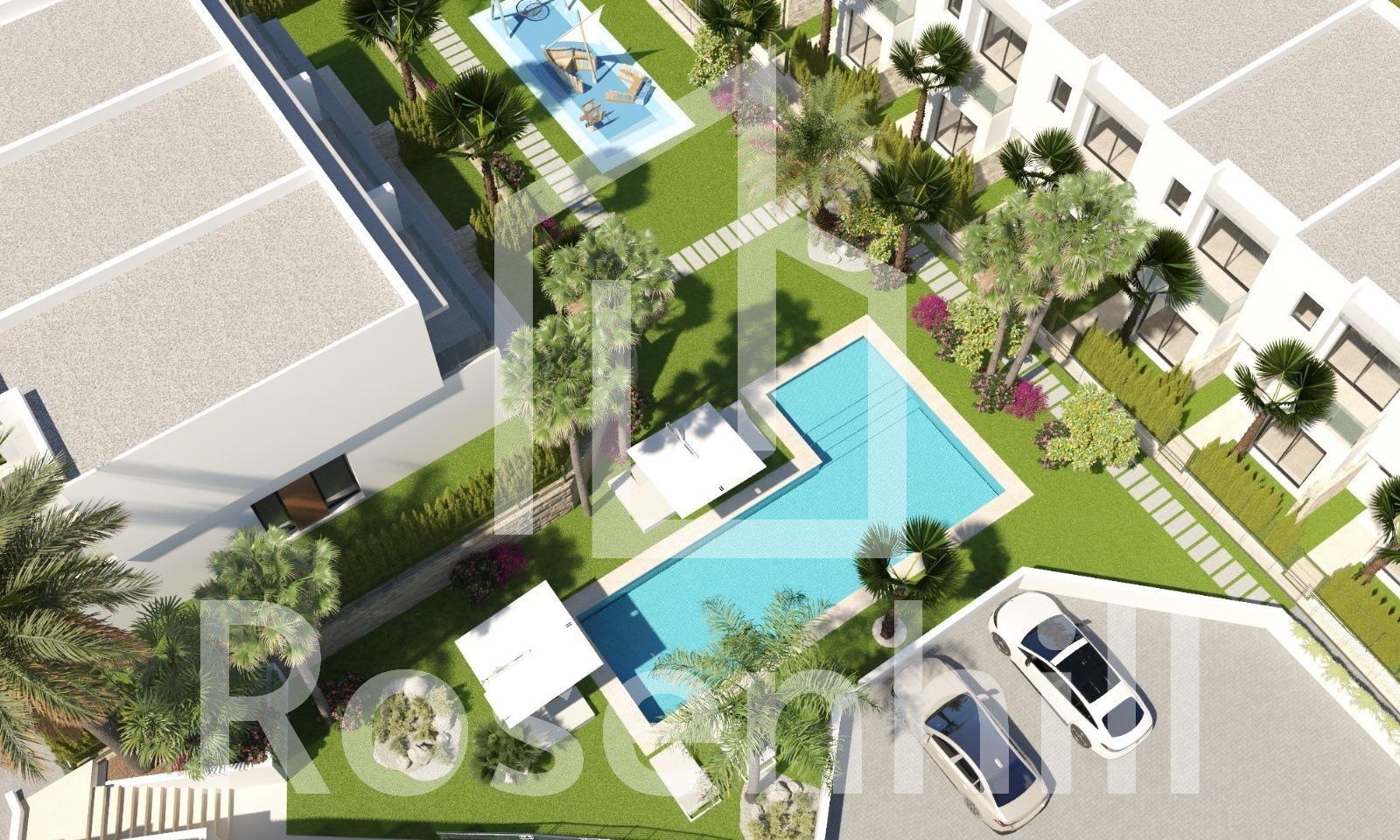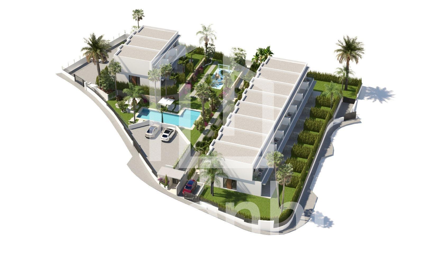 NEW BUILD SEMI-DETACHED VILLAS IN FINESTRAT New Build residential of townhouses and semi-detached villas in Sierra Cortina, Finestrat. All properties will have 3 spacious bedrooms and 3 elegant bathrooms to provide comfort and privacy to its inhabitants. The spacious living-dining room, with its integrated modern kitchen, will be the heart of the house, where family and friends will be able to gather and enjoy unforgettable moments. In addition, the house will be equipped with pre-installation for ducted air conditioning. Cutting-edge technology will be a prominent feature of this house, as it will be fully automated thanks to an advanced home automation system. From lighting control to security management, everything will be at your fingertips. Private garden will be an oasis of tranquillity where you can relax and enjoy nature. In addition, the property will have an impressive communal swimming pool, ideal for cooling off and socialising with neighbours, and a children’s playground. New Build properties will offer a comfortable and functional space for the whole family. It will also have a private parking space for added convenience. In short, this brand new properties in Sierra Cortina will be a perfect residence for those who are looking for a comfortable and luxurious lifestyle. This magnificent New Built properties will be located in the exclusive Sierra Cortina urbanisation, just 5 minutes from Benidorm.