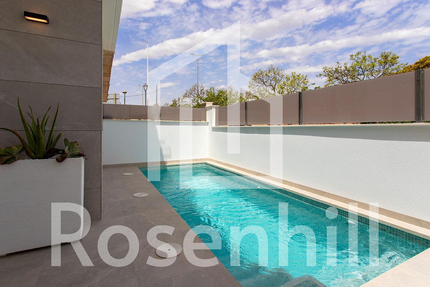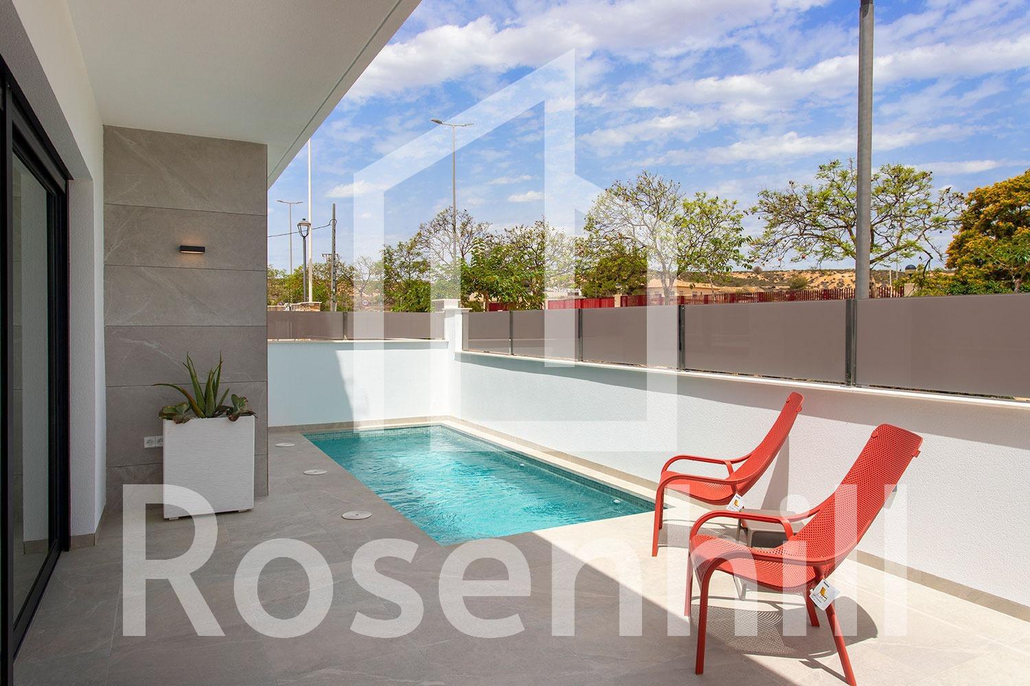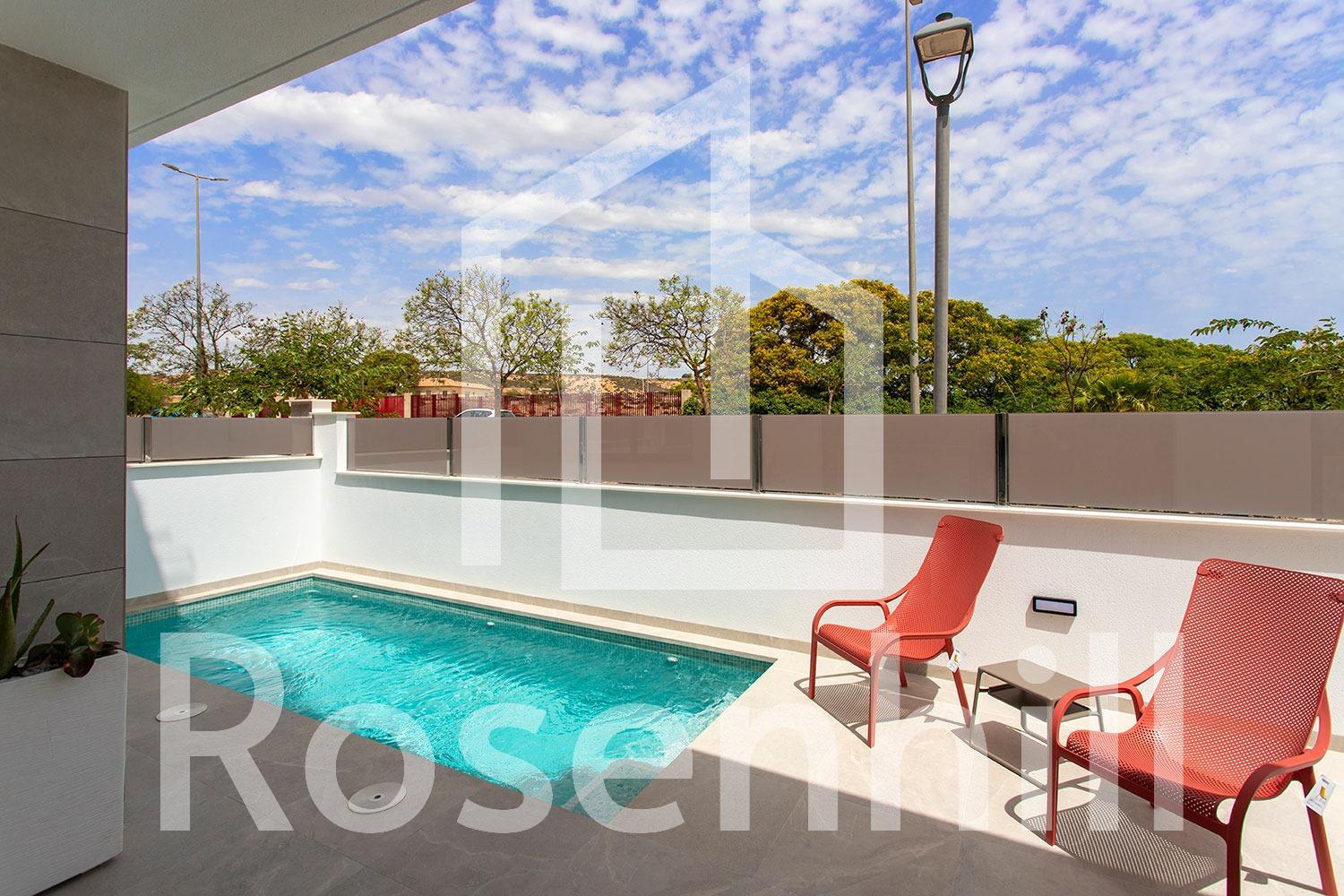 New Build Semi Detached Villas in Sucina: last unit Fully Equipped and Ready to Move In Exceptional Opportunity in Sucina This is your chance to secure the last available unit in this modern new build development, previously used as the show home. It is key ready and delivered fully equipped with furniture, appliances, interior and exterior lighting, air conditioning, electric car charger and an outdoor summer kitchen with fridge. A unique turnkey opportunity in one of the most charming towns of the Costa Calida. Contemporary Design Focused on Light and Comfort These semi detached villas stand out for their elegant and pure contemporary design, with layouts created to maximize natural Mediterranean light. The main living areas feature an open plan concept where the kitchen and living room merge seamlessly, connected by a stylish central island. This space flows directly to the porch and the pool terrace, creating a harmonious indoor outdoor lifestyle ideal for sunny days. Single Level Living With Private Pool and Solarium The villa includes 3 bedrooms and 2 bathrooms on one floor, plus a convenient exterior guest toilet for the pool area. The master bedroom is exceptionally bright and offers an en suite bathroom, walk in wardrobe and direct access to the main terrace. The property also boasts an impressive 82 m2 solarium, perfect for sunbathing or creating an outdoor lounge. Built on a 211 m2 plot, the villa includes off road parking within the plot. Prime Location Close to All Services Located just a short walk from the center of Sucina, the villa provides immediate access to daily amenities such as shops, restaurants and supermarkets. Sucina is a traditional Spanish town that has grown in popularity in recent years due to its relaxed lifestyle, authentic atmosphere and proximity to the coast. The beautiful beaches of the Costa Calida and the Mar Menor are only a few minutes away. Distances to Key Points of Interest Murcia Airport 25 km Alicante Airport 75 km Beaches of the Mar Menor 15 km Nearest Golf Course 4 km Port of San Pedro del Pinatar 20 km Live a High Quality Mediterranean Lifestyle Built with excellent materials and designed for comfort, these villas offer an exceptional opportunity to enjoy open spaces, natural light and pure air all year round. Contact us today to arrange a visit and secure this exclusive key ready home in Sucina.