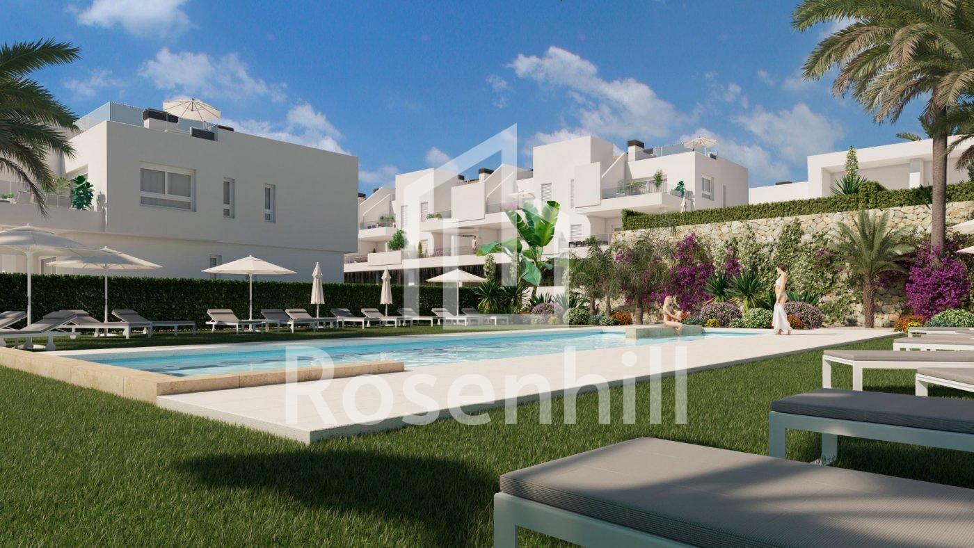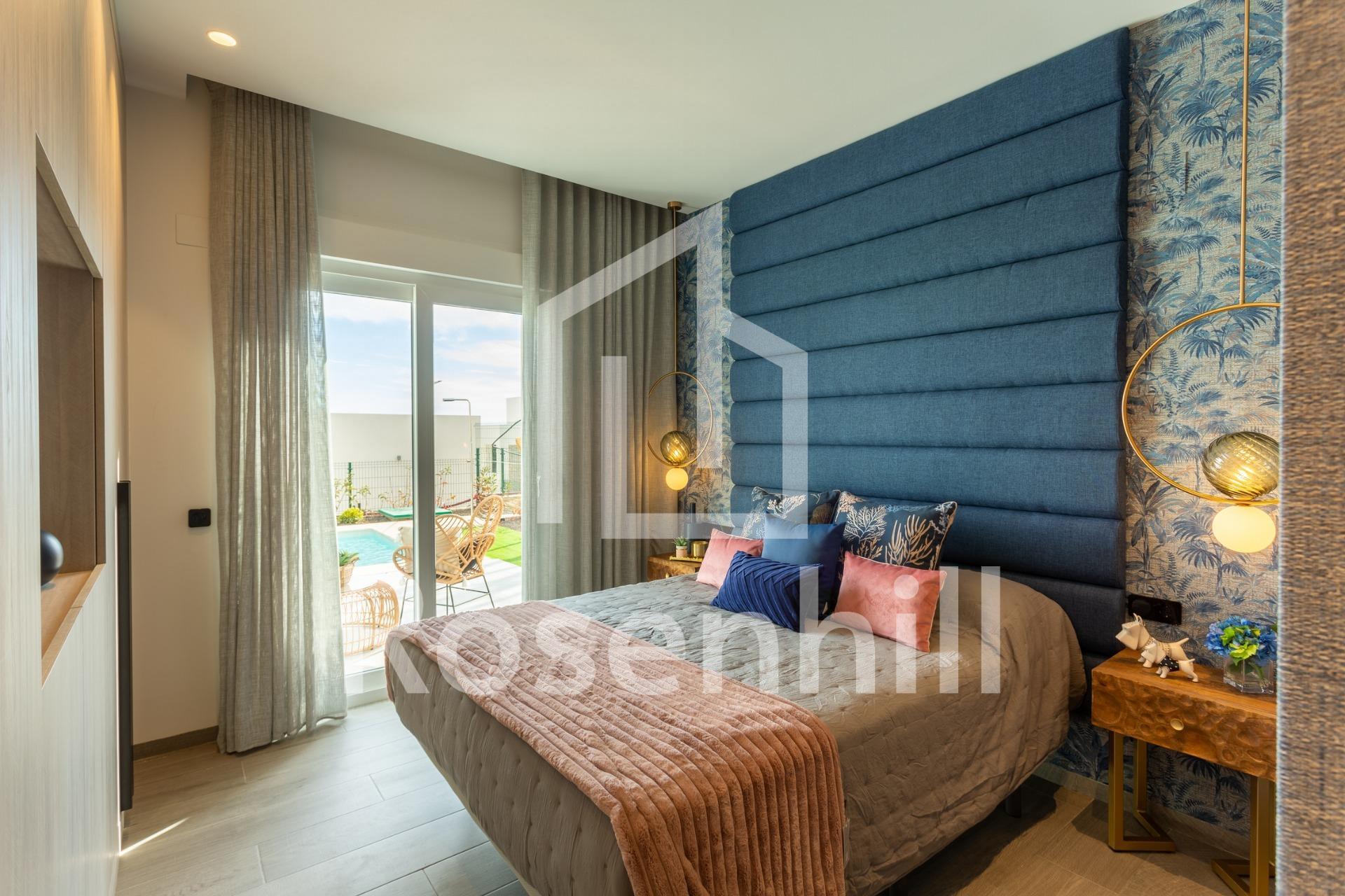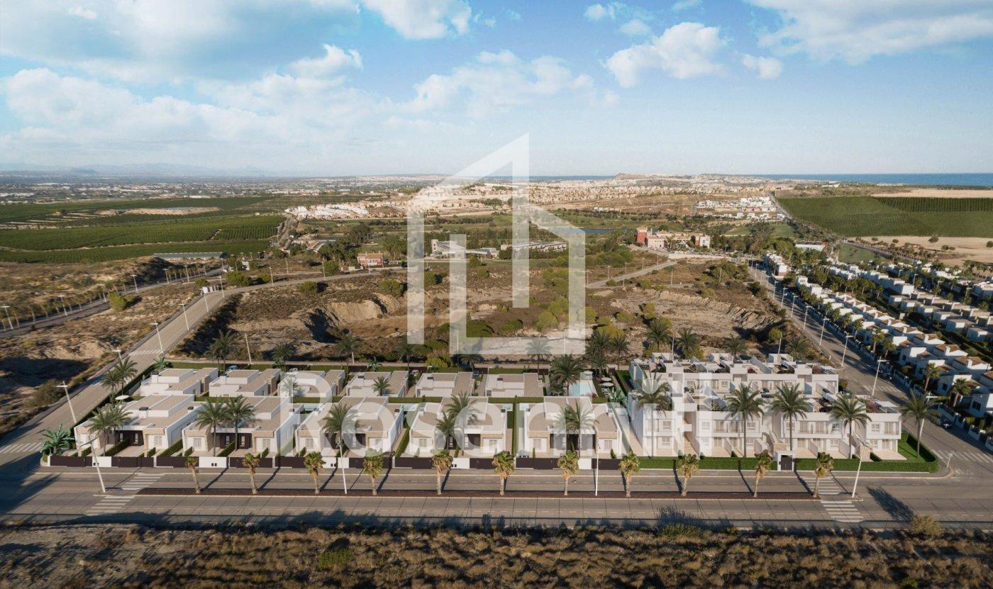 New Build Semi Detached Villas with Private Pool at La Finca Golf Resort Algorfa Modern Villas in a Prestigious Golf Resort on the Costa Blanca Discover these elegant new build semi detached villas located in the exclusive La Finca Golf Resort in Algorfa, one of the most desirable residential areas on the Costa Blanca South. Surrounded by nature, golf courses and peaceful landscapes, this development offers the perfect balance between tranquility and proximity to essential services, beaches and leisure facilities. La Finca Golf Resort is well known for its championship golf course, luxury hotel, restaurants and wellness facilities. The nearby town of Algorfa maintains its traditional Spanish charm while offering convenient access to larger coastal destinations such as Torrevieja and the beautiful beaches of the southern Costa Blanca. Stylish Single Level Villas with Spacious Layouts Each villa offers approximately 105 m2 of built area on generous plots from 450 m2. The homes are designed on a single level to maximize comfort and accessibility while providing bright and open living spaces. The property features three spacious bedrooms with built in wardrobes and two modern bathrooms, including a master bedroom with en suite bathroom. Bathrooms are equipped with mirrors and walk in showers with glass screens for a clean and contemporary design. The open plan kitchen integrates seamlessly with the living and dining area and includes a practical breakfast bar, creating a bright and functional space ideal for both everyday living and entertaining. A separate laundry room adds extra convenience to the home. An external staircase leads to the large private rooftop solarium, providing additional outdoor space to relax and enjoy the Mediterranean climate. Private Pool and Outdoor Mediterranean Lifestyle Large sliding glass doors connect the interior living area with the outdoor terrace and landscaped garden. Each villa includes a private swimming pool, creating the perfect environment for relaxing afternoons, outdoor dining and enjoying the warm Costa Blanca weather. The homes also include fully installed ducted air conditioning to ensure year round comfort. Prime Location Near Beaches Golf and Amenities These villas are ideally located within walking distance of the golf course and close to many key destinations in the region. La Finca Golf Resort golf course walking distance Guardamar del Segura beaches 20 km Zenia Boulevard shopping center 15 km Torrevieja 20 km Alicante Elche Airport 40 km Region de Murcia International Airport 55 km The area is also surrounded by additional golf courses, nature parks and coastal promenades, offering an excellent lifestyle for golf enthusiasts and beach lovers alike. Secure Your Villa at La Finca Golf Resort These new build semi detached villas combine modern design, private outdoor living and a prime golf resort location. Contact us today to receive more information or schedule a visit and discover your new home at La Finca Golf Resort in Algorfa.
