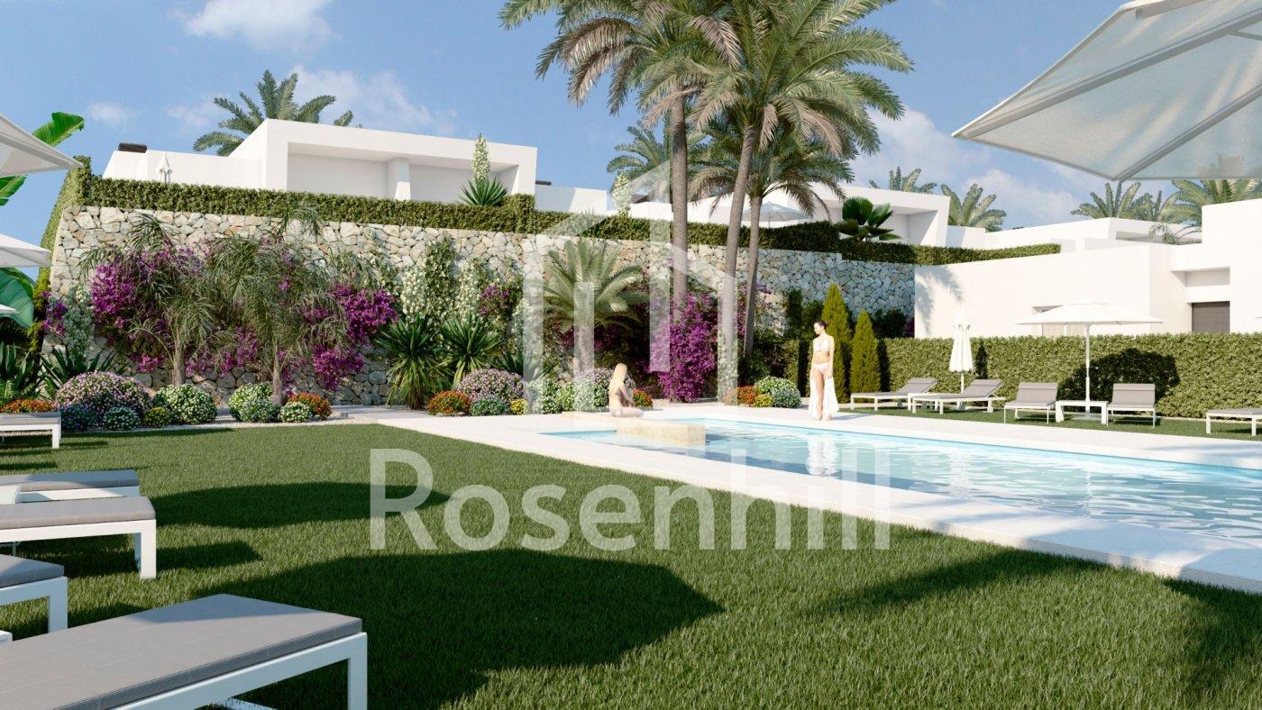 New Build Semi Detached Villas with Private Pool at La Finca Golf Resort Algorfa Modern Villas in a Prestigious Golf Resort on the Costa Blanca Discover these elegant new build semi detached villas located in the exclusive La Finca Golf Resort in Algorfa, one of the most desirable residential areas on the Costa Blanca South. Surrounded by nature, golf courses and peaceful landscapes, this development offers the perfect balance between tranquility and proximity to essential services, beaches and leisure facilities. La Finca Golf Resort is well known for its championship golf course, luxury hotel, restaurants and wellness facilities. The nearby town of Algorfa maintains its traditional Spanish charm while offering convenient access to larger coastal destinations such as Torrevieja and the beautiful beaches of the southern Costa Blanca. Stylish Single Level Villas with Spacious Layouts Each villa offers approximately 105 m2 of built area on generous plots from 450 m2. The homes are designed on a single level to maximize comfort and accessibility while providing bright and open living spaces. The property features three spacious bedrooms with built in wardrobes and two modern bathrooms, including a master bedroom with en suite bathroom. Bathrooms are equipped with mirrors and walk in showers with glass screens for a clean and contemporary design. The open plan kitchen integrates seamlessly with the living and dining area and includes a practical breakfast bar, creating a bright and functional space ideal for both everyday living and entertaining. A separate laundry room adds extra convenience to the home. An external staircase leads to the large private rooftop solarium, providing additional outdoor space to relax and enjoy the Mediterranean climate. Private Pool and Outdoor Mediterranean Lifestyle Large sliding glass doors connect the interior living area with the outdoor terrace and landscaped garden. Each villa includes a private swimming pool, creating the perfect environment for relaxing afternoons, outdoor dining and enjoying the warm Costa Blanca weather. The homes also include fully installed ducted air conditioning to ensure year round comfort. Prime Location Near Beaches Golf and Amenities These villas are ideally located within walking distance of the golf course and close to many key destinations in the region. La Finca Golf Resort golf course walking distance Guardamar del Segura beaches 20 km Zenia Boulevard shopping center 15 km Torrevieja 20 km Alicante Elche Airport 40 km Region de Murcia International Airport 55 km The area is also surrounded by additional golf courses, nature parks and coastal promenades, offering an excellent lifestyle for golf enthusiasts and beach lovers alike. Secure Your Villa at La Finca Golf Resort These new build semi detached villas combine modern design, private outdoor living and a prime golf resort location. Contact us today to receive more information or schedule a visit and discover your new home at La Finca Golf Resort in Algorfa.