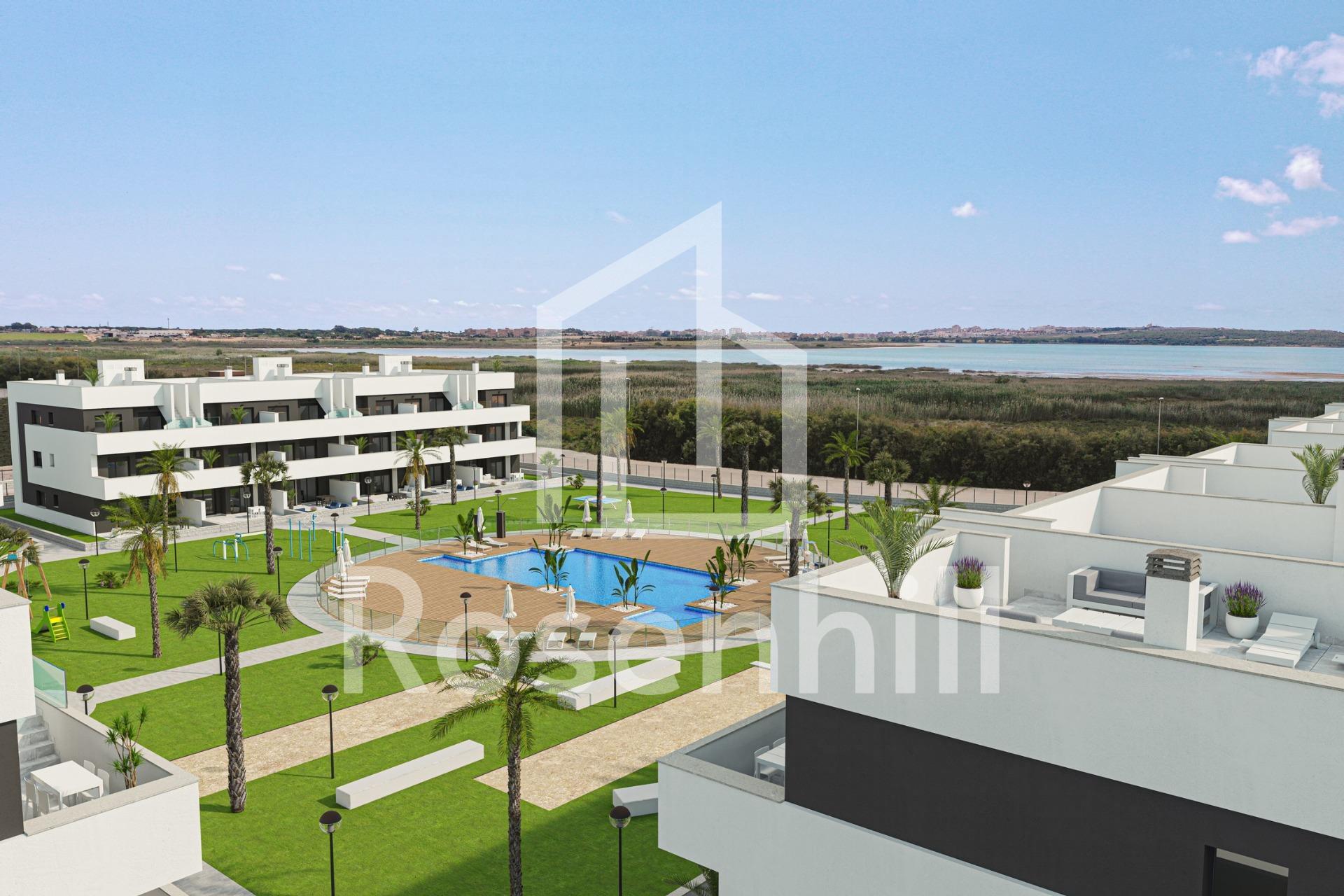 New Build Tourist Licensed Apartments with Lagoon Views in El Raso Guardamar del Segura Exclusive Gated Residential Complex in El Raso This new build gated residential complex is located in El Raso, a well established and highly demanded residential area of Guardamar del Segura. Surrounded by nature and close to all essential services, El Raso is known for its peaceful environment, proximity to the Natural Park of La Mata Lagoon and excellent connections to the coast. This location offers the perfect balance between tranquility, leisure and investment potential on the Costa Blanca South. Modern Tourist Licensed Apartments with Flexible Use The development will consist of 108 new build tourist licensed apartments and penthouses distributed across ground floor homes with private garden, first floor apartments with spacious terraces, and second floor units with terrace and private solarium. All properties are designed to maximize natural light, outdoor living and views towards green areas and the Laguna de La Mata. One of the key highlights of this project is that all properties come with a tourist rental license. Owners can enjoy personal use for up to 4 months per year and rent the property for the rest of the year, generating rental income managed by a professional rental company for complete peace of mind. Fully Furnished and Ready to Move In Homes All apartments will be delivered fully furnished and ready to move in. The price includes furniture, lighting, electrical appliances and fully finished bathrooms, making this an ideal turnkey investment. Buyers can choose between 2 or 3 bedroom layouts, all with 2 bathrooms. The 3 bedroom apartments are corner units, offering additional privacy and enhanced views. Properties are available in south, east and west orientations. Resort Style Communal Areas The residential complex features extensive communal facilities designed for relaxation and leisure. Residents will enjoy a large swimming pool, landscaped gardens, reception and meeting area, outdoor gym, petanque area, mini golf and a wellness spa. Each property also includes a private parking space and storage room in the basement, accessible by lift or stairs. Prime Location Close to Beach Golf and Services Playa del Moncayo is just 5 km away, reachable in 10 minutes by car or 15 minutes by bike. Guardamar town center is 4 km away, while Ciudad Quesada dining and leisure areas are only 5 km away. Habaneras Shopping Centre in Torrevieja is located 8 km from the complex. Golf lovers will appreciate the proximity to La Finca Golf in Algorfa at 12 km, La Marquesa Golf at 6 km and Vistabella Golf at 18 km. Alicante International Airport is 30 km away, and Murcia Corvera Airport is approximately 75 km away. A Smart Investment and Mediterranean Lifestyle These new build tourist licensed apartments in El Raso Guardamar del Segura offer an exceptional combination of lifestyle, location and rental potential. Contact us today to receive more information or secure your new property on the Costa Blanca.