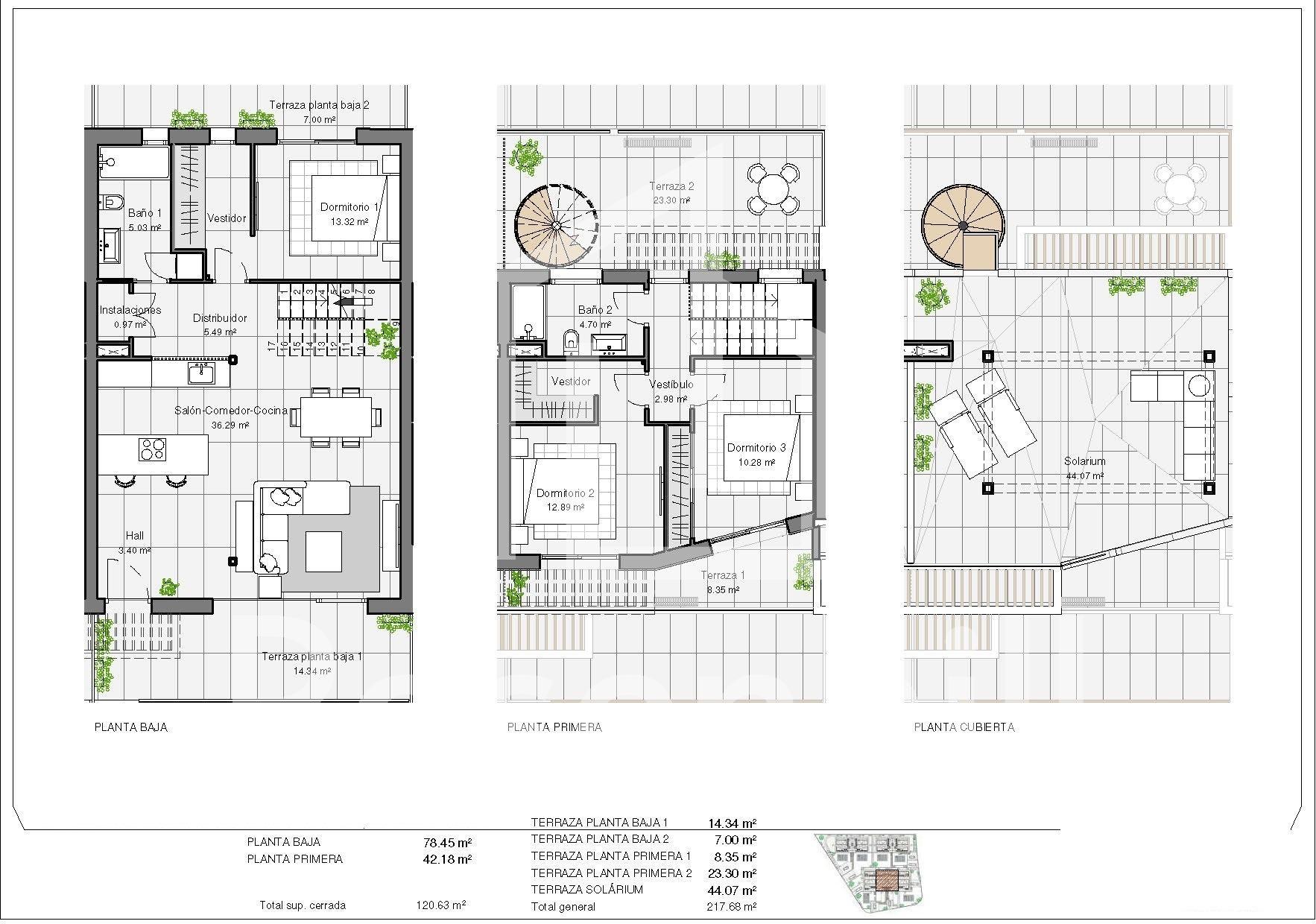 NEW BUILD TOWNHOUSES IN POLOP New Build modern townhouses and semi-detached villas with several terraces and solarium, totally fenced, with parking area for vehicles and private swimming pool in Polop. Modern properties with 3 spacious bedrooms with built-in wardrobes (the main one on the ground floor, with bathroom and dressing room en suite), 2 spacious bathrooms, large living-dining room with open kitchen, spacious terraces. Kitchen equipped with base units and silestone worktops, with ceramic hob, oven, extractor hood, fridge, washing machine, dishwasher, and aerothermal heater. First qualities: interior carpentry in wood and white lacquered laminates, exterior carpentry in anthracite grey pvc with double glazing and thermal bridge break, and automatic blinds with aluminium slats, ceramic floors of 1st quality non-slip, smooth walls, security door with 5 anchor points, large built-in wardrobes. The city of Polop offers an amazing range of options for lovers of the great outdoors surrounded by nature and unparalleled peace. The municipality enjoys a Mediterranean climate with cooler temperatures and cleaner air, located less than 10 kilometres from Benidorm, Altea and their beaches. It stretches from the rivers Guadalest and Algar to the town of Villajoyosa, including the beaches of Albir and Benidorm; inland it borders Callosa and Guadalest.