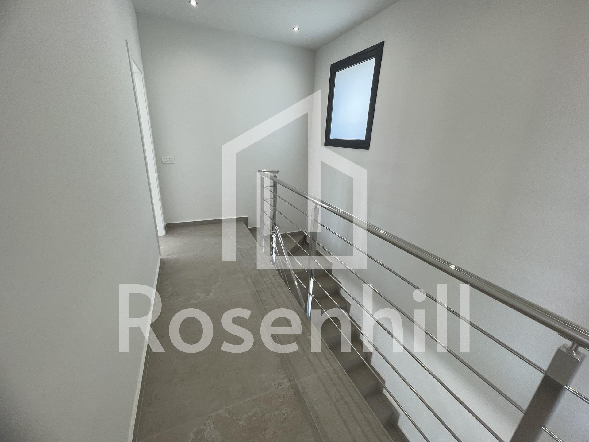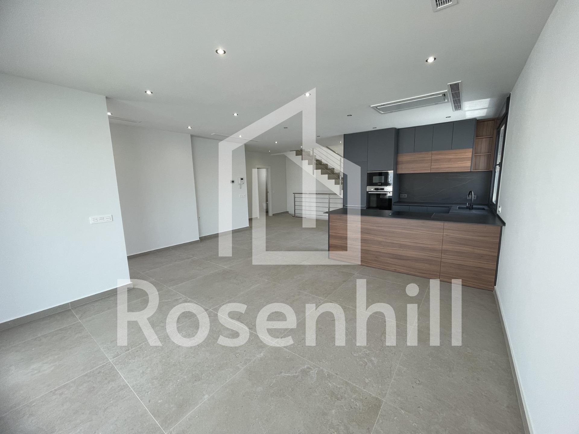 The house includes a spacious basement with 2 parking spaces. Downstairs, there’s a big living room connected to an open plan kitchen, a room with outdoor access, 2 bathrooms, and a laundry space. Upstairs, you’ll find 2 bedrooms with their own bathrooms, plus a large terrace.