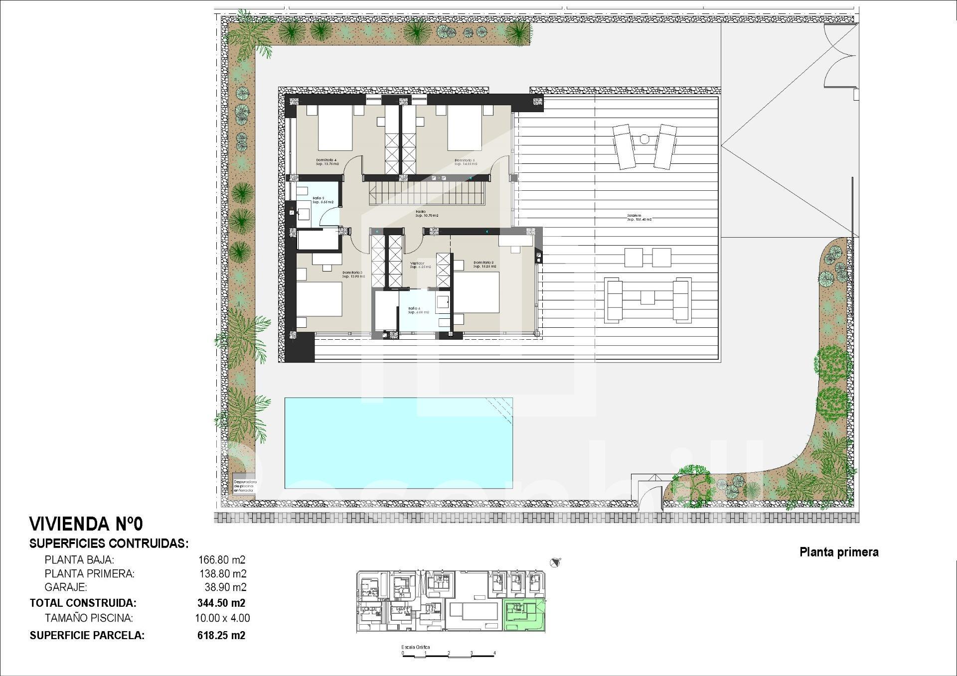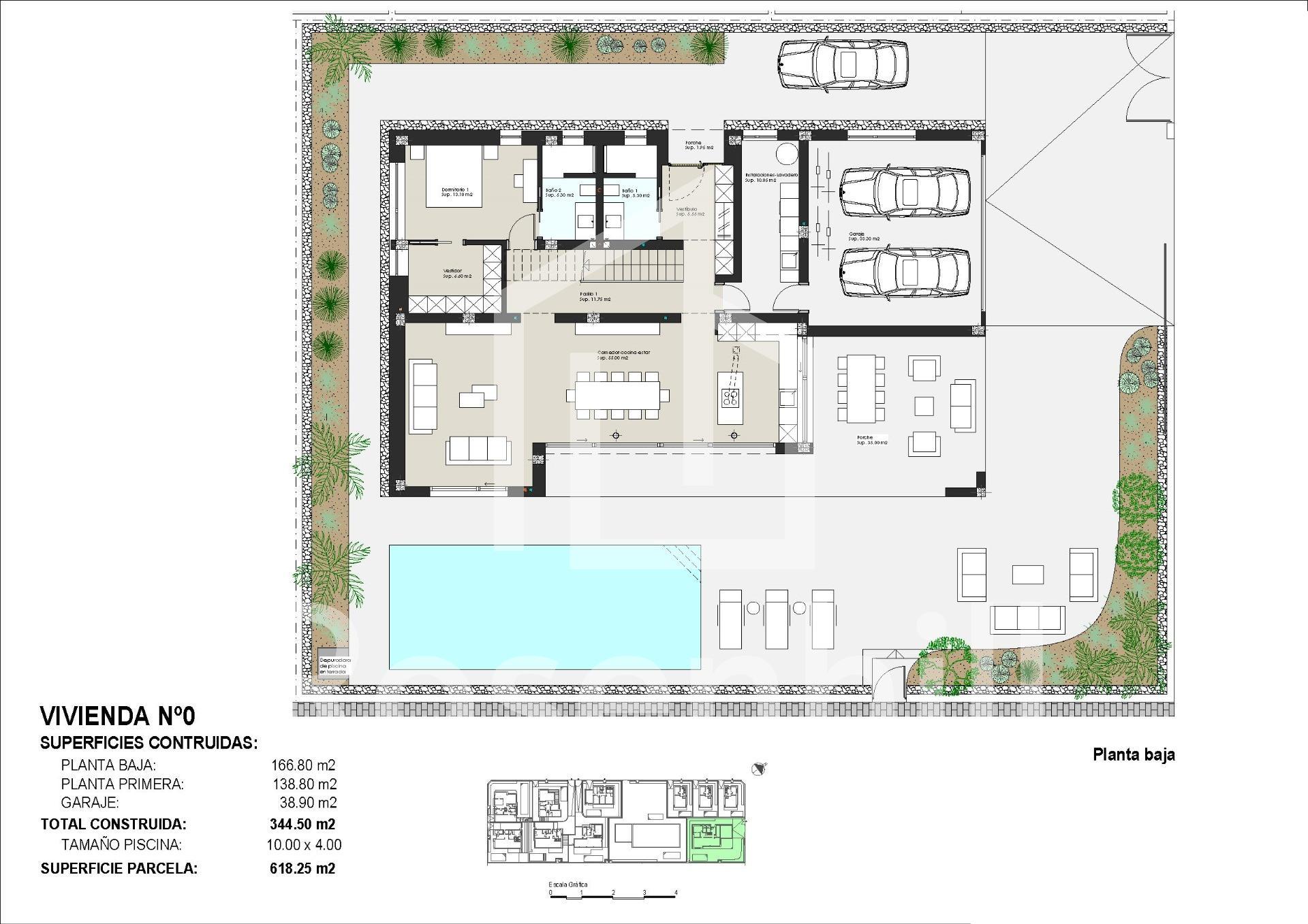 NEW BUILD VILLA IN TORRE DE LA HORADADA Modern New Build villa near Higuericas beach in Torre de la Horadada. The villa consists of a plot of 618 m², with 344 m² constructed. Villa has 5 bedrooms: two of them with complete bathroom and dressing room. Kitchen furnished with top quality materials to be chosen by the owner, including electrical appliances, following an open concept with the dining room surrounded by large windows that provide throughout the day a pleasant light and direct access to the pool and private garden areas completely finished. Air conditioning (hot/cold) by ducts included. Taking care to the smallest detail in the finishes, using the highest quality materials, personalized design and luxury without forgetting the maximum comfort, we achieve the enjoyment of housing both in summer and in the mild winter, making it habitable throughout the year. In addition to a covered garage area for 2 vehicles and parking for another car. Villa located 100m from the Higuericas beach, in Torre de la Horadada, a paradise in all aspects, where you can enjoy the immensity of the Mediterranean Sea, the promenade, refreshing swims in the sea, water sports, sailing, surfing, snorkelling and just 8 km from Lo Romero Golf, one of the 21 golf courses on the Costa Blanca. 5 minutes from the marina of La Torre de la Horadada and 10 minutes from the marinas of San Pedro del Pinatar, and the best restaurants where you can enjoy the best Mediterranean cuisine. Not forgetting the proximity of the AP7 motorway that connects our residential with two airports with international destinations, 44 km from Corvera and 75km from El Altet, Alicante. The nearest town to the area where the development is located is Pilar de la Horadada, 1 km away, a quiet town with all kinds of services, schools, health centres, police, pharmacies, etc. There are also two commercial areas nearby, the Dos Mares Shopping Centre in San Javier, a 5 minute drive away and La Zenia Boulevard in Orihuela Costa, a 15 minute drive away.