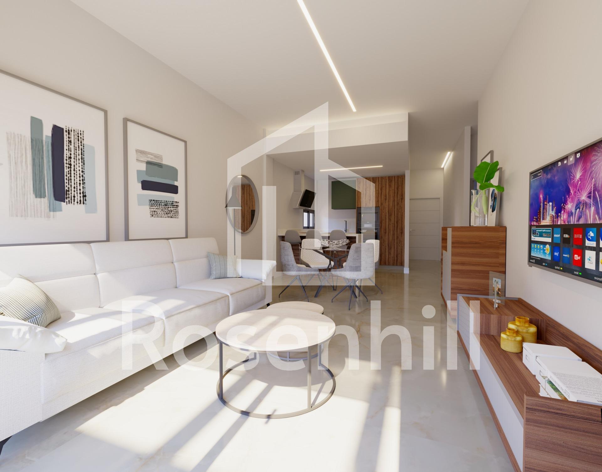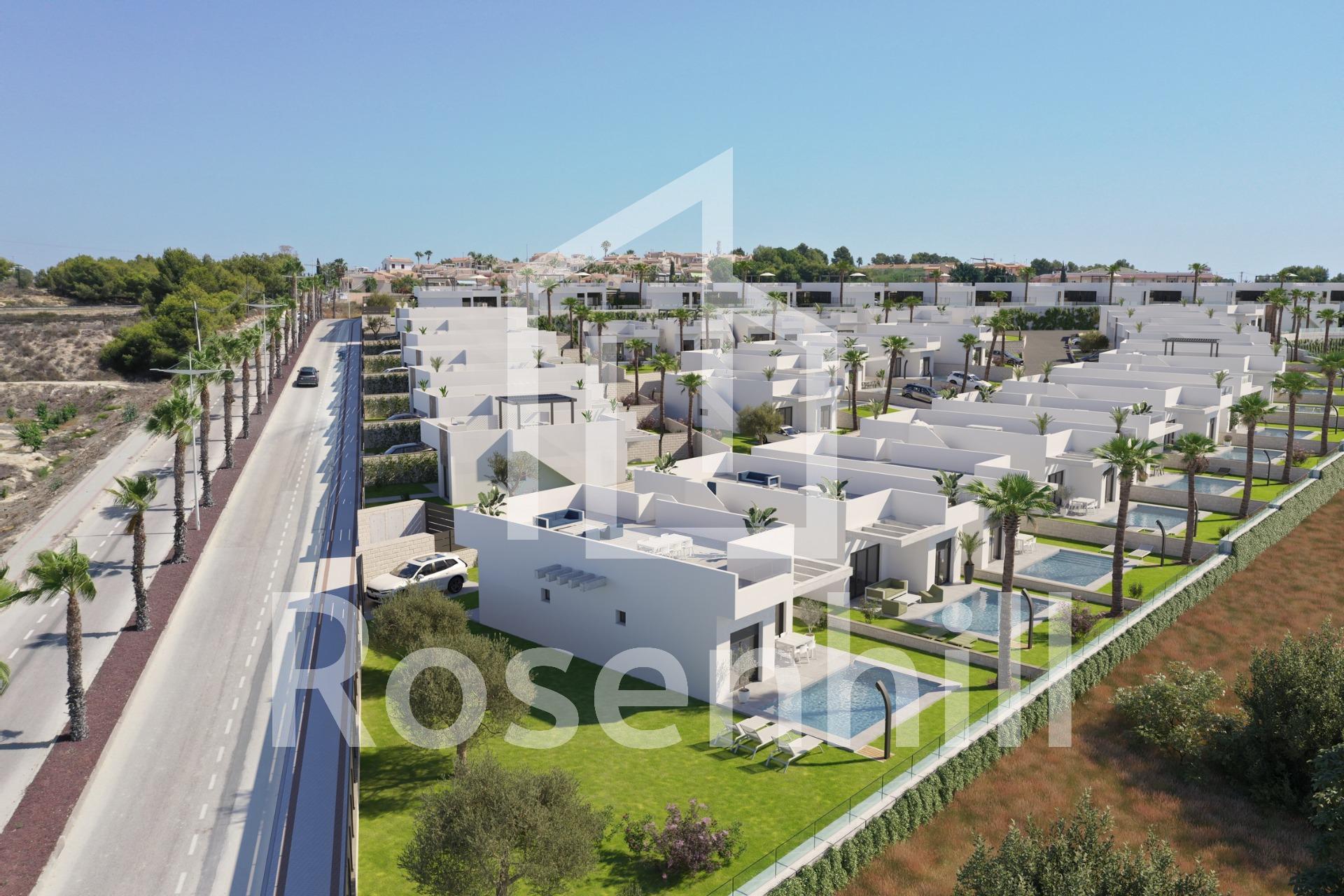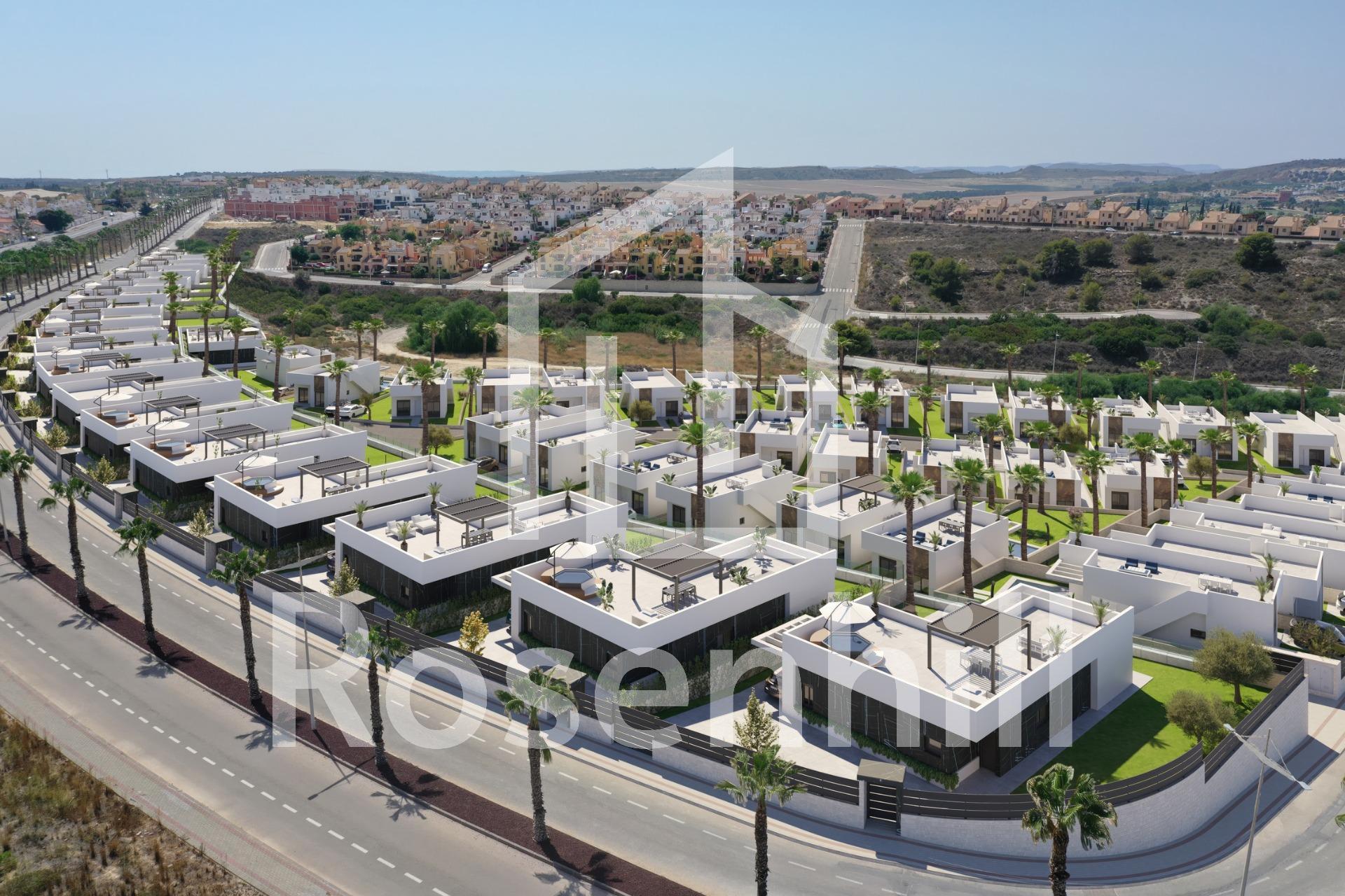 NEW BUILD VILLAS IN ALGORFA GOLF RESORT New Build residential of independent villas in La Finca Golf course, Algorfa. Villas build over 1 floor and consists of 3 bedrooms, 2 bathrooms, open plan kitchen, the living room with open views to the terrace, solarium, private garden with the pool and parking. Residential complex located in La Finca Golf resort, in the municipality of Algorfa, in the Vega Baja area of the Costa Blanca South. Only 15 minutes drive from the sandy beaches of Guardamar del Segura, and only 35 minutes from Alicante airport. The larger towns of Almoradi, Benijófar and Ciudad Quesada are a short drive away. Torrevieja and Orihuela Costa, with their large shopping centres, are 15 minutes away.