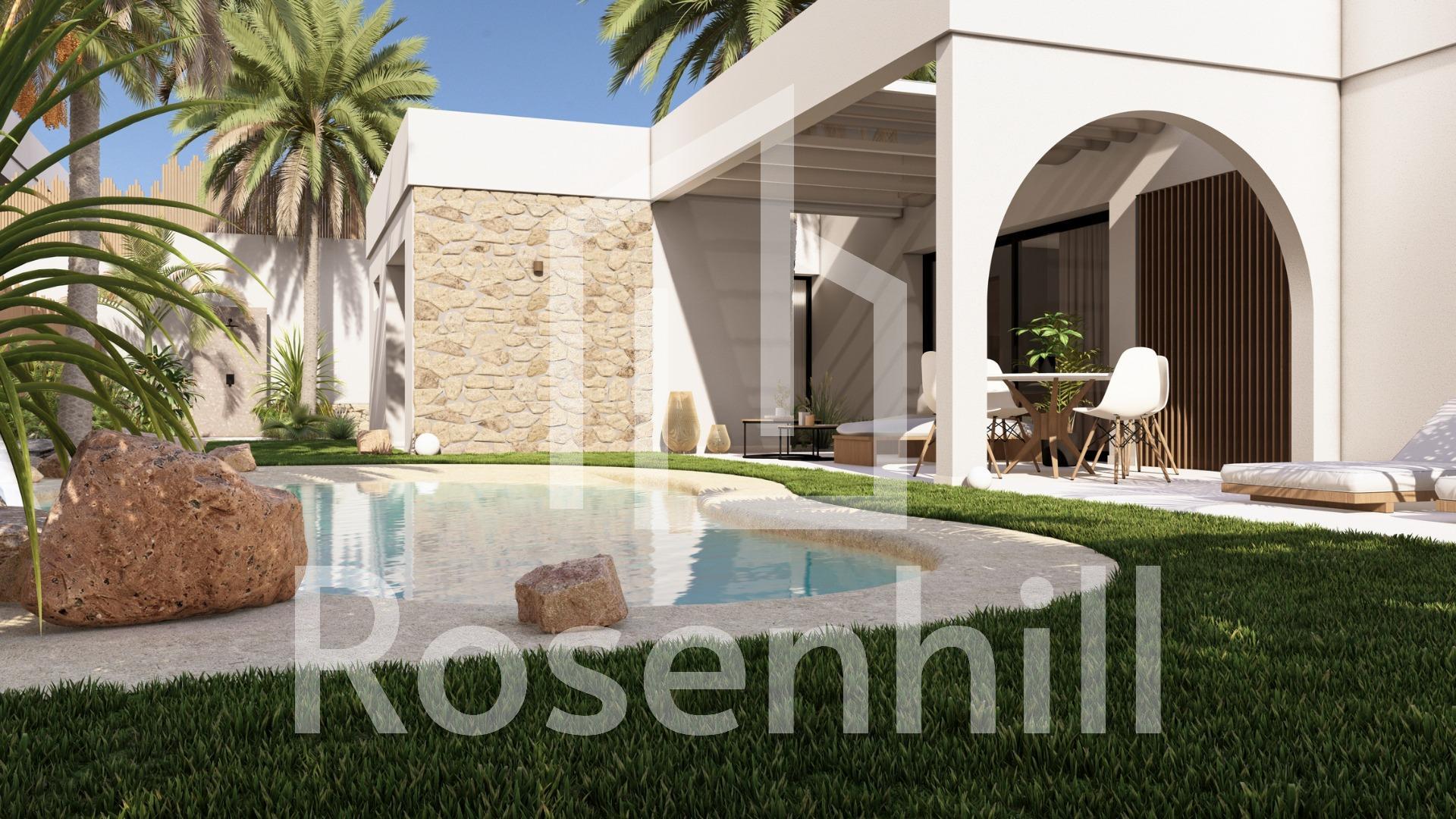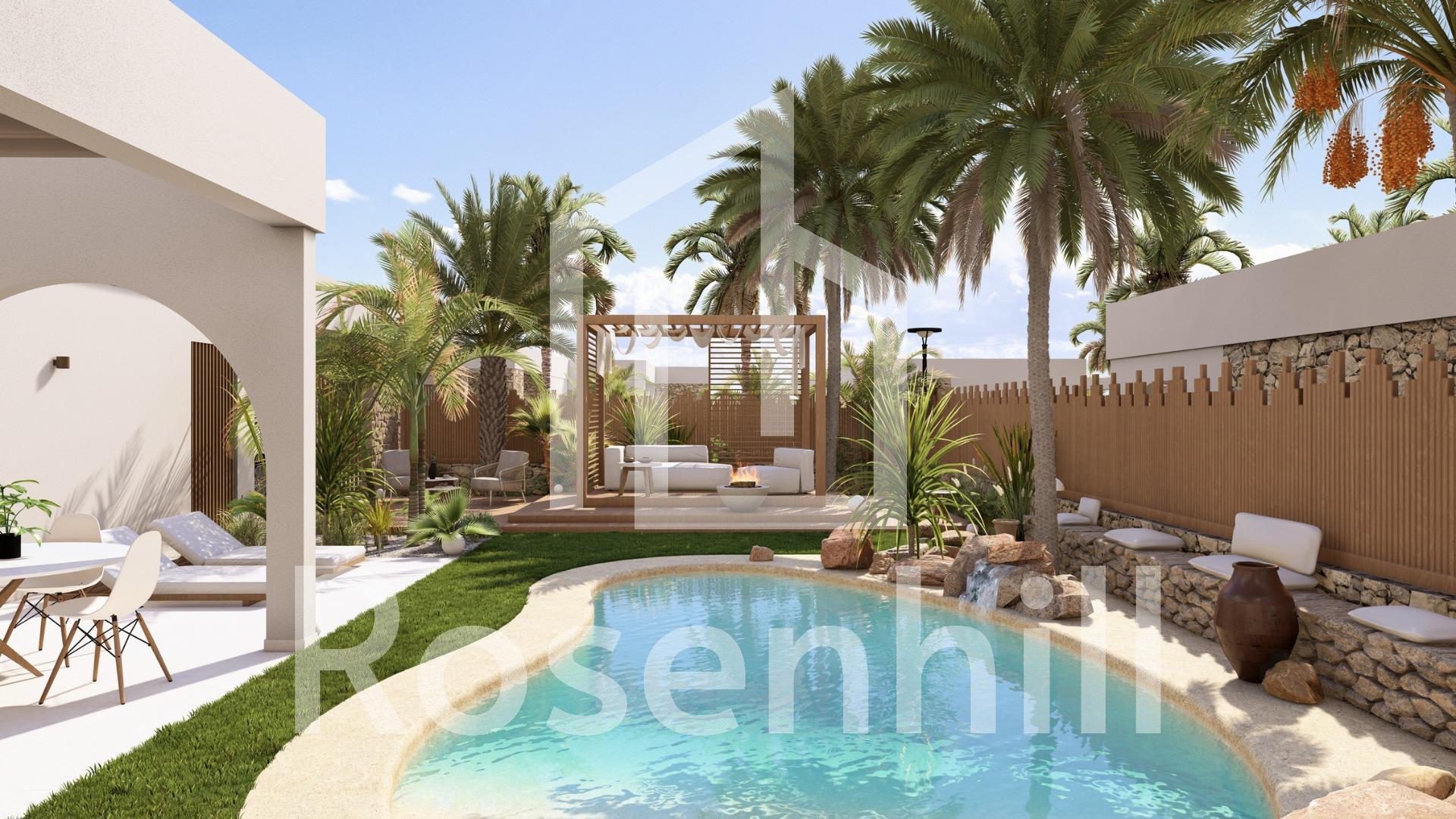 NEW BUILD VILLAS IN ALTAONA GOLF RESORT, MURCIA New Build residential of beautiful villas in Altaona Golf resort, Murcia. New Build villas with open plan kitchen, 3 bedrooms, 3 bathrooms, guest toilet, terrace, private garden with pool and parking space. Features: