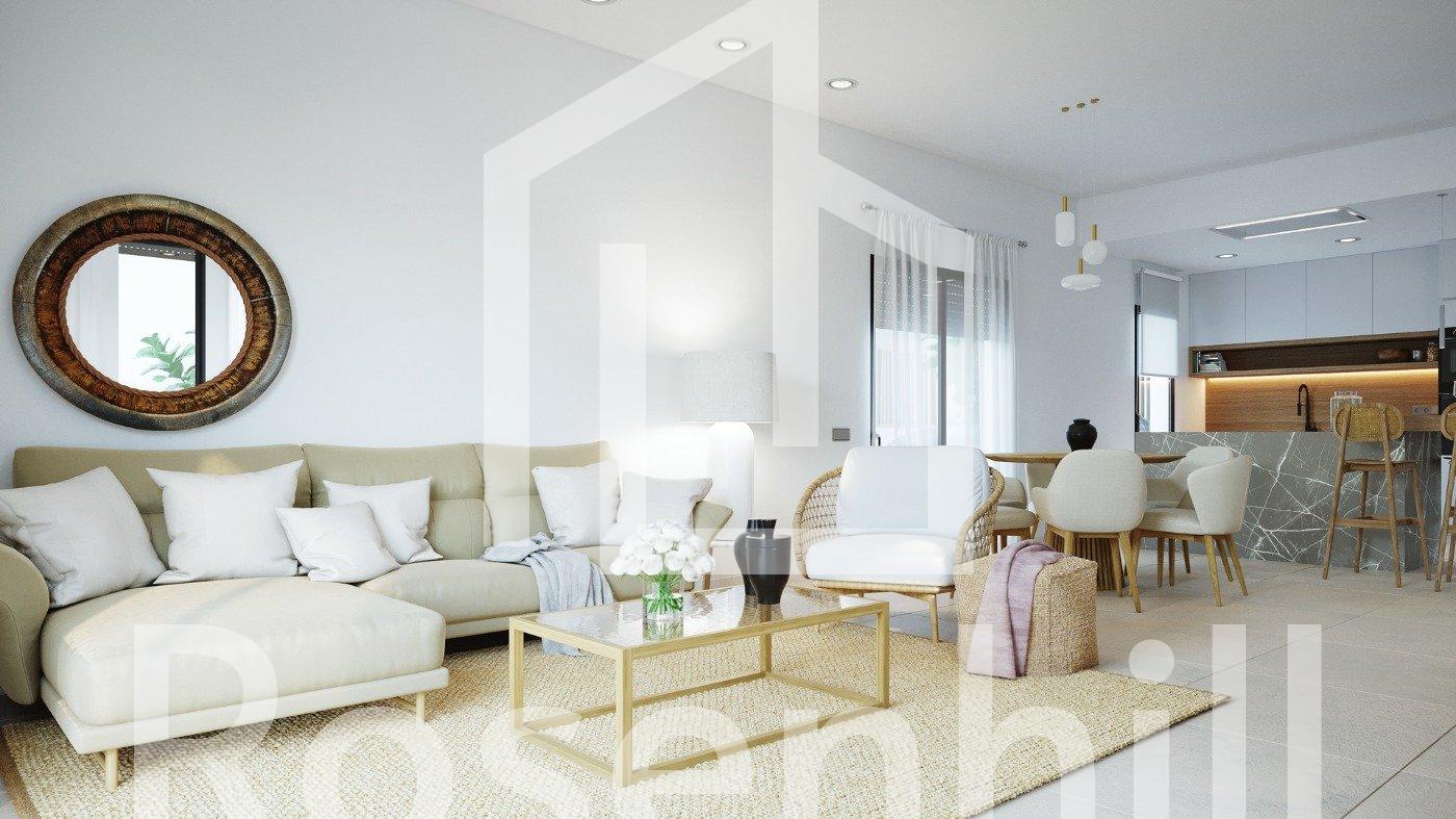 NEW BUILD VILLAS IN ALTAONA GOLF RESORT, MURCIA New Build residencial of beautiful villas in Altaona Golf resort, Murcia. Located in a privileged environment where we can live quietly, in contact with nature and the mountains, we achieve quality of life, fresh air and open spaces. You have 5 models to choose. Villas build on the plots from 320 m2 with 3 bedrooms, 2 bathrooms and a private pool with multiple options where quality is our highest and where we integrate the exterior with the interior of the living place. Exclusive New Build residential located in Altaona Golf just 15 minutes by car from the center of Murcia capital and 20 minutes from the beaches you can enjoy the tranquility and security offered by the Golf Course that has 18 holes and the comfort to live close to all services. Murcias airport Corvera only 15 minutes drive away.