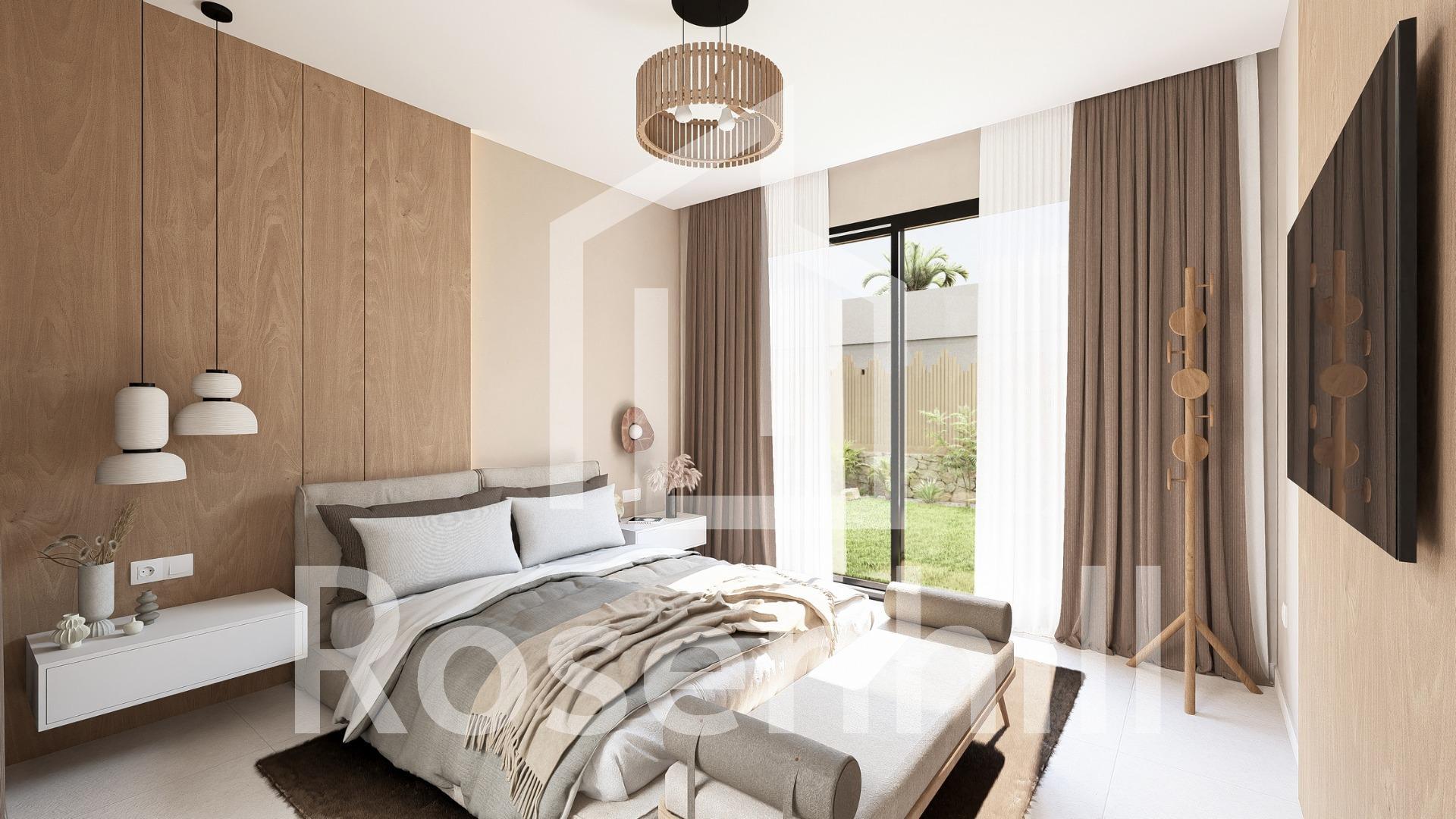 NEW BUILD VILLAS IN ALTAONA GOLF RESORT, MURCIA New Build residential of beautiful villas in Altaona Golf resort, Murcia. New Build villas with open plan kitchen, 2 bedrooms, 2 bathrooms, guest toilet, terrace, private garden with pool and parking space.. Features: • The properties have Energy Certificate Rating A. • Ducted air conditioning installation with heat pump. Throughout the house except for bathrooms. • Electric underfloor heating in the living room and bathrooms with individual thermostat per zone. • Air renewal system in the kitchen, bathrooms, laundry room, and guest toilet. • Kitchen Includes extractor hood and electric induction hob with 3 cooking points. • Includes LED lighting in the living room, hallway, and exterior. The rest of the rooms are prepared for the future owner to install their lighting. • USB sockets in all bedrooms. • Electronic intercom for access from the exterior to the interior path. Doorbell at the property entrance. • Home automation system with two smart switches. • Private landscaped garden with drip irrigation system and the pool. • Exterior fencing of the urbanisation. • Vehicle access gates to the urbanisation: Metal sliding gate with remote opening system Residential located in Altaona Golf just 15 minutes by car from the centre of Murcia capital and 20 minutes from the beaches you can enjoy the tranquillity and security offered by the Golf Course that has 18 holes and the comfort to live close to all services. Murcias airport Corvera only 15 minutes drive away.