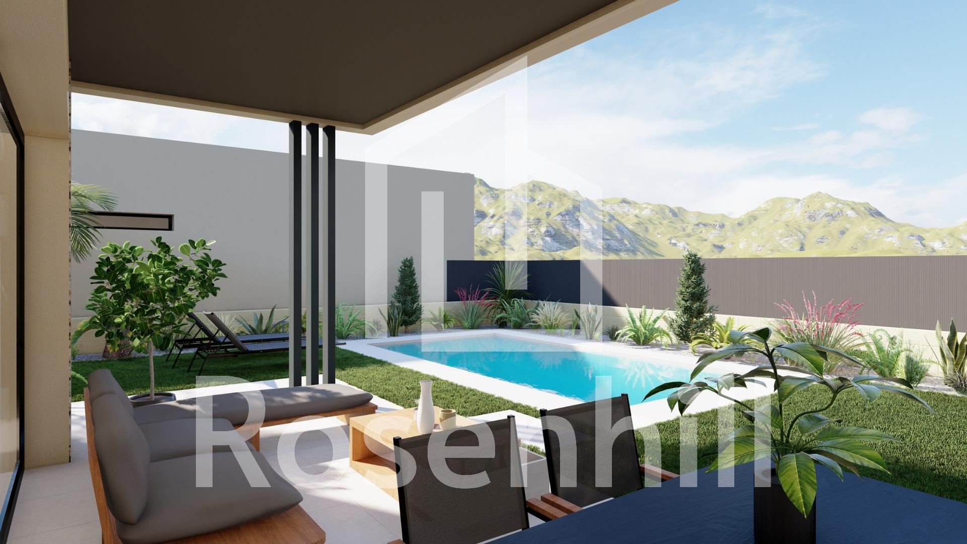 NEW BUILD VILLAS IN ALTAONA GOLF RESORT, MURCIA New Build residential of beautiful villas in Altaona Golf resort, Murcia. New Build luxury villa with open plan kitchen, 3 bedrooms, 2 bathrooms, terrace, private garden with pool and parking space. The cold/hot air conditioning is designed with a fully installed ducted A/C machine. The entrance door to the house has an armoured lock with anti-jemmy hinges. The interior wardrobes are fitted with a mezzanine, hanging bar, chest of drawers and an intermediate shelf. The project has ample communal zones with many greens, paths, and relaxation areas. Located in a privileged environment where we can live quietly, in contact with nature and the mountains, we achieve quality of life, fresh air and open spaces. Features: •Garden, swimming pool and private parking •24/7 security and tranquillity •A+ energy efficiency •Innovative construction method •Communal green areas and gardens with orchard Optional features: •Solar panels •Kitchen White goods •Gas system •Electric car charging point •Fireplace •Lift (For villas with 2 floors) •Extra storage space in hallway Residential located in Altaona Golf just 15 minutes by car from the centre of Murcia capital and 20 minutes from the beaches you can enjoy the tranquillity and security offered by the Golf Course that has 18 holes and the comfort to live close to all services. Murcias airport Corvera only 15 minutes drive away.