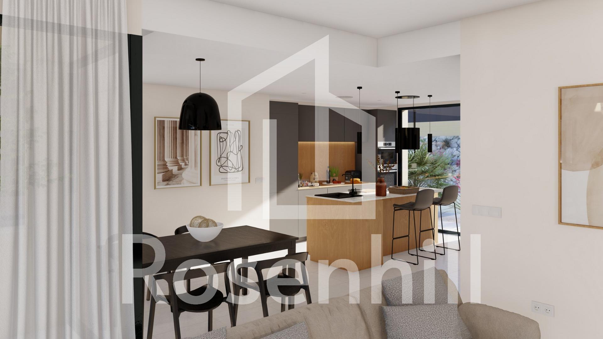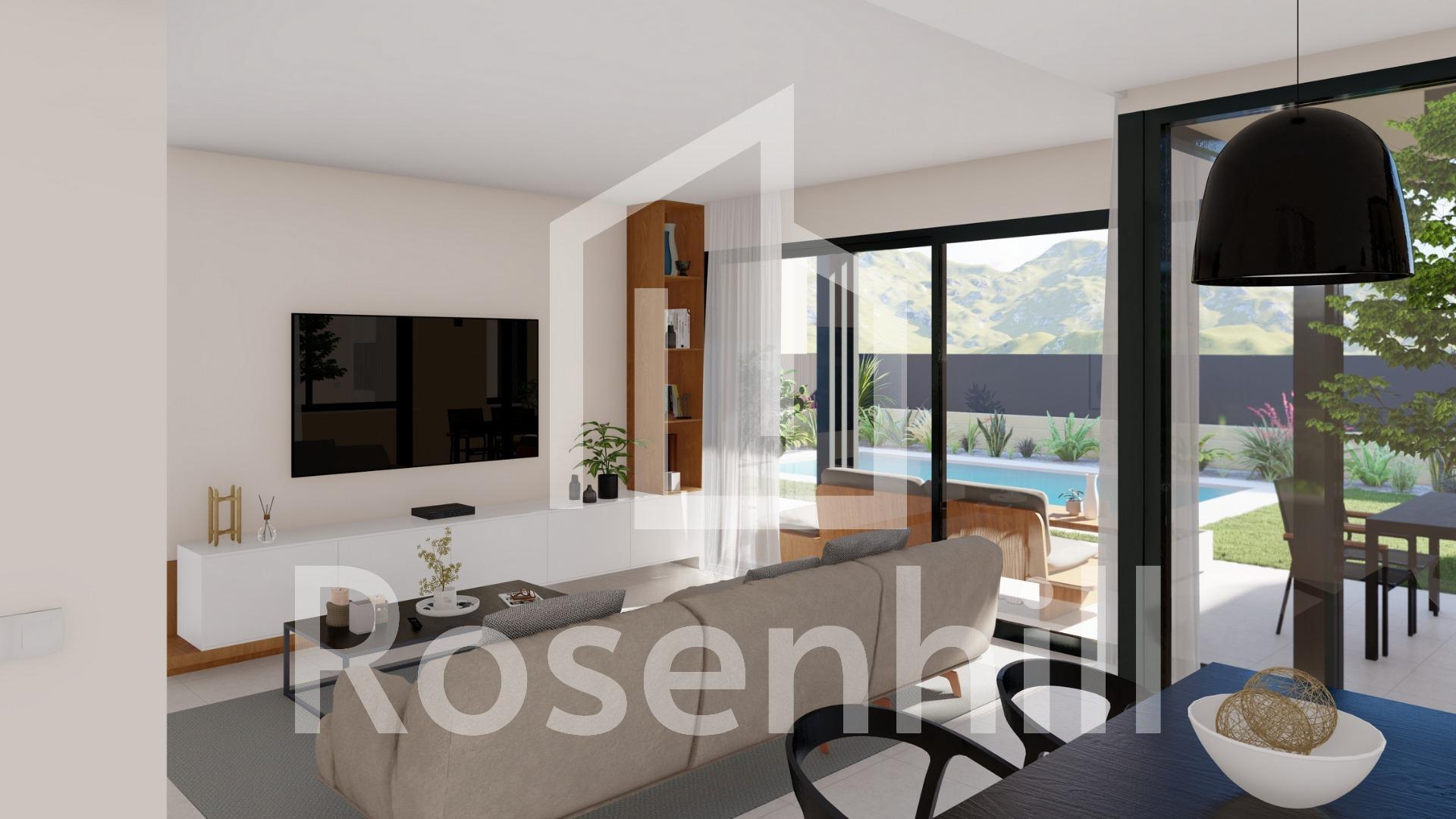 NEW BUILD VILLAS IN ALTAONA GOLF RESORT, MURCIA New Build residential of beautiful villas in Altaona Golf resort, Murcia. New Build luxury villa with open plan kitchen, 3 bedrooms, 2 bathrooms, terrace, private garden with pool and parking space. The cold/hot air conditioning is designed with a fully installed ducted A/C machine. The entrance door to the house has an armoured lock with anti-jemmy hinges. The interior wardrobes are fitted with a mezzanine, hanging bar, chest of drawers and an intermediate shelf. The project has ample communal zones with many greens, paths, and relaxation areas. Located in a privileged environment where we can live quietly, in contact with nature and the mountains, we achieve quality of life, fresh air and open spaces. Features: •Garden, swimming pool and private parking •24/7 security and tranquillity •A+ energy efficiency •Innovative construction method •Communal green areas and gardens with orchard Optional features: •Solar panels •Kitchen White goods •Gas system •Electric car charging point •Fireplace •Lift (For villas with 2 floors) •Extra storage space in hallway Residential located in Altaona Golf just 15 minutes by car from the centre of Murcia capital and 20 minutes from the beaches you can enjoy the tranquillity and security offered by the Golf Course that has 18 holes and the comfort to live close to all services. Murcias airport Corvera only 15 minutes drive away.