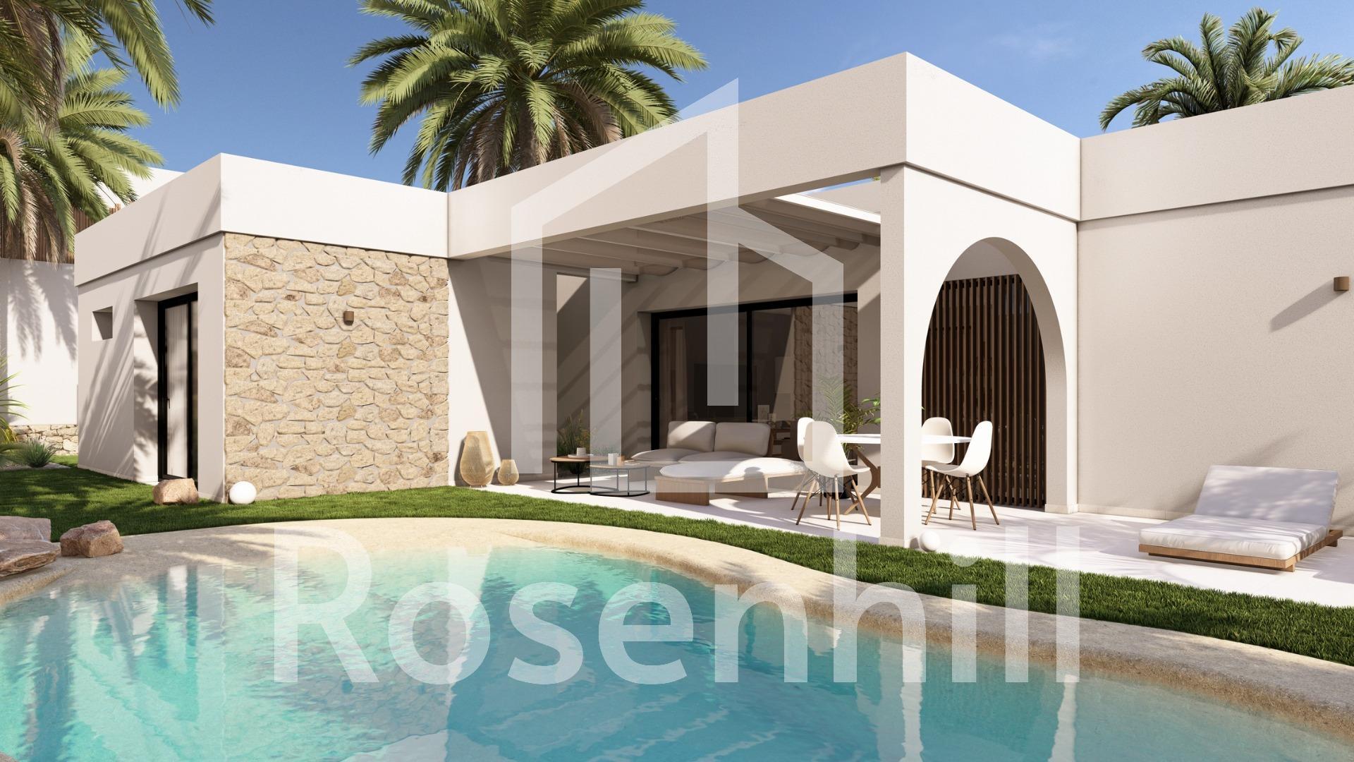 NEW BUILD VILLAS IN ALTAONA GOLF RESORT, MURCIA New Build residential of beautiful villas in Altaona Golf resort, Murcia. New Build villas with open plan kitchen, 3 bedrooms, 3 bathrooms, guest toilet, terrace, private garden with pool and parking space. Features: