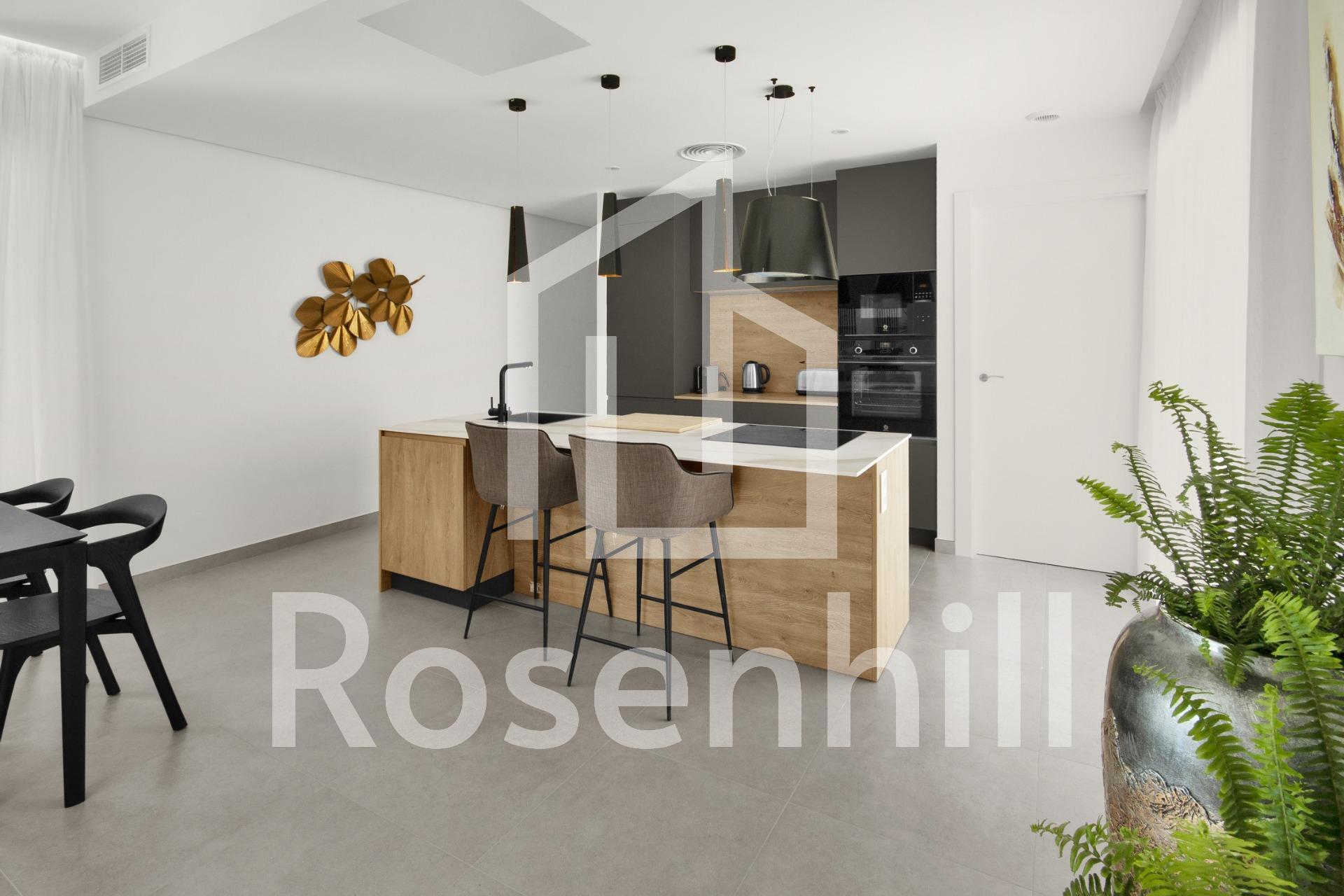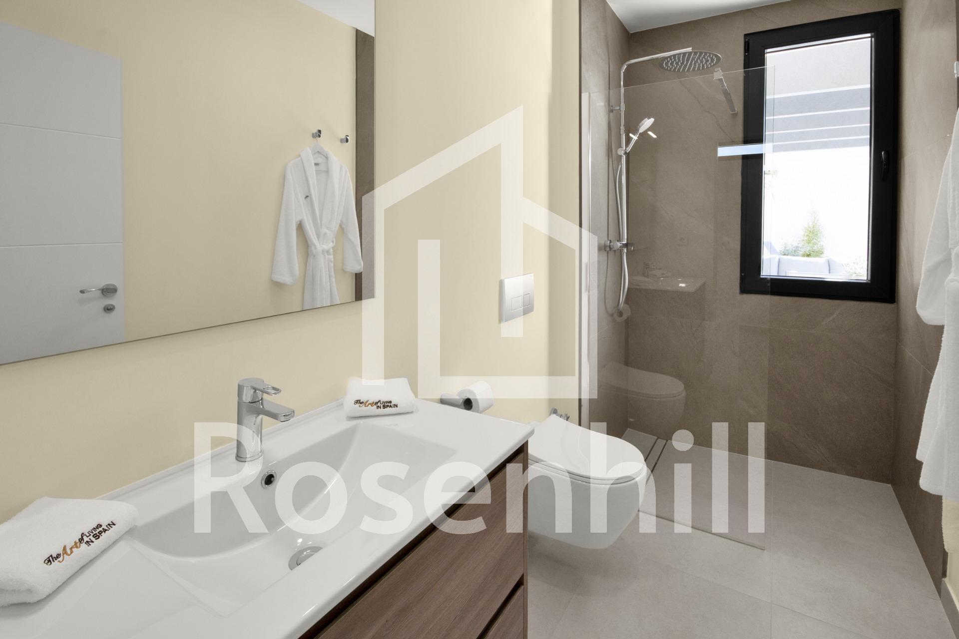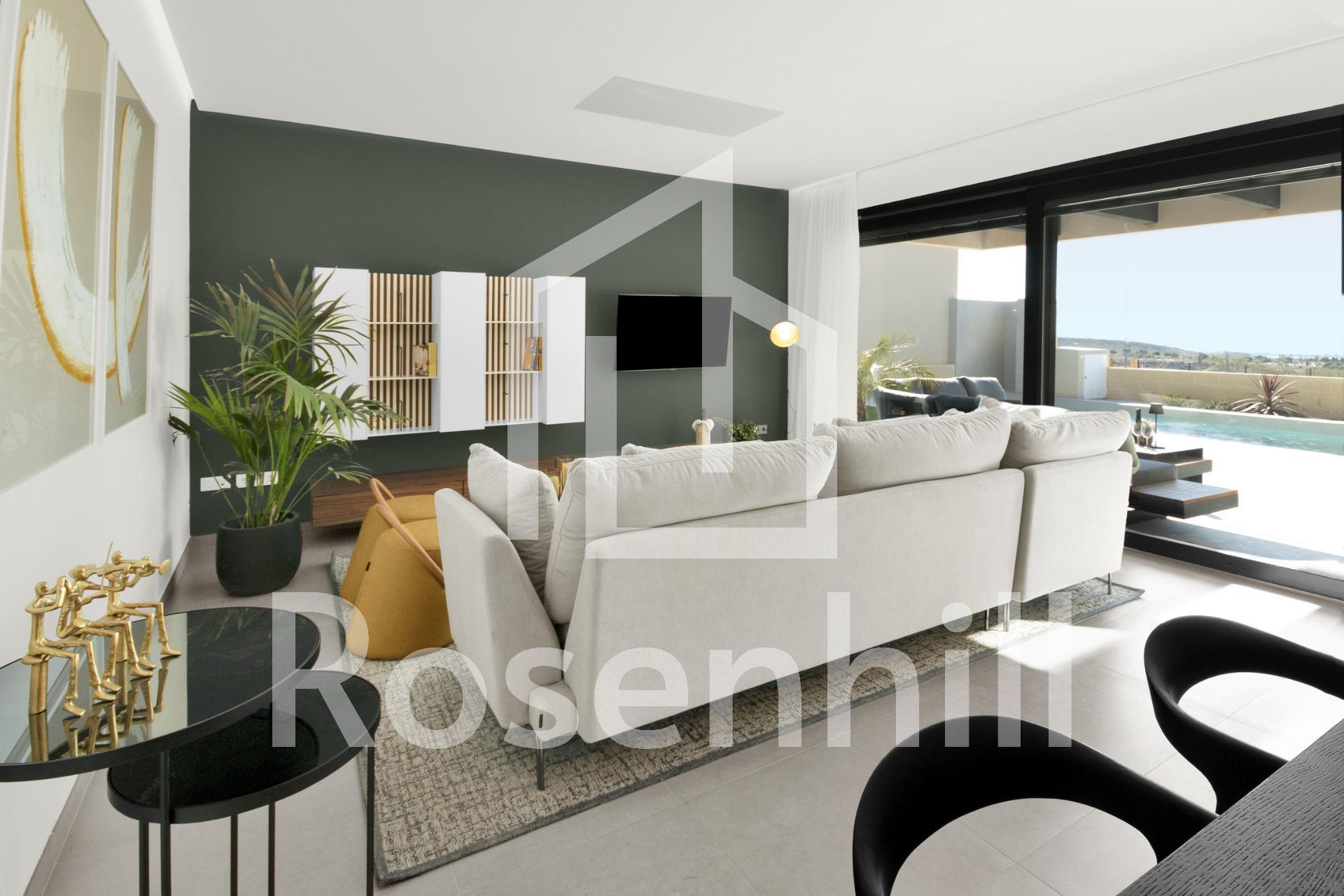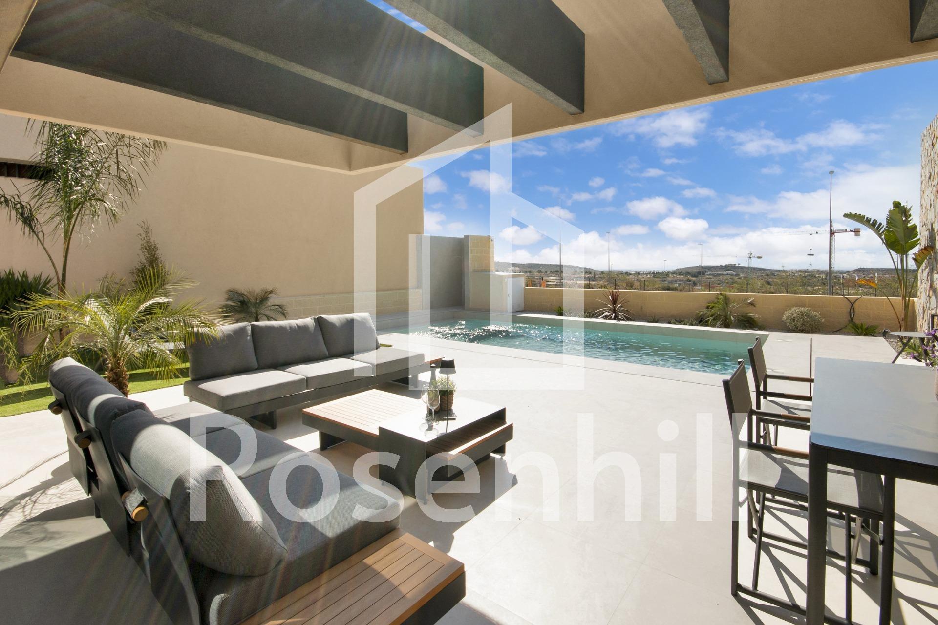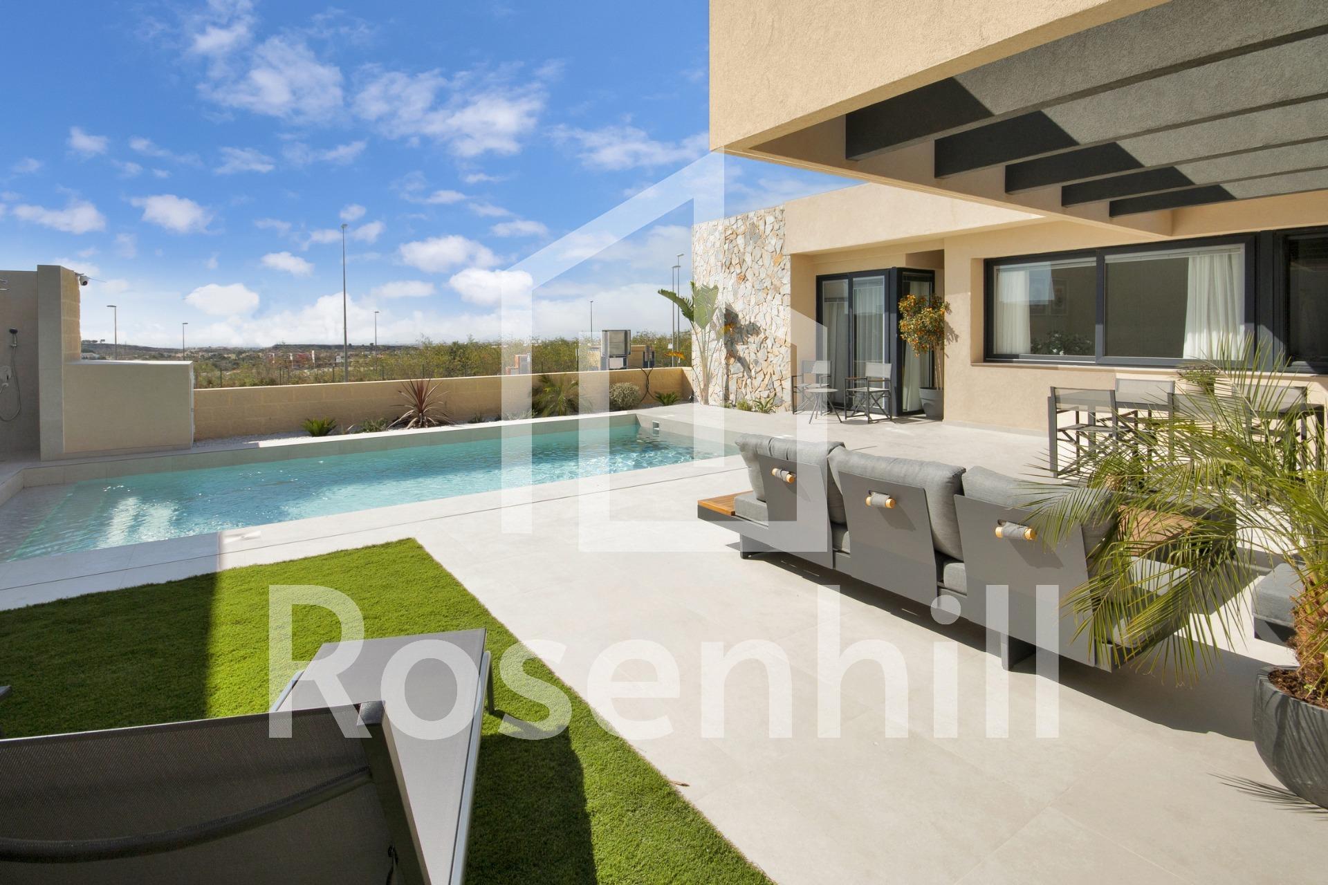 NEW BUILD VILLAS IN ALTOANA GOLF RESORT, MURCIA New Build residential of beautiful villas in Altaona Golf resort, Murcia. Villa has 3 bedrooms, 2 bathrooms, open plan kitchen with the lounge area abd direct access to the garden with private pool and parking space. Villas are designed specifically to provide endless views of the golf course, lakes and distant countryside, from inside or out. South-facing gardens and terraces ensure that you can enjoy the warm winter sun, and generous glass windows provide additional views over the region from the comfort of the interior. Villas have been crafted to maximize comfort, privacy and efficiency. indigenous plants have been placed on the rooftops to create the feeling of another natural space Located in a privileged environment where we can live quietly, in contact with nature and the mountains, we achieve quality of life, fresh air and open spaces. Exclusive New Build residential located in Altaona Golf just 15 minutes by car from the centre of Murcia capital and 15 minutes from the beaches you can enjoy the tranquillity and security offered by the Golf Course that has 18 holes and the comfort to live close to all services. Included in the spacious resort are all kinds of services such as a shopping center, tennis, paddle and basketball courts. The front gate is always staffed, making Altaona a place where children can safely play outside. In total, some 500 homes are added to make up the Altaona resort, spread over an area of 3.6 million m2. Here are a few local highlights: • Murcia center: 15 minutes. • Beach: 20 minutes. • Corvera Airport: 20 minutes. • Alicante Airport: 45 minutes. • Shopping Center (La Alberca): 8 minutes. • Hospital: 10 minutes