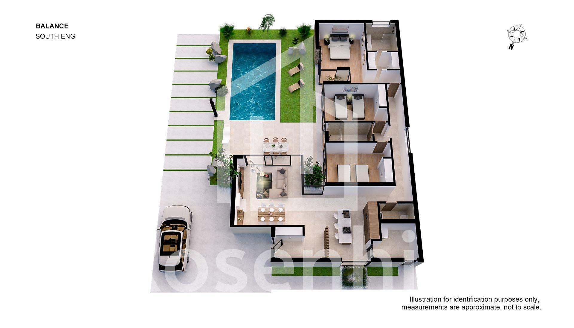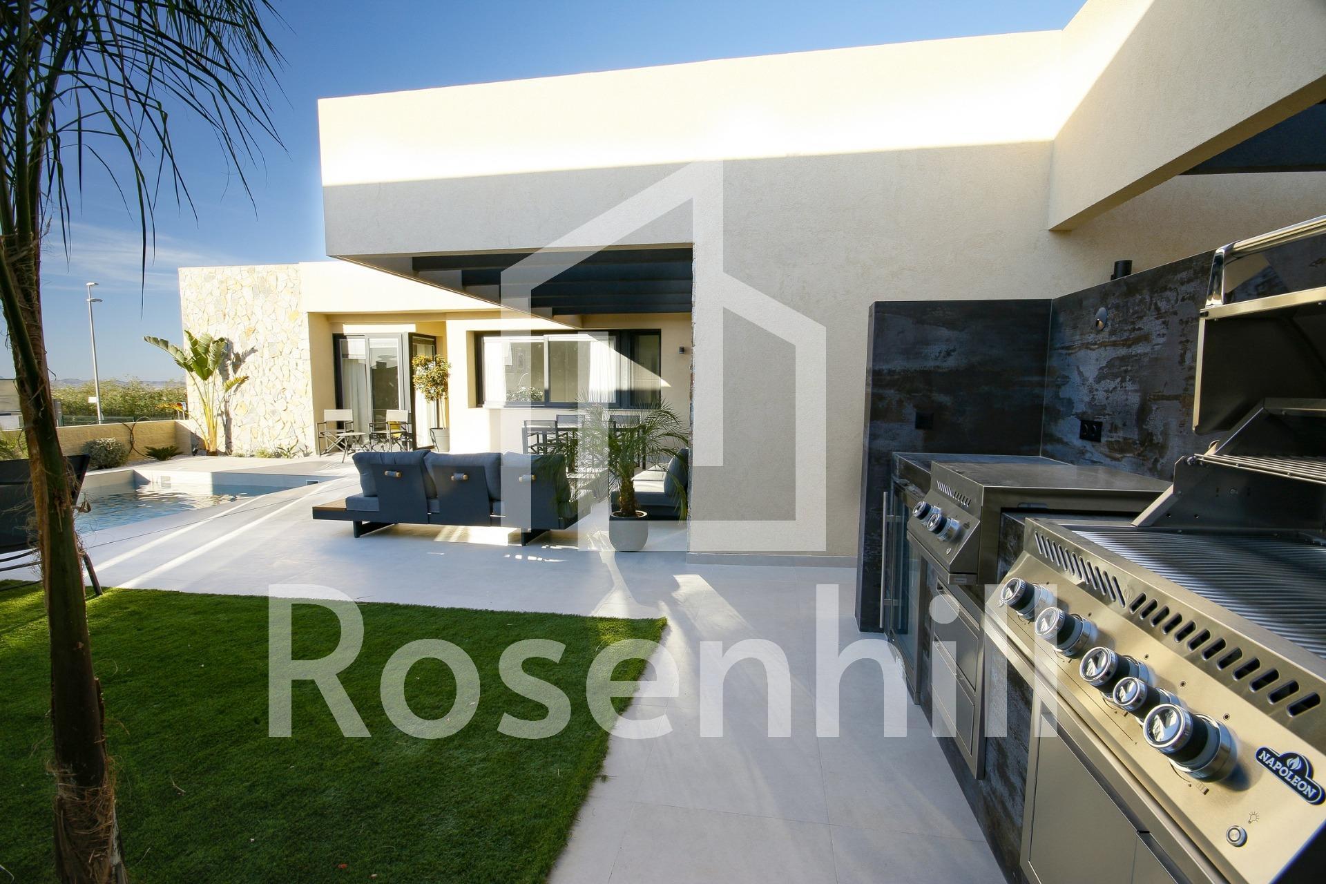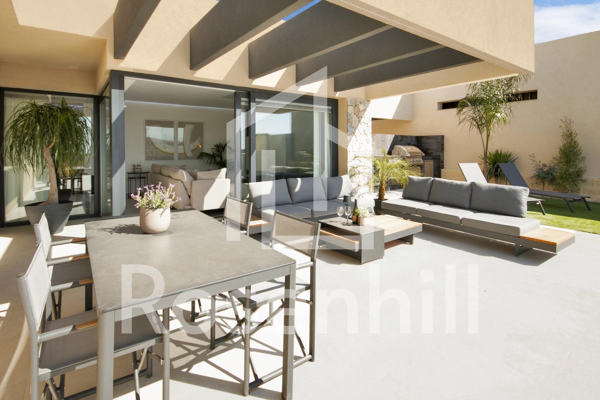 NEW BUILD VILLAS IN ALTOANA GOLF RESORT, MURCIA New Build residential of beautiful villas in Altaona Golf resort, Murcia. Villa has 3 bedrooms, 2 bathrooms, open plan kitchen with the lounge area abd direct access to the garden with private pool and parking space. Villas are designed specifically to provide endless views of the golf course, lakes and distant countryside, from inside or out. South-facing gardens and terraces ensure that you can enjoy the warm winter sun, and generous glass windows provide additional views over the region from the comfort of the interior. Villas have been crafted to maximize comfort, privacy and efficiency. indigenous plants have been placed on the rooftops to create the feeling of another natural space Located in a privileged environment where we can live quietly, in contact with nature and the mountains, we achieve quality of life, fresh air and open spaces. Exclusive New Build residential located in Altaona Golf just 15 minutes by car from the centre of Murcia capital and 15 minutes from the beaches you can enjoy the tranquillity and security offered by the Golf Course that has 18 holes and the comfort to live close to all services. Included in the spacious resort are all kinds of services such as a shopping center, tennis, paddle and basketball courts. The front gate is always staffed, making Altaona a place where children can safely play outside. In total, some 500 homes are added to make up the Altaona resort, spread over an area of 3.6 million m2. Here are a few local highlights: • Murcia center: 15 minutes. • Beach: 20 minutes. • Corvera Airport: 20 minutes. • Alicante Airport: 45 minutes. • Shopping Center (La Alberca): 8 minutes. • Hospital: 10 minutes