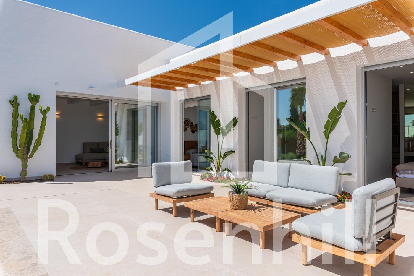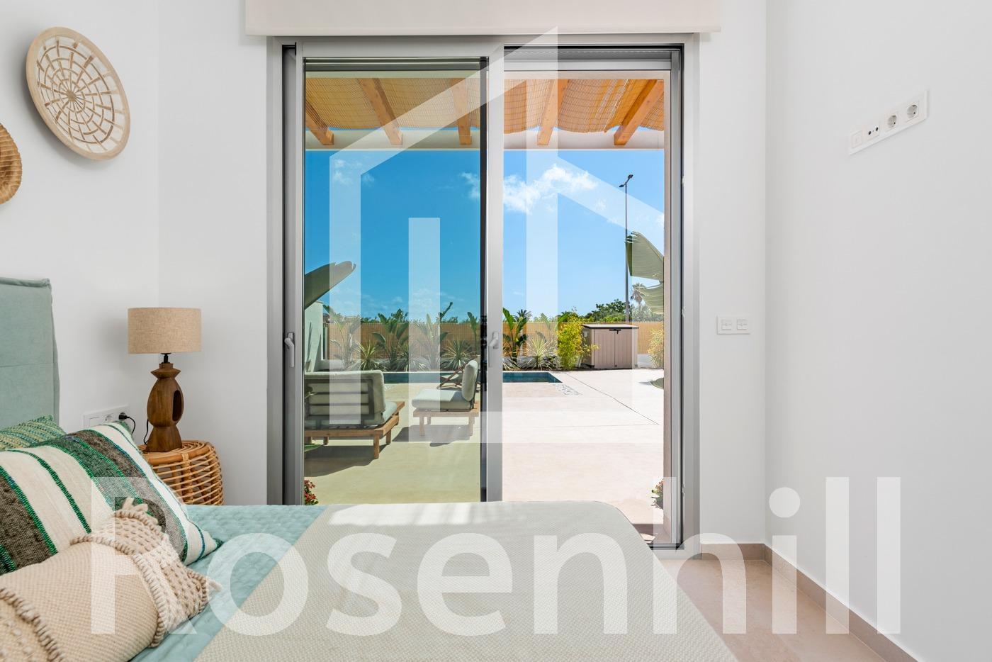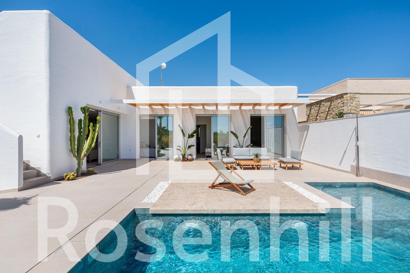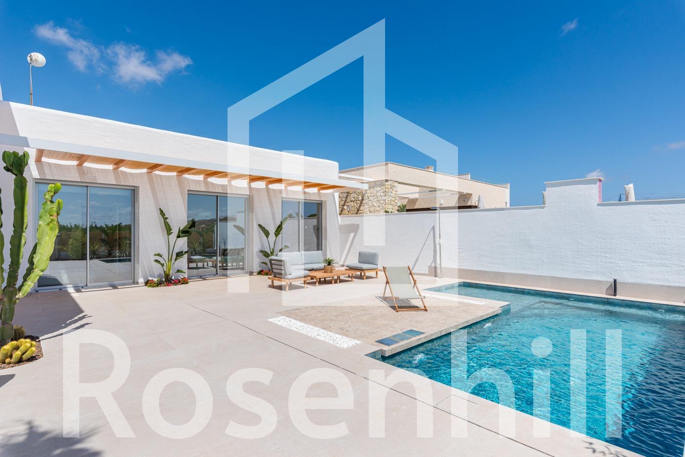 NEW BUILD VILLAS IN BENIJOFAR New Build residential of villas in Benijofar. New Build modern style villas with open plan kitchen and living area, 3 bedrooms, 2 bathrooms, private plot with terrace, parking space and private pool, garden and a wonderfull solarium with amazing views. Benijofar it is a lovely village with a charming church and an attractive square/plaza located inland on the Southern Costa Blanca, close to the tourist resorts of Guardamar del Segura and Torrevieja. Benijofar is also a popular place to stay for the summer holidays as it is close enough to the coastal resorts yet quiet enough to be able to get away from it all. There are several golf courses close by as well as water parks in nearby Rojales and Torrevieja. The nearest and best beaches to Benijofar are about fifteen minutes away by car and are some of the best beaches on the Southern Costa Blanca, at Guardamar del Segura and Torrevieja. There are also regular bus services from Benijofar to Guardamar del Segura and Torrevieja with easy access to the beaches. 20 minutes drive to Alicante airport with regular flights all over Europe.