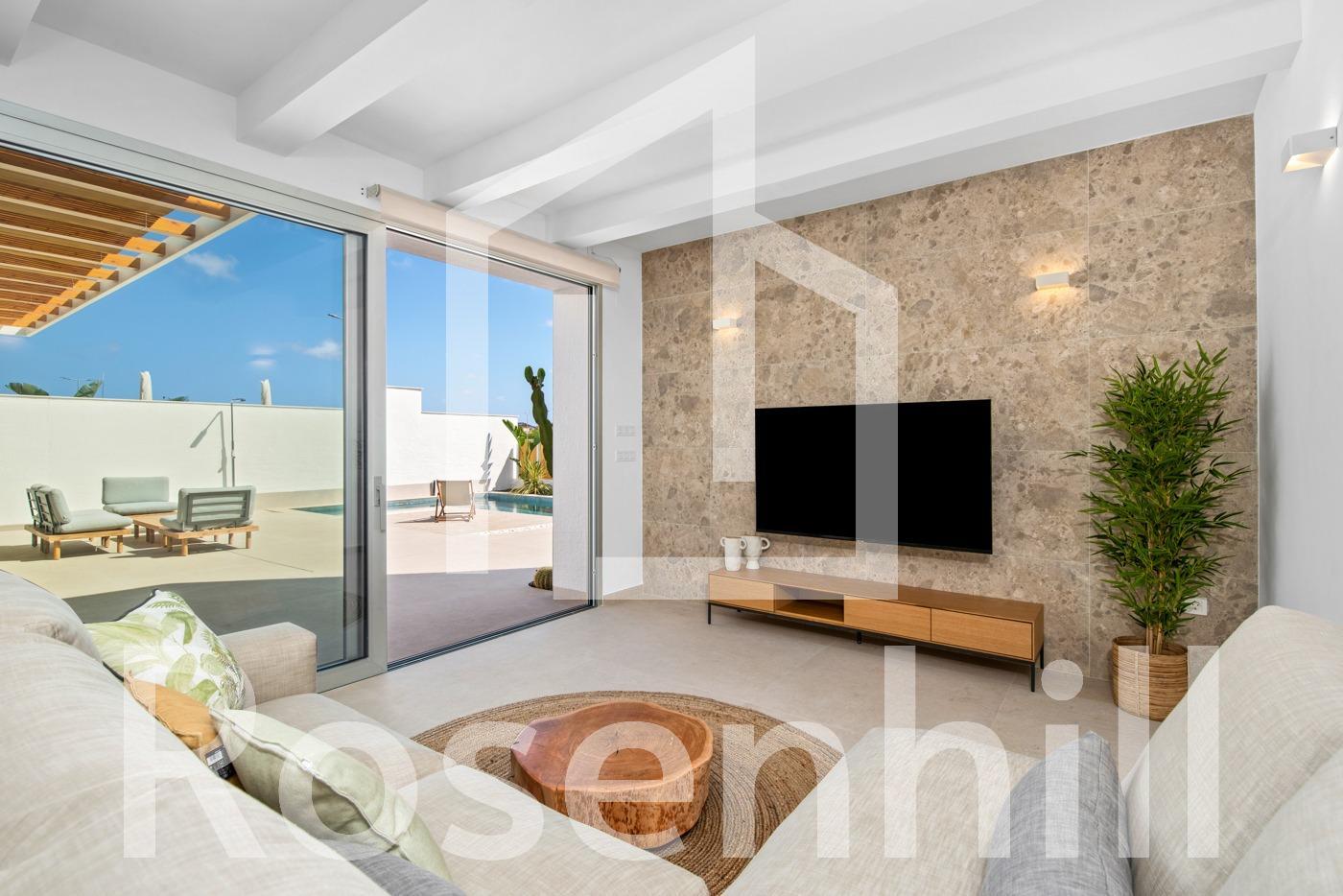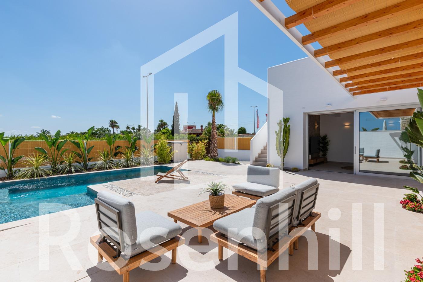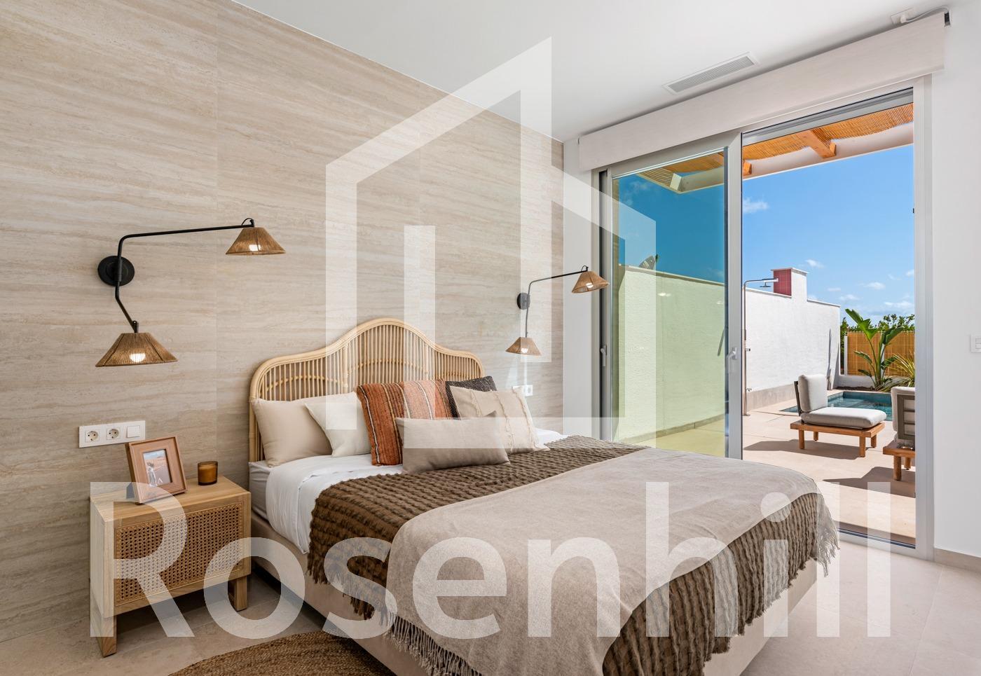 NEW BUILD VILLAS IN BENIJOFAR New Build residential of villas in Benijofar. New Build modern style villas with open plan kitchen and living area, 3 bedrooms, 2 bathrooms, private plot with terrace, parking space and private pool, garden and a wonderfull solarium with amazing views. Benijofar it is a lovely village with a charming church and an attractive square/plaza located inland on the Southern Costa Blanca, close to the tourist resorts of Guardamar del Segura and Torrevieja. Benijofar is also a popular place to stay for the summer holidays as it is close enough to the coastal resorts yet quiet enough to be able to get away from it all. There are several golf courses close by as well as water parks in nearby Rojales and Torrevieja. The nearest and best beaches to Benijofar are about fifteen minutes away by car and are some of the best beaches on the Southern Costa Blanca, at Guardamar del Segura and Torrevieja. There are also regular bus services from Benijofar to Guardamar del Segura and Torrevieja with easy access to the beaches. 20 minutes drive to Alicante airport with regular flights all over Europe.