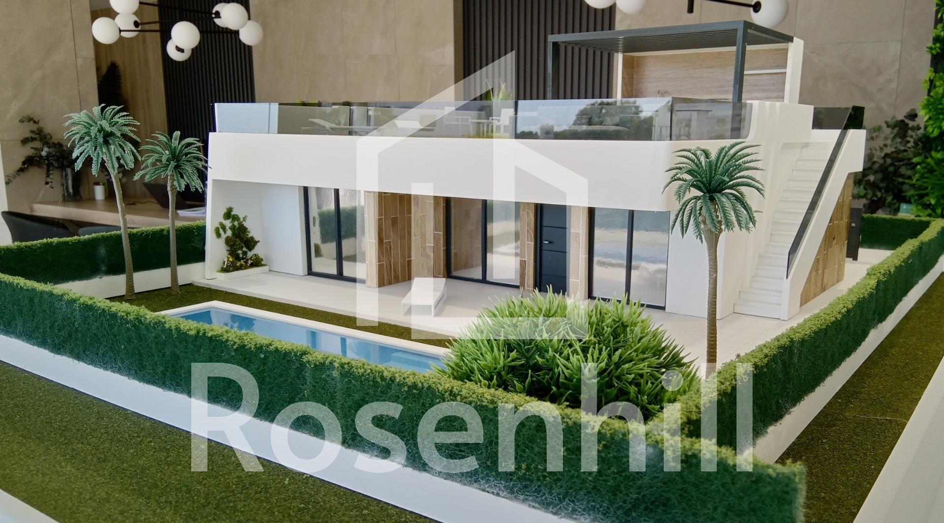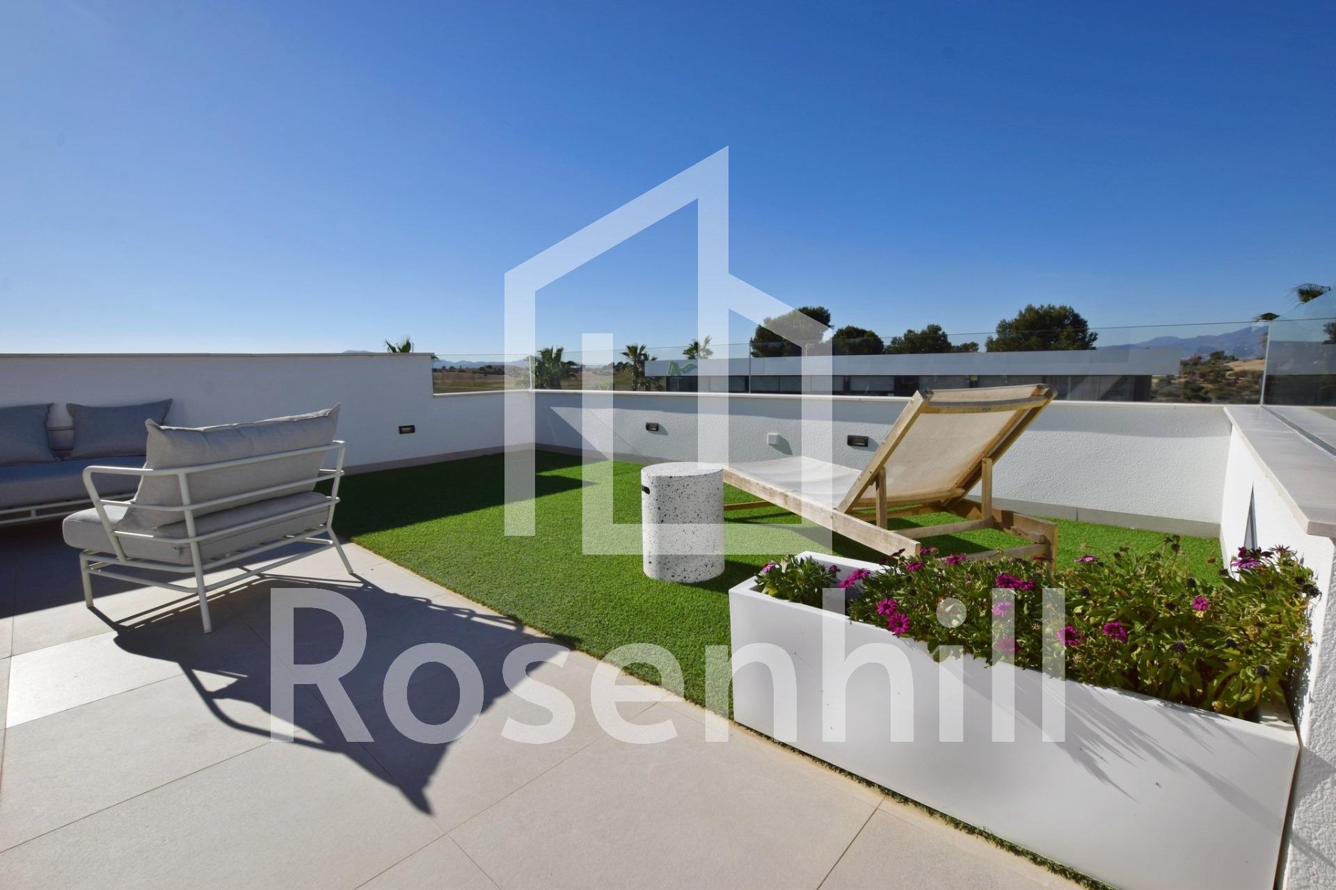 NEW BUILD VILLAS IN CONDADO DE ALHAMA GOLF COURSE New Build residential complex of villas and apartments in Condado de Alhama. There are 11 independent villas, with private swimming pool, solarium and outdoors parking space, with large terraced areas South facing and Summer kitchen, where you can enjoy the sun all year round. These beautiful villas, built with the highest quality standards, have 2, 3 or 4 bedrooms and 2 or 3 fully-fitted bathrooms. The villas have been designed with a contemporary style and an open planned concept, comprising of a fitted kitchen and a living-dining room. The development is located in Condado de Alhama, Murcia, within a luxury resort, with sports areas and surrounded by nature, all services, and several Golf Courses. The property will meet the highest standards and will be equipped with: Private swimming pool with solar shower and ample green areas. Kitchen completely furnished and equipped with oven and microwave elevated and in column, integrated fridge and dishwasher, induction hob and extractor fan. Lighting: inside the property (dining room, kitchen, corridors and bathrooms), as well as in outdoor areas. Lined wardrobes with drawers and shelves. Fully fitted bathrooms with vanity unit, suspended toilet, mirror, wall-mounted shower, shower screens and radiant heating on floor. Pre-installation for ducted air conditioning. Summer kitchen on the solarium. Solarium. Outdoor parking space. Charging points for electric cars. Condado de Alhama Golf Resort is a fantastic Golf Resort with many facilities and services . A shopping centre, a sports centre, a variety of bars and restaurants, supermarkets and over 25 communal swimming pools and gardens. Condado de Alhama Golf Resort has its own Jack Nicklaus designed golf course and is only 15 minutes from the beautiful beaches of Bolnuevo and Mazarron. Mazarron has over 35 km of coastline, much of which is unspoilt coastline. Numerous beaches in the Bay of Mazarron have been awarded the Blue Flag for their quality. Condado de Alhama Golf Resort is only 20 minutes from the new Corvera International Airport.