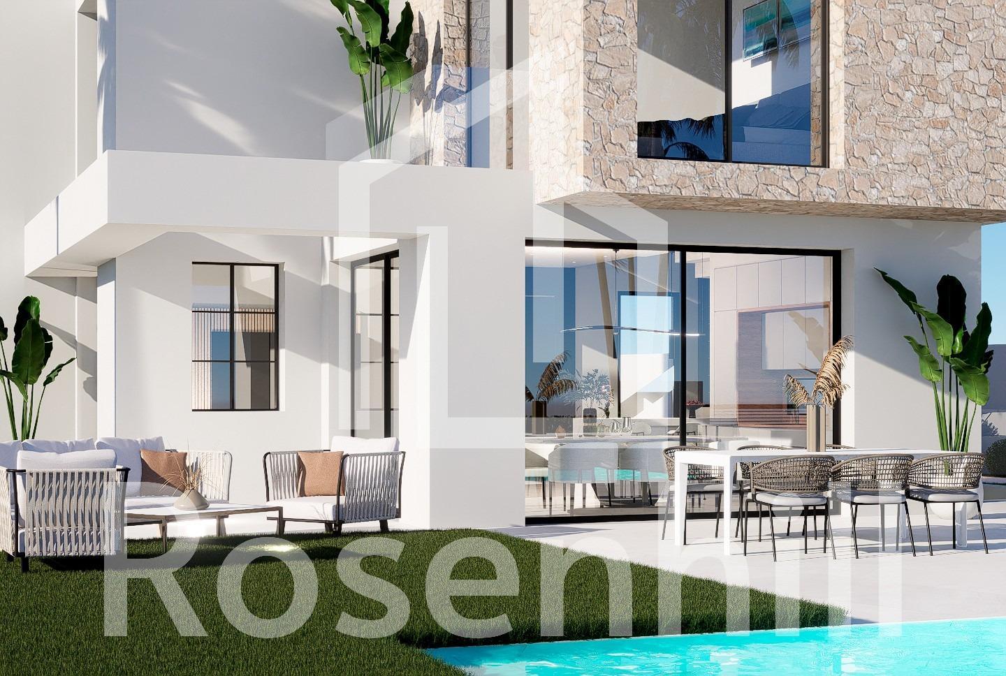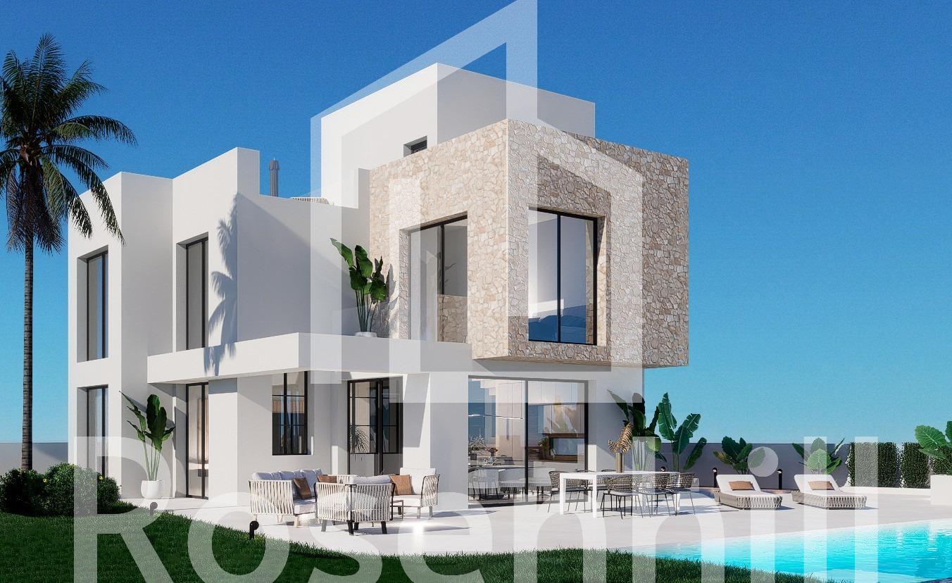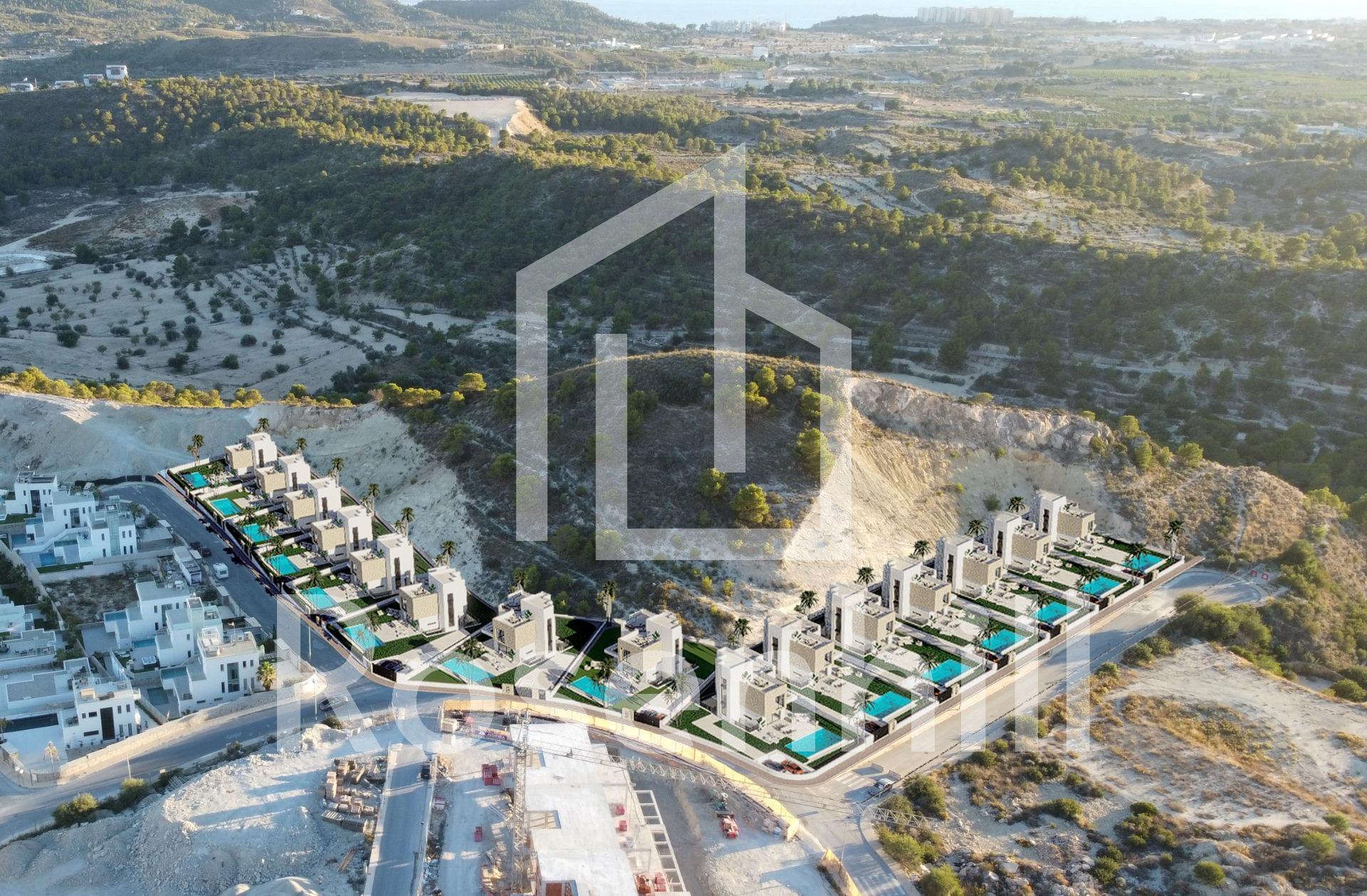 NEW BUILD VILLAS IN FINESTRAT New Build villas located in Balcon de Finestrat. New Build deverlopment of 15 totally independent luxury villas in a unique setting close to the best beaches of the Mediterranean and all services. Villas build over 2 floors and has 3 bedrooms, 3 bathrooms, open plan kitchen with lounge, build-in wardrobes, private solarium, garden with the pool and parking space for 2 cars. An optional basement and lift at an extra cost. Villas located close to 2 golf courses, theme parks, a large shopping centre and a few minutes from the beaches of Benidorm. Finestrat located in the Marina Baixa region of the Costa Blanca, close to neighbouring Benidorm and about 40 kilometres from the city of Alicante and the international airport. Benidorm is just a five-minute drive from the properties and offers all the services you would need including shops, bars, restaurants, supermarkets, banks, pharmacies and several private international schools. Close to the beaches of Levante, Poniente and Cala de Finestrat, with more than 6km in length that are among the best in Europe awarded by the European Union with Blue Flags. All leisure services such as the theme parks of Aqua Natura, Terra Mítica, Terra Natura, Aqualandia and Mundomar, Sierra Cortina and Villaitana Golf courses, hiking and climbing in Puig Campana an incomparable natural setting or enjoy of nautical sports.
