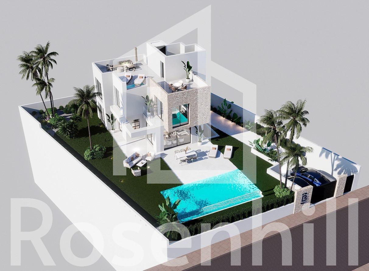 NEW BUILD VILLAS IN FINESTRAT New Build villas located in Balcon de Finestrat. New Build deverlopment of 15 totally independent luxury villas in a unique setting close to the best beaches of the Mediterranean and all services. Villas build over 2 floors and has 3 bedrooms, 3 bathrooms, open plan kitchen with lounge, build-in wardrobes, private solarium, garden with the pool and parking space for 2 cars. An optional basement and lift at an extra cost. Villas located close to 2 golf courses, theme parks, a large shopping centre and a few minutes from the beaches of Benidorm. Finestrat located in the Marina Baixa region of the Costa Blanca, close to neighbouring Benidorm and about 40 kilometres from the city of Alicante and the international airport. Benidorm is just a five-minute drive from the properties and offers all the services you would need including shops, bars, restaurants, supermarkets, banks, pharmacies and several private international schools. Close to the beaches of Levante, Poniente and Cala de Finestrat, with more than 6km in length that are among the best in Europe awarded by the European Union with Blue Flags. All leisure services such as the theme parks of Aqua Natura, Terra Mítica, Terra Natura, Aqualandia and Mundomar, Sierra Cortina and Villaitana Golf courses, hiking and climbing in Puig Campana an incomparable natural setting or enjoy of nautical sports.