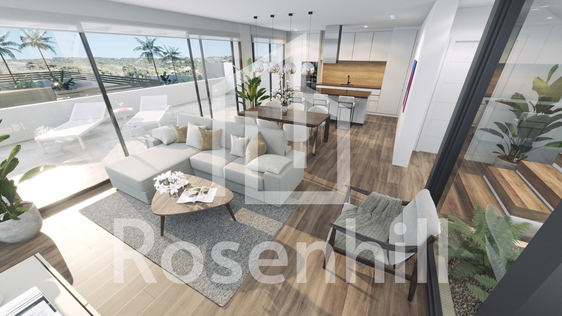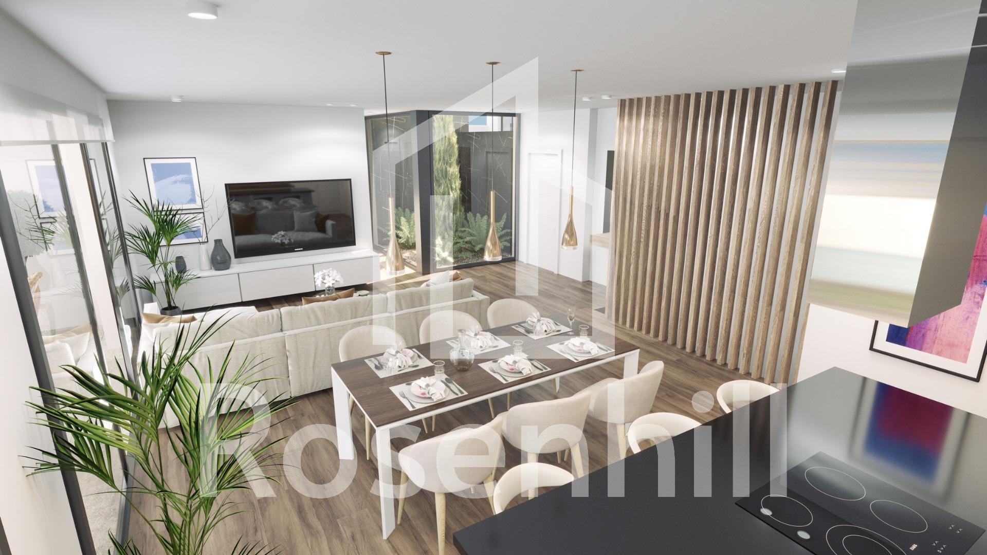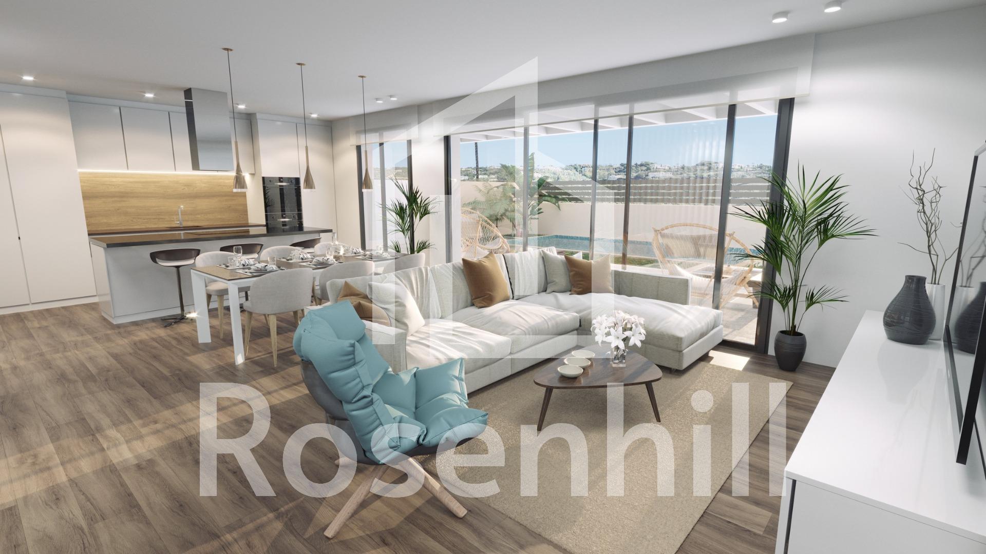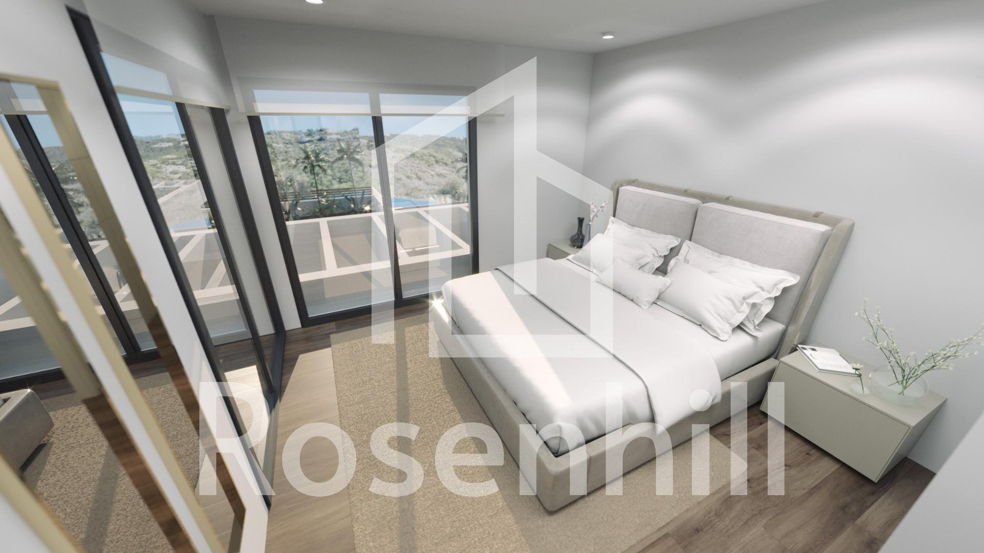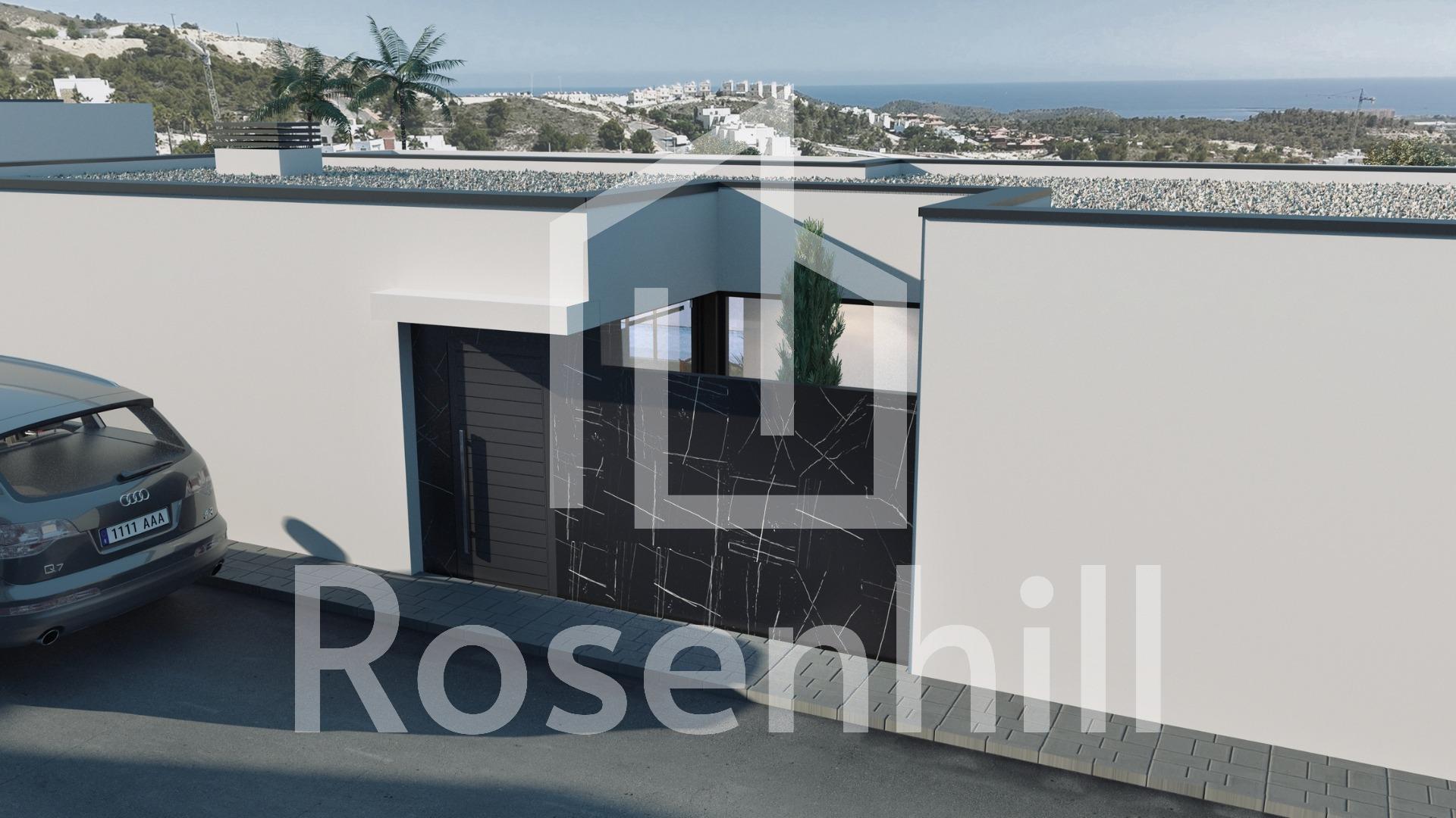 NEW BUILD VILLAS IN FINESTRAT New Build project of 10 modern design villas, in a natural setting with views of the sea and the mountains, near the Puig Campana golf course, and a short distance from the towns of Finestrat and Benidorm. The project will be divided into two construction phases, which in turn include two types of homes, with 1 or 2 floors, 3 double bedrooms, 2 or 3 complete bathrooms, living-dining room with integrated kitchen, laundry room, large terrace and garden, private pool, outdoor parking, 1 or 2 multipurpose basements and in some models closed underground garage. An options for a solarium at an extra cost. Villas built with the best qualities and latest advances in construction, among others: - Glass railings that do not break the continuity of the views. - First quality porcelain stoneware flooring. - Armoured entrance door. - Aluminium exterior carpentry with thermal bridge break and double insulating glass with low emissivity with air chamber and safety in areas at risk of breakage. - Smooth interior carpentry, made of white lacquered wood with stainless steel handles and fittings. - Fully equipped sliding wardrobes and dressing rooms. - Production of domestic hot water through a heat pump system with a 100L accumulator tank, with the support of solar panels on the roof. - High-grade electrical installation 9.2kw. - Installation of air conditioning through ducts with machines included. - Minimalist design kitchens, fully equipped with island, furniture and appliances included. - Private pool with lighting and beach area with pavement or artificial grass. - Fully customisable multipurpose basement, depending on the model with a garage area for a vehicle and pre-installation for an electric vehicle. Villas is located in a privileged environment on the Costa Blanca, in an elevated area at the foot of the mountains, surrounded by nature and other similar urbanisations, with excellent views of the sea and its surroundings. Very well connected by road with the nearby town of Finestrat, 10 minutes by car from shopping censers, the A7 motorway, the beaches and the nearby towns of Benidorm and Villajoyosa, and 30 minutes from the city of Alicante and its international airport.