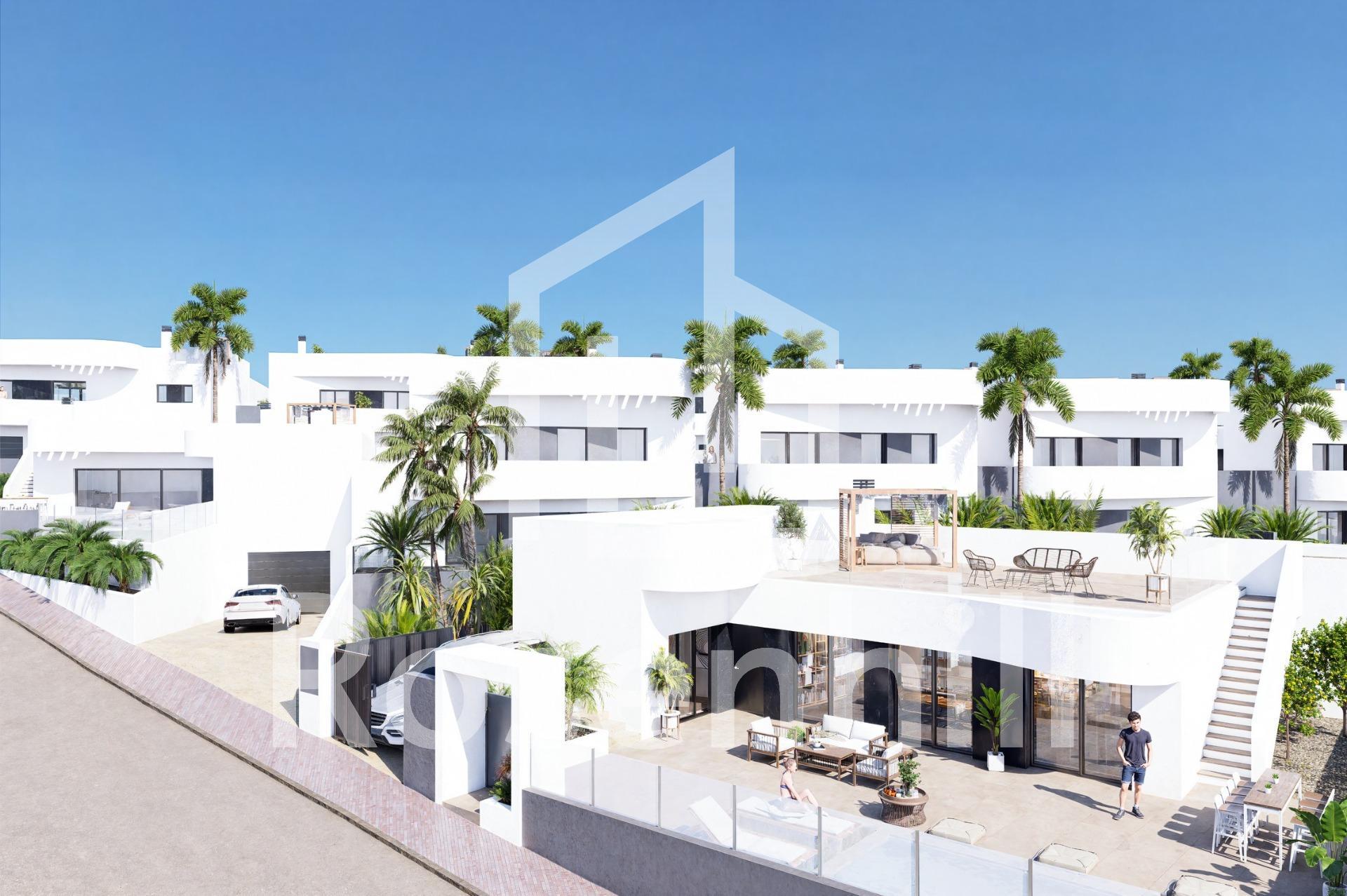 New Build Villas in La Finca Golf Resort Algorfa Exclusive New Development in a Prestigious Golf Setting This new residential development of 53 modern villas is located in the renowned La Finca Golf Resort in Algorfa, one of the most sought after areas of the Costa Blanca South. Surrounded by lush green landscapes, citrus groves and the rolling fairways of the golf course, this location offers tranquillity, privacy and a high quality Mediterranean lifestyle, while remaining close to essential services and the coast. Choice of Villa Models and Layouts The project offers a wide selection of detached and semi detached villas in three different sizes of approximately 98 m2, 111 m2 or 135 m2. Homes are available on one or two levels and all feature three bedrooms and two bathrooms. The larger models also include a guest toilet. Villas on one level enjoy a spacious private rooftop solarium, while two level homes feature a large open terrace on the upper floor. Some units include a basement and others offer this option at an additional cost. All villas come with a private swimming pool and parking space within the plot. Ibiza Style Design and Outdoor Living The villas stand out for their elegant Ibiza style design with soft curved lines and bright white finishes that blend perfectly with the natural surroundings. Spacious outdoor areas are designed to enjoy the mild climate all year round, offering ideal spaces for relaxing, entertaining and making the most of outdoor living in a peaceful golf environment. High Quality Specifications and Comfort All homes are built to a high standard and include a reinforced security entrance door, fully fitted kitchens, pre installation for ducted air conditioning and an aerothermal system for domestic hot water. These features ensure comfort, energy efficiency and modern living, whether as a permanent residence or a holiday home. La Finca Golf Resort and Algorfa Lifestyle La Finca Golf Resort is known for its championship golf course, luxury hotel, spa facilities, restaurants and sports areas, all within a secure and well maintained environment. Algorfa is a charming Spanish town offering local shops, traditional restaurants and a relaxed atmosphere, while nearby towns provide a wider range of services and amenities. Key Distances and Connections La Finca Golf Course is located within the resort. Guardamar del Segura beaches are approximately 14 km away. Shopping centres in Torrevieja and Orihuela Costa are around 15 km. Almoradi, Benijofar and Ciudad Quesada are between 5 and 10 km. Alicante International Airport is approximately 35 km away. A Smart Investment on the Costa Blanca With over 300 days of sunshine per year, excellent road connections and proximity to golf, beaches and shopping areas, these villas are ideal for living, holidays or investment. Contact Us Today Secure your new villa in La Finca Golf Resort today. Contact us now for more information or to arrange a private viewing.