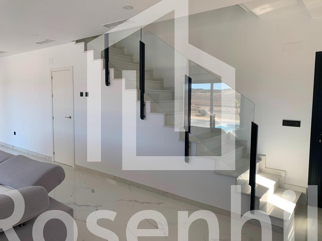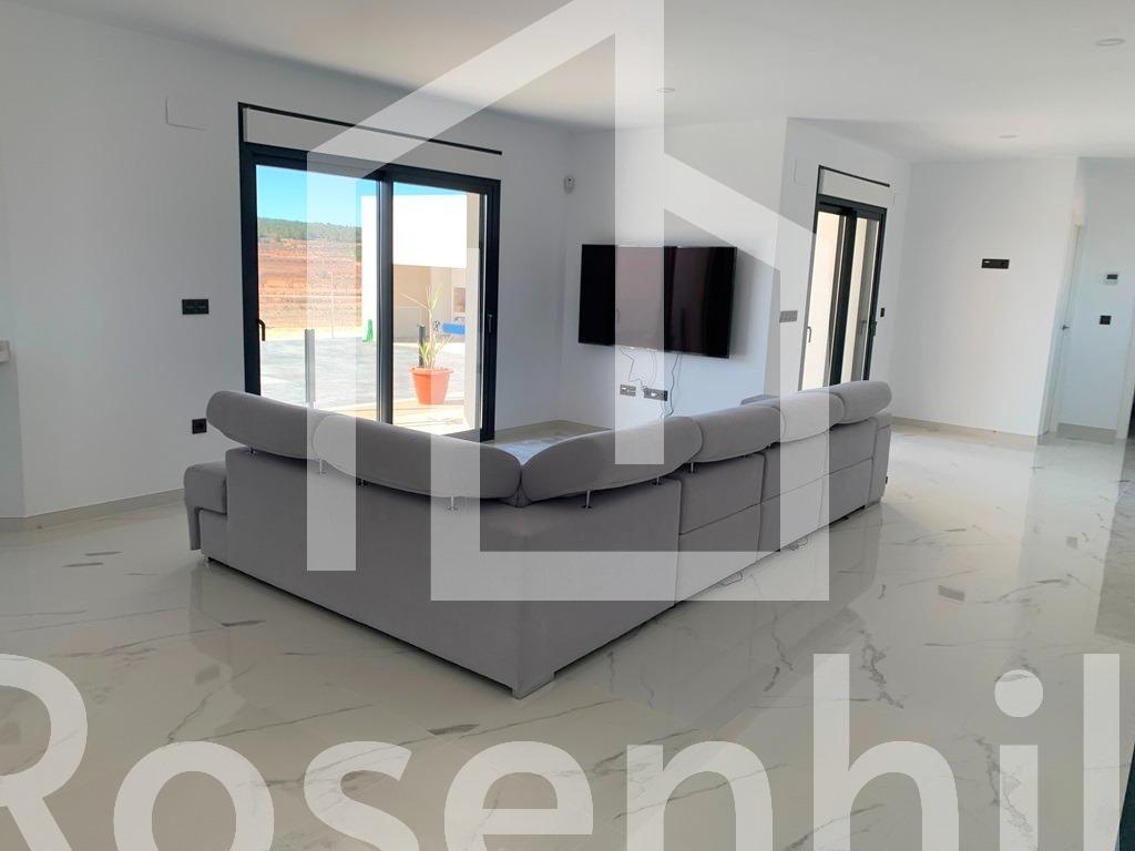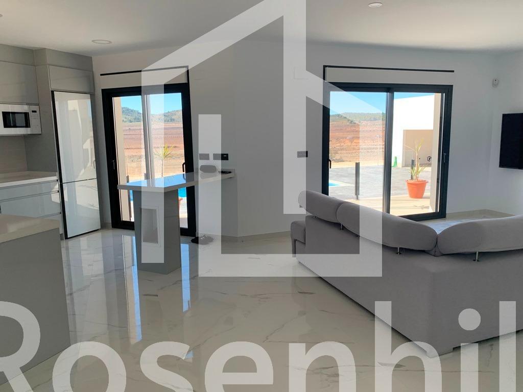 NEW BUILD VILLAS IN PINOSO You can choose Villas with traditional Spanish touches or super modern finishing, bright and clean. Different legal building plots available (rustic with minimum 10.000 m2), some walking distance to town, some totally private and our most popular ones are within 5-10 mins drive to a town. We have a plot for every taste, all with amazing views and all have mains water + electric included in the price and high speed internet available. From the biggest and best builder in the area and use top quality materials for a perfect finish. All houses include 2m stamped concrete terrace around the pool (colour and pattern to choose), 1m around the house, gated entrance, 3.000 m2 fencing, pre-installed ducted aircon, standard kitchen, security door, german tilt and turn windows (or sliding if prefered), built-in fireplace and chimney, pre-installation for tv and internet, gravel driveway plus a few meters around the house, septic tank. Bathrooms include a shower column, shower tray or bath, sink units (various colours to choose from) with sinks, taps and mirrors, plus a big selection of wall tiles. Wide selection of ceramic floor tiles, different colours, wood effect, etc. Kitchens include cabinets with standard doors and handles, as per plans provided, stainless steel sink and tap, pre-installation for oven, dishwasher, extractor. Various granite worktops to choose from included in the budget, other stone worktops available as extras. White goods not included. Marble staircase (cream, white, or grey) and railings included, plus railings for the front porch. Big fixed glass window on the staircase for extra light. Choice of tiles and steps design for swimming pool. Choice of the granite for the houses’ exterior steps and window sils. You can customise the house to suit, most internal changes are free of charge, the houses can be extended and we can even build your own design. Upgrade to bigger pool, single or double garage, guest house, etc. at an extra cost. The beautiful and thriving town of Pinoso is approximately 45 minutes inland from Alicante and the white beaches of Costa Blanca and close to the Murcia, Alicante border It has a population of just under 8,000. Pinoso, also known as El Pinos is named after the pine trees that cover the areas mountain ranges. Pinoso provides a Spanish rural lifestyle, no traffic lights, hardly any traffic, practically the only jams are caused by the tractors taking the grapes to the Bodega. The fields are planted with vines, almonds and olives. In February the fields are filled with pink almond blossom. Pinoso has many bars, restaurants and shops, a new 24 hour medical centre, dentists, two primary schools and 1 secondary school, a theatre. There’s an excellent Sports Centre with outdoor swimming pools, tennis courts, football pitches and gymnasium, library and many other facilities including a beautiful picnic area among the pines, complete with barbecues, seating areas and running water.