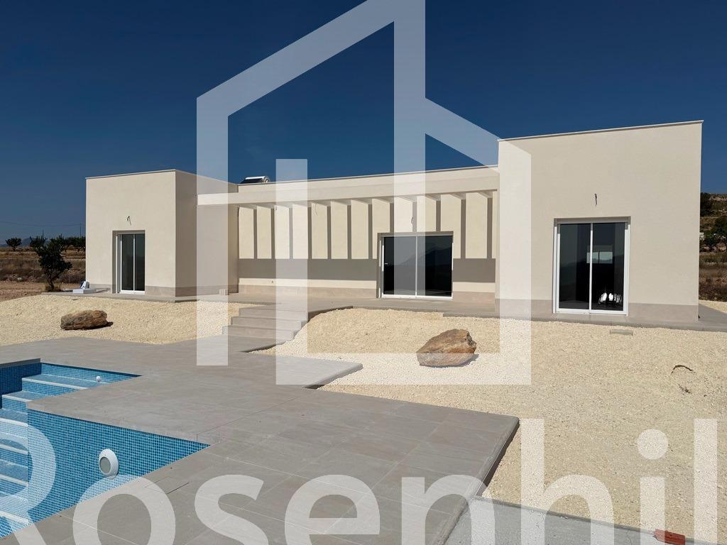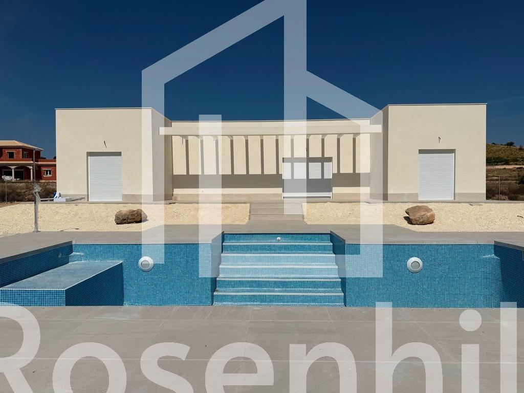 New build villas in Pinoso on rural plots You can choose villas with traditional Spanish touches or super modern, bright and clean finishes. There are several sizes to choose from, with 3 to 6 bedrooms and 1 or 2 floors. Different legal plots available to choose from (rustic with a minimum of 10,000 m2), some within walking distance of the town, some completely private and the most popular ones are 5-10 minutes’ drive from a town. We have a plot to suit every taste, all with stunning views and all with mains water + electricity included in the price and high-speed internet available. The published price includes €30,000 for the plot. If the chosen plot costs more, the difference will be paid. From the largest and best builder in the area, we use top quality materials for a perfect finish. All houses include a 2m stamped concrete terrace around the pool (colour and pattern of your choice), 1m around the house, enclosed entrance, 3,000 m² fencing, pre-installation of ducted air conditioning, standard kitchen, security door, German tilt-and-turn windows (or sliding windows if preferred), built-in fireplace (traditional finish), pre-installation of television and internet, gravel path around the house, septic tank. The bathrooms include shower column, shower tray or bathtub, washbasin units (various colours to choose from) with sinks, taps and mirrors, as well as a large selection of wall tiles. Wide selection of ceramic floor tiles, in different colours, wood effect, etc. Kitchens include cupboards with standard doors and handles, stainless steel sink and tap, pre-installation for oven, dishwasher and extractor fan. Choice of several granite worktops. Appliances not included. Marble staircase (cream, white or grey) and railings included, plus railings for the front porch. You can customise the house to your liking, most internal changes are free of charge, and you can choose finishes for tiles, kitchen worktops, marble for stairs or shelves, etc. The houses can be extended and we can even build your own design. You can add various extras such as a larger swimming pool, single or double garage, guest house, etc., at an additional cost. The town of Pinoso is approximately 45 minutes inland from Alicante and the white sandy beaches of the Costa Blanca and close to the border of Murcia, Alicante. It has a population of just under 8,000. Pinoso, also known as El Pinos, owes its name to the pine trees that cover the mountains in the area. Pinoso offers a rural Spanish lifestyle, with no traffic lights and almost no traffic. Practically the only traffic jams are caused by tractors taking grapes to the winery. The fields are planted with vines, almond trees and olive trees. In February, the fields are filled with pink almond blossoms. Pinoso has many bars, restaurants and shops, a new 24-hour medical centre, dentists, two primary schools and one secondary school, and a theatre. There is an excellent sports centre with outdoor swimming pools, tennis courts, football pitches and a gym, a library and many other facilities, including a beautiful picnic area among the pine trees, with barbecues, seating areas and running water.