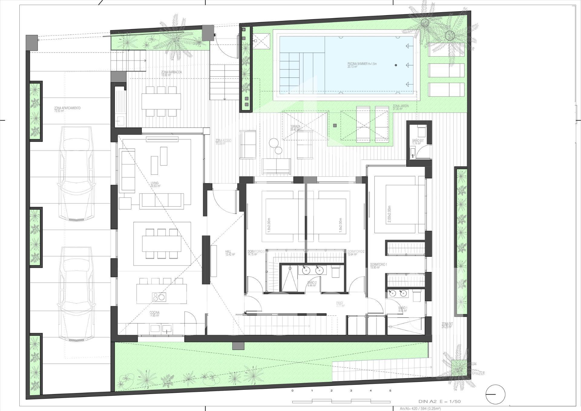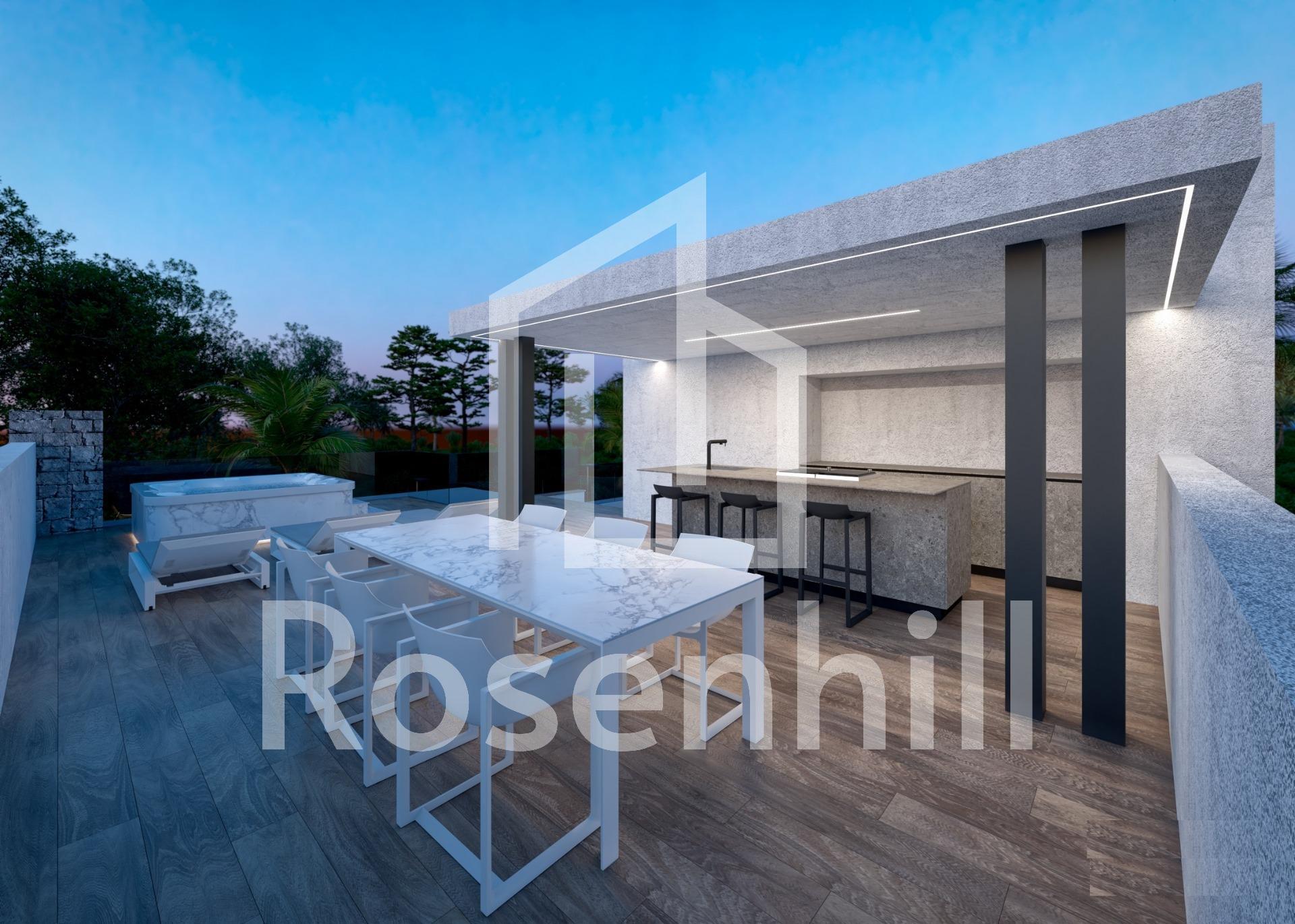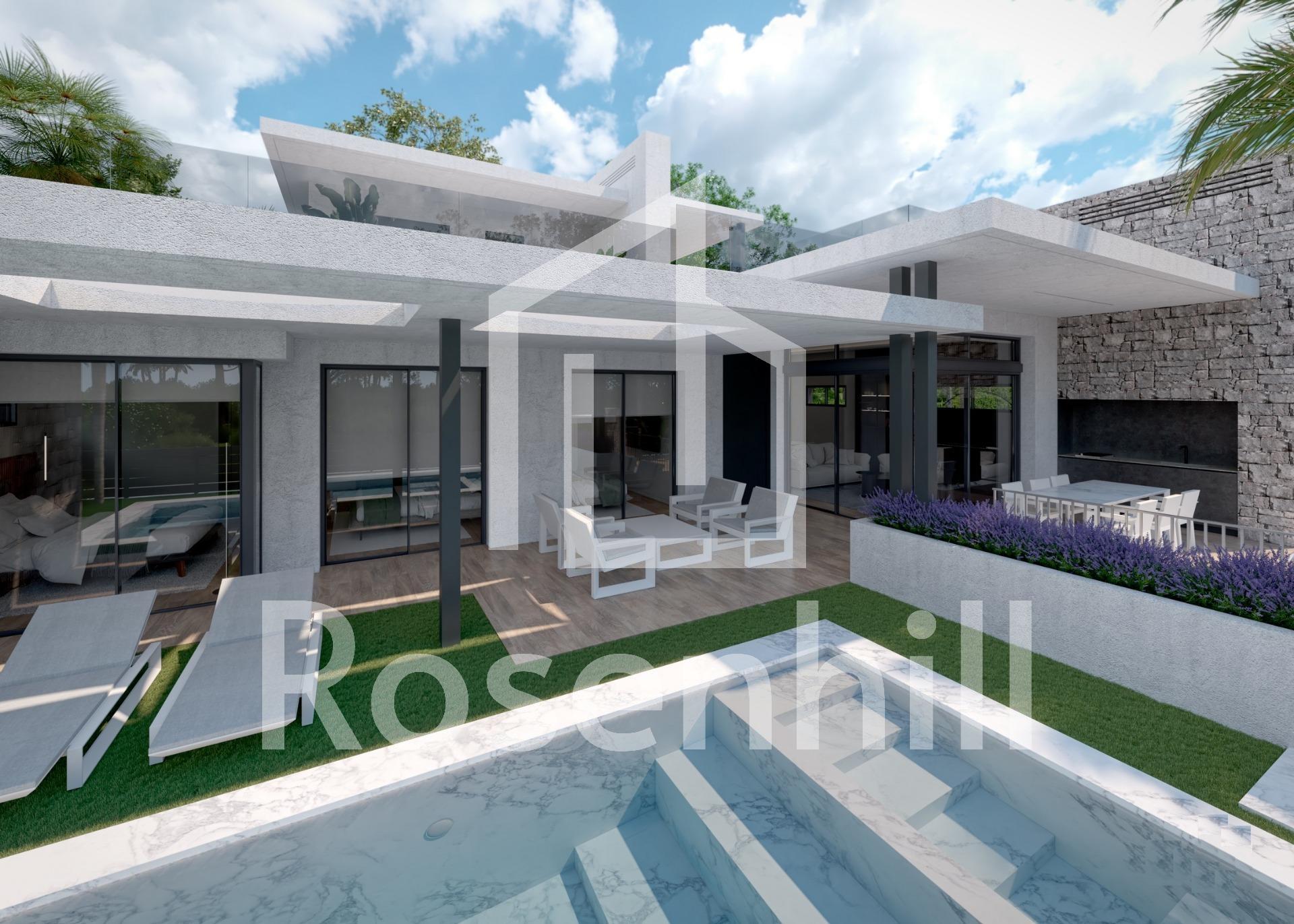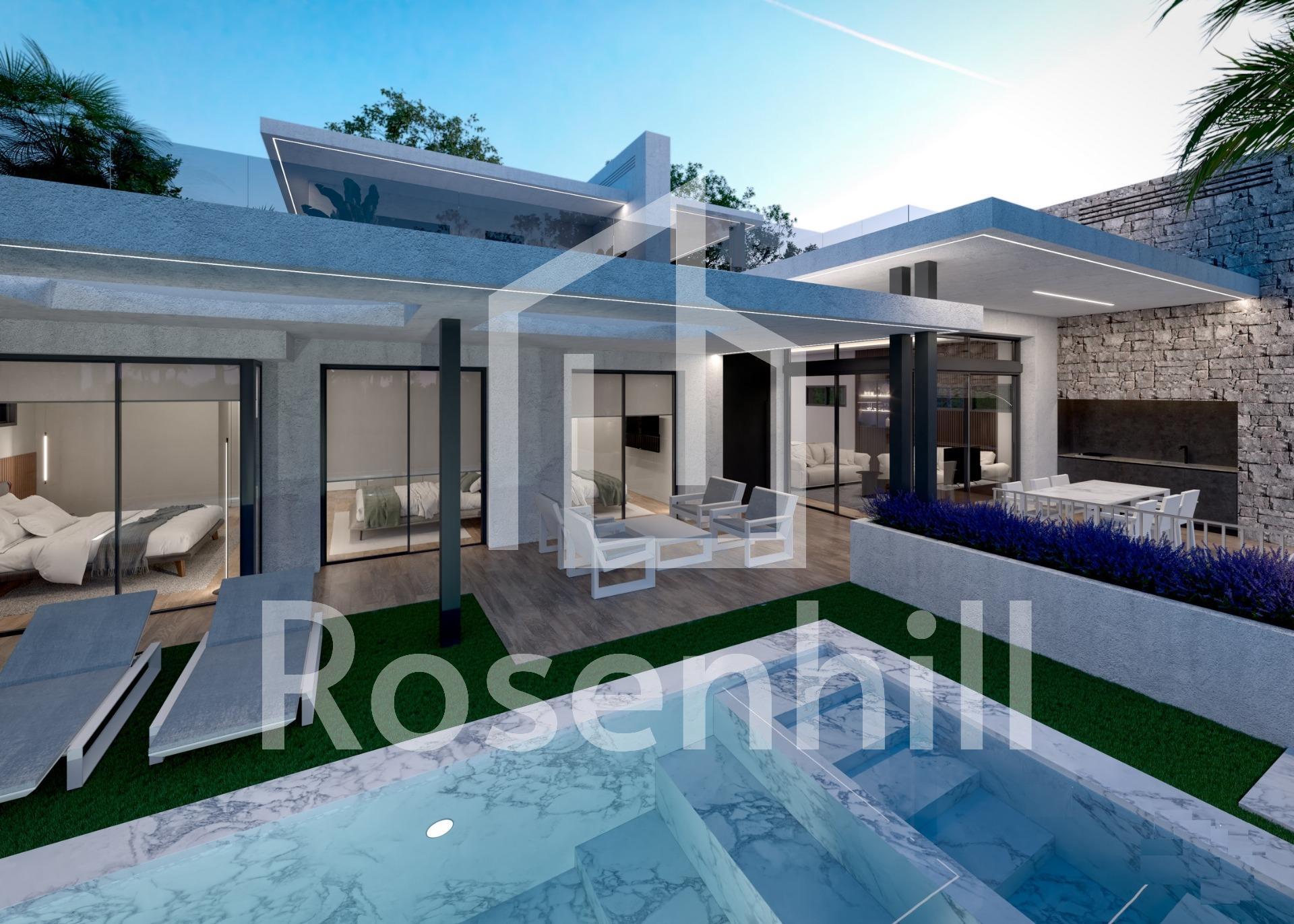 NEW BUILD VILLAS IN PRIVATE GATED RESORT IN PROVINCE OF MURCIA New Build villas in private gated resort in the Murcia region, surrounded by excellent golf courses and just 10 minutes from the sandy beaches of the Mar Menor Sea. 15 New Build independent villas has 3 bedrooms, 3 bathrooms, guest toilet, large living room – kitchen with a wonderful double height, terrace with pool, private solarium with pre-installation for jacuzzi, basement. Modern villas stands out for its high quality finishes and for its well used spaces, an English patios to a higher level giving the option to create large spaces that replicate the comfort in the basement which with a toilet, utility room and laundry, the floors are finished, the walls painted and has pre -installation of A / C. Located in a private gated resort, with a main access entrance and 24 hours security. The resort is designed around an impressive 126.000 m2 green area. It comprises walking and cycling paths, sport facilities, paddle and tennis courts, a mini-golf course, gardens, dog parks, leisure areas, clubhouse…. Also in the central area is the jewel of the resort, a crystal-clear artificial lake of almost 17.000m2 of water surface, surrounded by white sandy beaches and palm trees, bringing a piece of the Caribbean to the Murcia Region. There are 2 islands in the lake, one of them has its own bar, there are also “beach Chiringuitos” spread around the lake. The resort is strategically located less than 4 km from the beach and the town of Los Alcázares, where you can practice various water sports, surrounded by several golf courses and the city of Cartagena less than 15 minutes by car and 22 km from Murcia airport, therefore having a wide cultural, gastronomic and sports offer within reach.