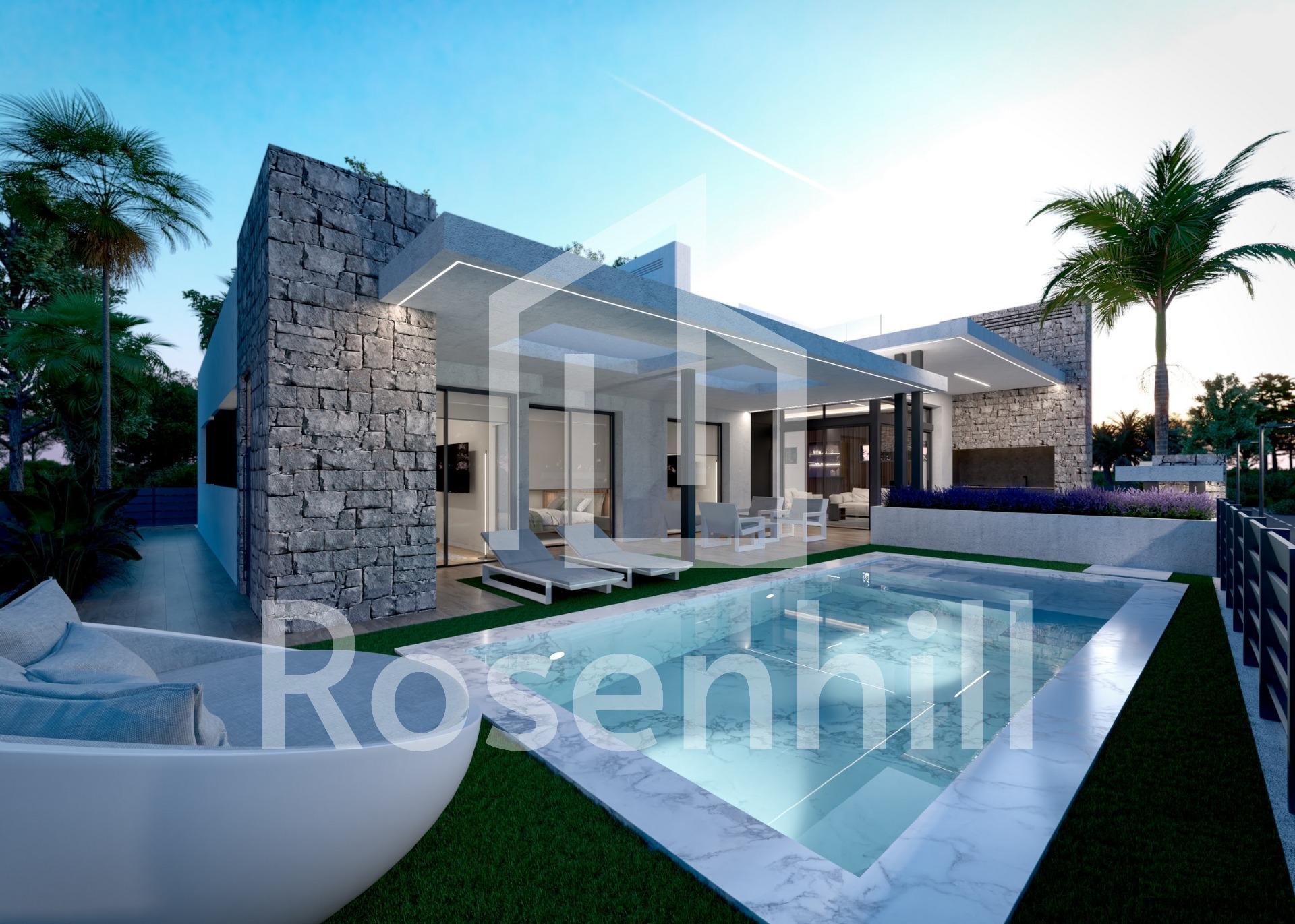 NEW BUILD VILLAS IN PRIVATE GATED RESORT IN PROVINCE OF MURCIA New Build villas in private gated resort in the Murcia region, surrounded by excellent golf courses and just 10 minutes from the sandy beaches of the Mar Menor Sea. 15 New Build independent villas has 3 bedrooms, 3 bathrooms, guest toilet, large living room – kitchen with a wonderful double height, terrace with pool, private solarium with pre-installation for jacuzzi, basement. Modern villas stands out for its high quality finishes and for its well used spaces, an English patios to a higher level giving the option to create large spaces that replicate the comfort in the basement which with a toilet, utility room and laundry, the floors are finished, the walls painted and has pre -installation of A / C. Located in a private gated resort, with a main access entrance and 24 hours security. The resort is designed around an impressive 126.000 m2 green area. It comprises walking and cycling paths, sport facilities, paddle and tennis courts, a mini-golf course, gardens, dog parks, leisure areas, clubhouse…. Also in the central area is the jewel of the resort, a crystal-clear artificial lake of almost 17.000m2 of water surface, surrounded by white sandy beaches and palm trees, bringing a piece of the Caribbean to the Murcia Region. There are 2 islands in the lake, one of them has its own bar, there are also “beach Chiringuitos” spread around the lake. The resort is strategically located less than 4 km from the beach and the town of Los Alcázares, where you can practice various water sports, surrounded by several golf courses and the city of Cartagena less than 15 minutes by car and 22 km from Murcia airport, therefore having a wide cultural, gastronomic and sports offer within reach.
