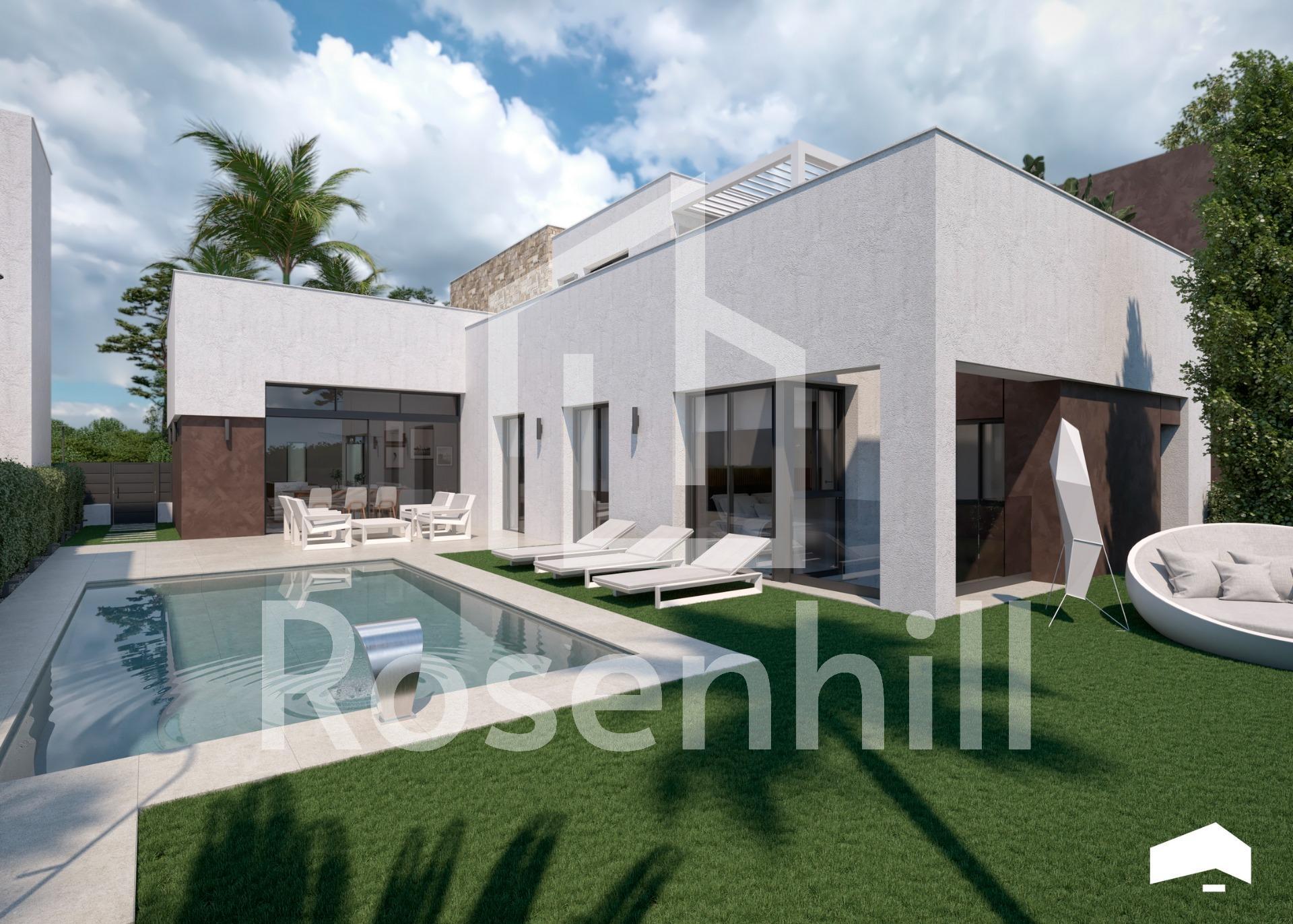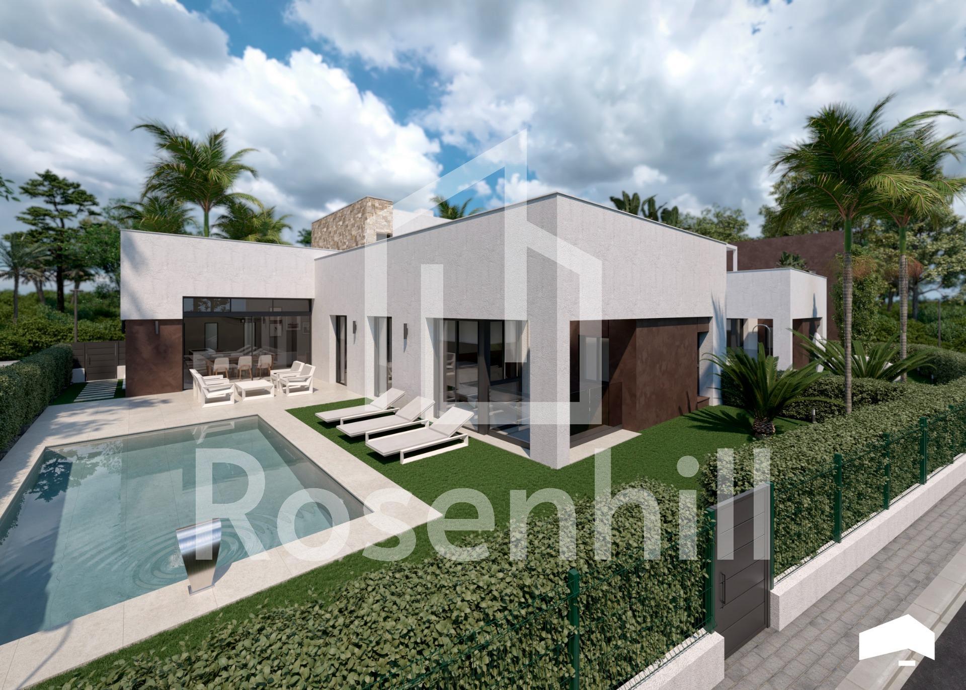 NEW BUILD VILLAS IN PRIVATE GATED RESORT IN PROVINCE OF MURCIA New Build villas in private gated resort in the Murcia region, surrounded by excellent golf courses and just 10 minutes from the sandy beaches of the Mar Menor Sea. Villas build over of 2 floors and has 3 bedrooms, 2 bathrooms and a guest toilet and are designed with a contemporary style and open concept, consisting of a fully equipped kitchen and living-dining room, fitted wardrobes, private garden with the pool and off road parking space, private solarium. Large villa of 146m² plus a very useful 120m² basement finished with smooth walls, water and electrical points. This offers the perfect opportunity to use as additional accommodation, office, gym, cinema room, children’s playroom…. Located in a private gated resort, with a main access entrance and 24 hours security. The resort is designed around an impressive 126.000 m2 green area. It comprises walking and cycling paths, sport facilities, paddle and tennis courts, a mini-golf course, gardens, dog parks, leisure areas, clubhouse…. Also in the central area is the jewel of the resort, a crystal-clear artificial lake of almost 17.000m2 of water surface, surrounded by white sandy beaches and palm trees, bringing a piece of the Caribbean to the Murcia Region. There are 2 islands in the lake, one of them has its own bar, there are also “beach Chiringuitos” spread around the lake. The resort is strategically located less than 4 km from the beach and the town of Los Alcázares, where you can practice various water sports, surrounded by several golf courses and the city of Cartagena less than 15 minutes by car and 22 km from Murcia airport, therefore having a wide cultural, gastronomic and sports offer within reach.