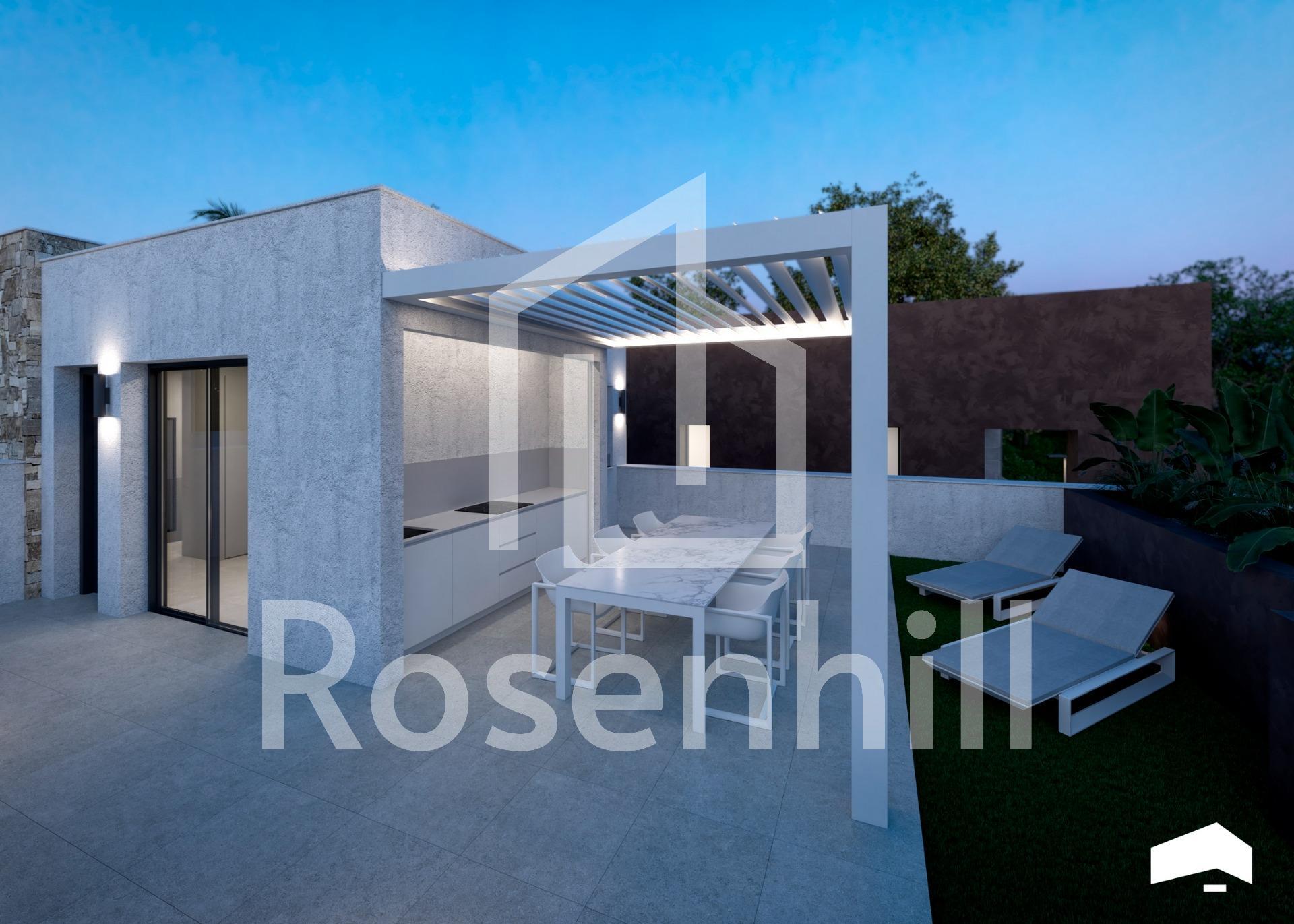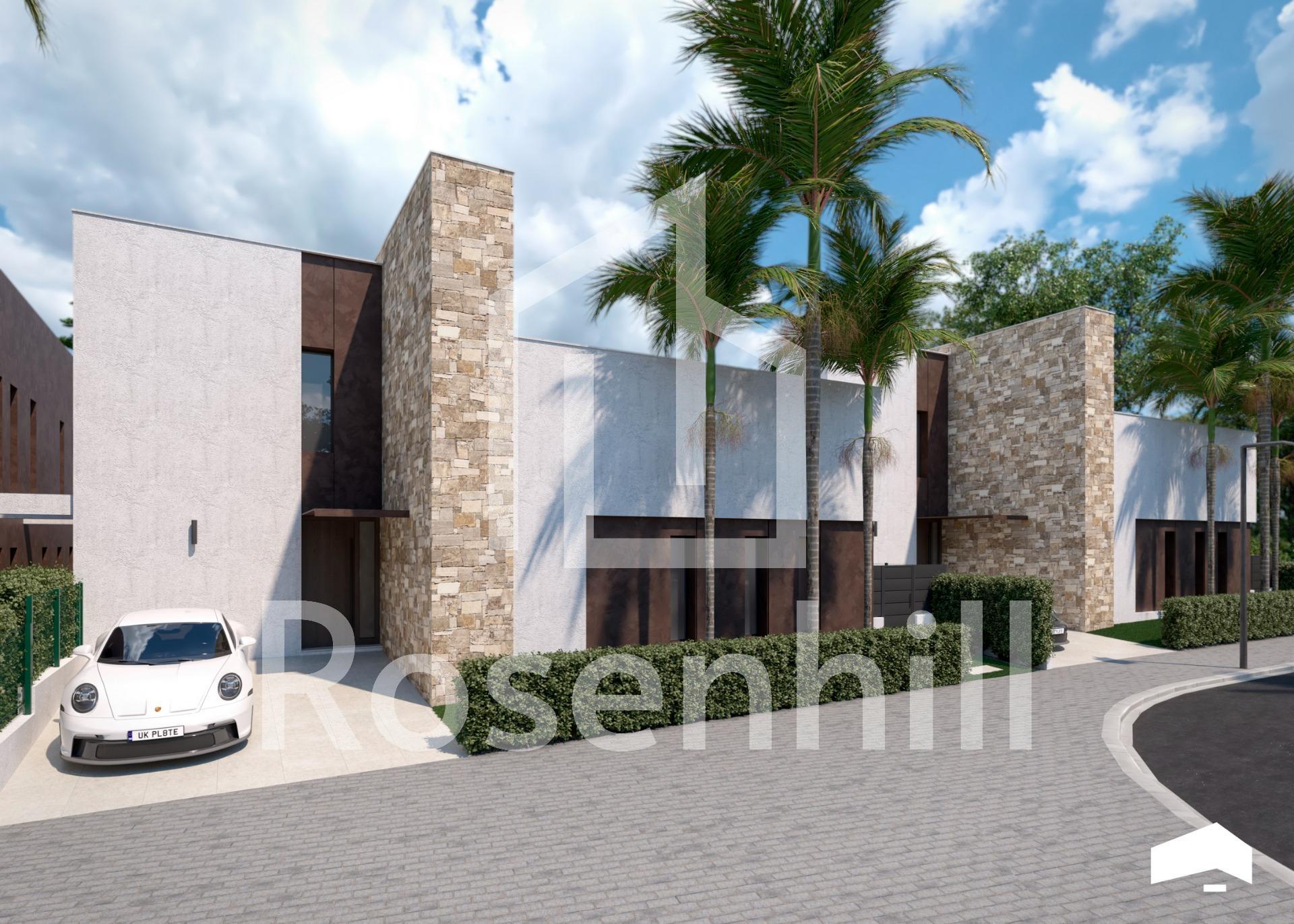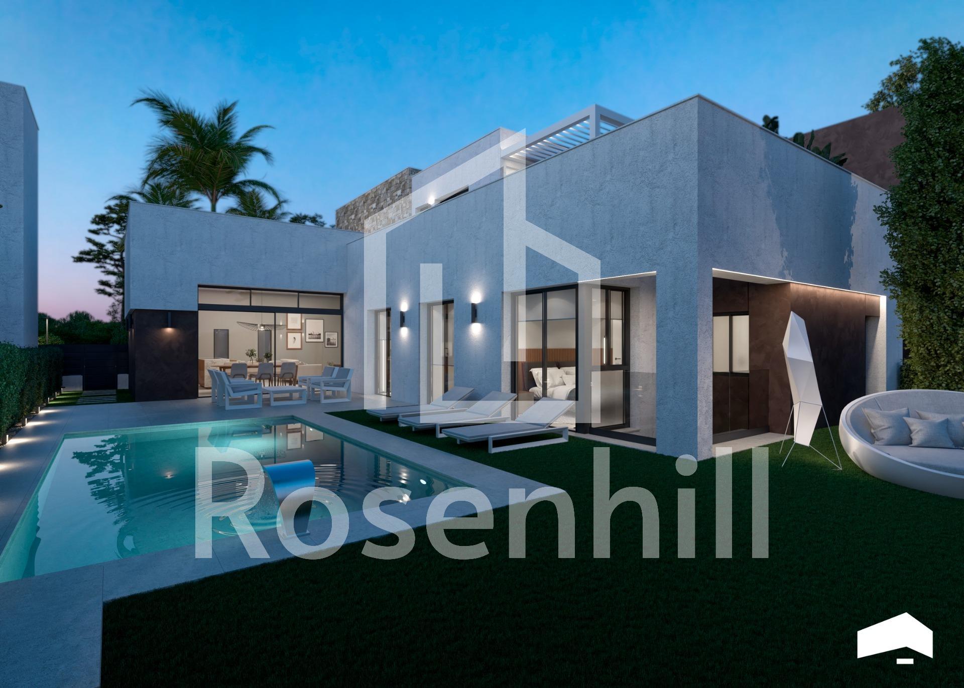 NEW BUILD VILLAS IN PRIVATE GATED RESORT IN PROVINCE OF MURCIA New Build villas in private gated resort in the Murcia region, surrounded by excellent golf courses and just 10 minutes from the sandy beaches of the Mar Menor Sea. Villas build over of 2 floors and has 3 bedrooms, 2 bathrooms and a guest toilet and are designed with a contemporary style and open concept, consisting of a fully equipped kitchen and living-dining room, fitted wardrobes, private garden with the pool and off road parking space, private solarium. Large villa of 146m² plus a very useful 120m² basement finished with smooth walls, water and electrical points. This offers the perfect opportunity to use as additional accommodation, office, gym, cinema room, children’s playroom…. Located in a private gated resort, with a main access entrance and 24 hours security. The resort is designed around an impressive 126.000 m2 green area. It comprises walking and cycling paths, sport facilities, paddle and tennis courts, a mini-golf course, gardens, dog parks, leisure areas, clubhouse…. Also in the central area is the jewel of the resort, a crystal-clear artificial lake of almost 17.000m2 of water surface, surrounded by white sandy beaches and palm trees, bringing a piece of the Caribbean to the Murcia Region. There are 2 islands in the lake, one of them has its own bar, there are also “beach Chiringuitos” spread around the lake. The resort is strategically located less than 4 km from the beach and the town of Los Alcázares, where you can practice various water sports, surrounded by several golf courses and the city of Cartagena less than 15 minutes by car and 22 km from Murcia airport, therefore having a wide cultural, gastronomic and sports offer within reach.