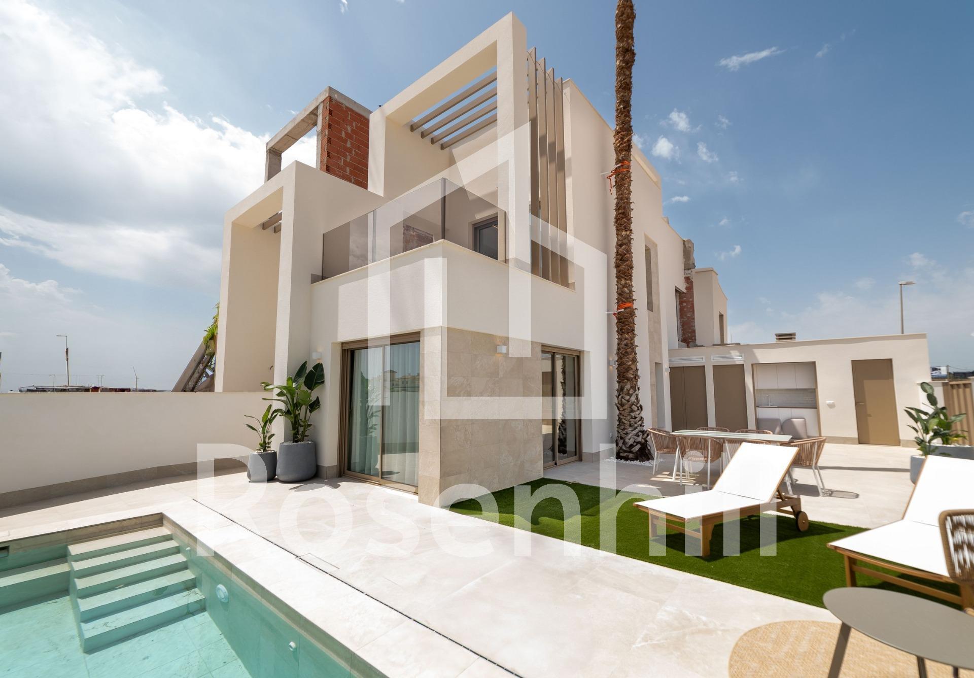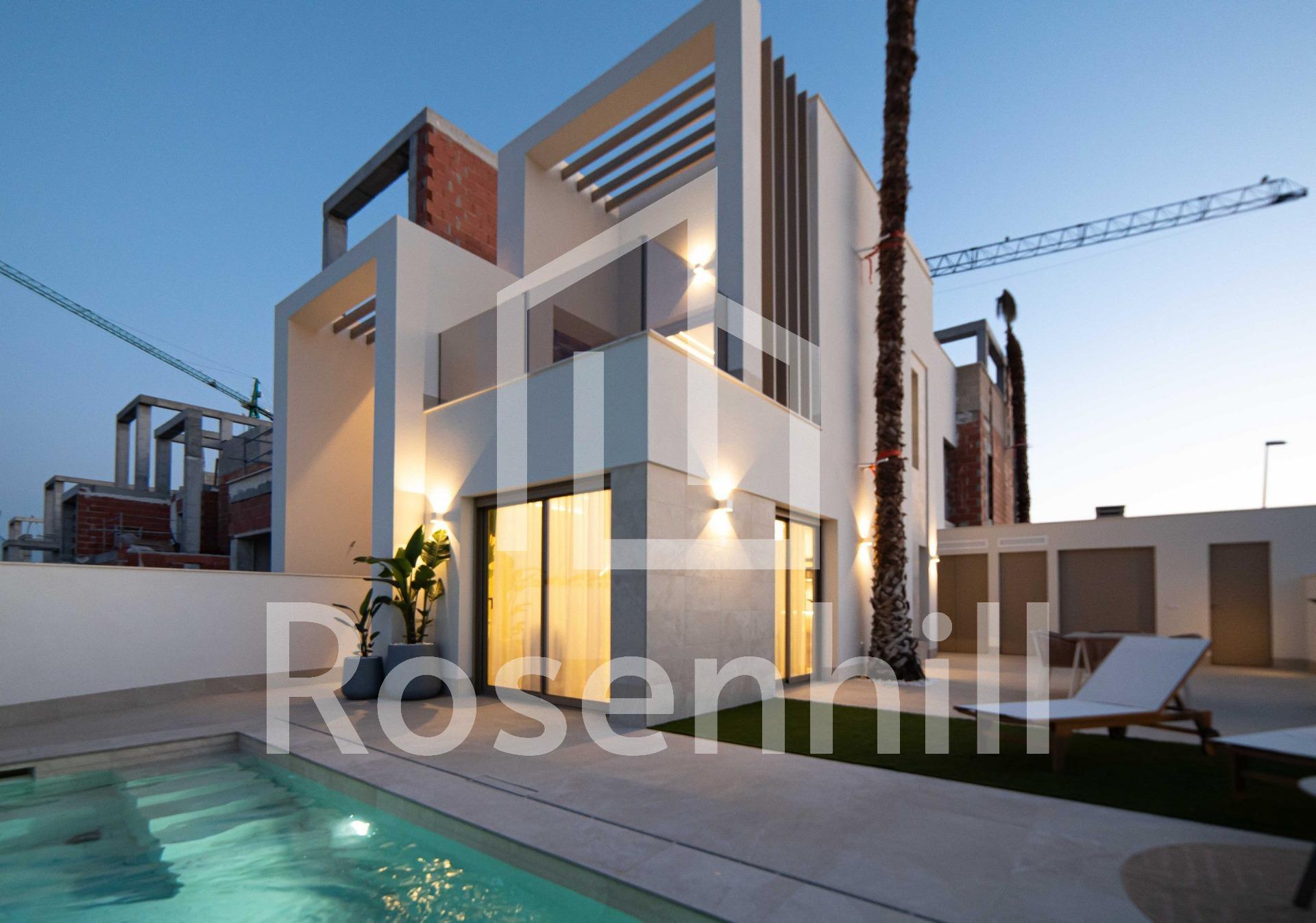 NEW BUILD VILLAS IN ROJALES New Project of modern quads and villas with private pools in Rojales. Modern properties has 3 bedrooms, 2 bathrooms, guest toilet, open plan kitchen with the lounge area, fitted wardrobes, solarium, private garden with the pool and off road parking space. Spaces designed to provide privacy and comfort, with large gardens that allow you to enjoy the outdoors in total tranquillity. Contemporary design with spacious bedrooms and bathrooms equipped with high quality finishes. Garden area ideal for family and friends gatherings with private swimming pool to enjoy the sunny days and outdoor toilet for added convenience when entertaining guests Large solarium and terrace: Spacious and well connected spaces to enjoy the Mediterranean climate and panoramic views. High standards in finishes and detailing: Top quality materials and a design with attention to detail, offering an elegant and welcoming atmosphere. Exclusivity and comfort in the Heart of the Mediterranean located in Rojales, Alicante, is a dream destination for those seeking quality of life, tranquillity and access to first class services. This exclusive residential area offers a perfect combination of modernity and nature, making it an ideal place to live. Strategically located in a well-established and high demand area, this location provides access to a complete urban infrastructure while retaining a natural and tranquil environment. Rojales located 15 minutes drive to some of the most beautiful beaches of Guardamar del Segura and Torrevieja. The proximity to these beaches offers a series of benefits and virtues that make living here a unique experience. In addition to daily enjoyment, living close to these beaches offers opportunities for an active and healthy lifestyle. Water sports such as surfing, paddle surfing and scuba diving are readily available, as are walks along the shore or hiking trails through the nearby dunes and natural parks. Main Airports: – Alicante-Elche Airport (ALC): About 38 km away, it can be reached in approximately 35 minutes by car. Murcia-Corvera Airport (RMU): Located about 65 km away, it can be reached in about 50 minutes by car. Road Network: – AP-7 motorway and the national road N-332 allow quick and convenient access to the main cities and tourist destinations in the region. Public Transport: – The area has regular bus services connecting Ciudad Quesada with nearby towns and main points of interest.