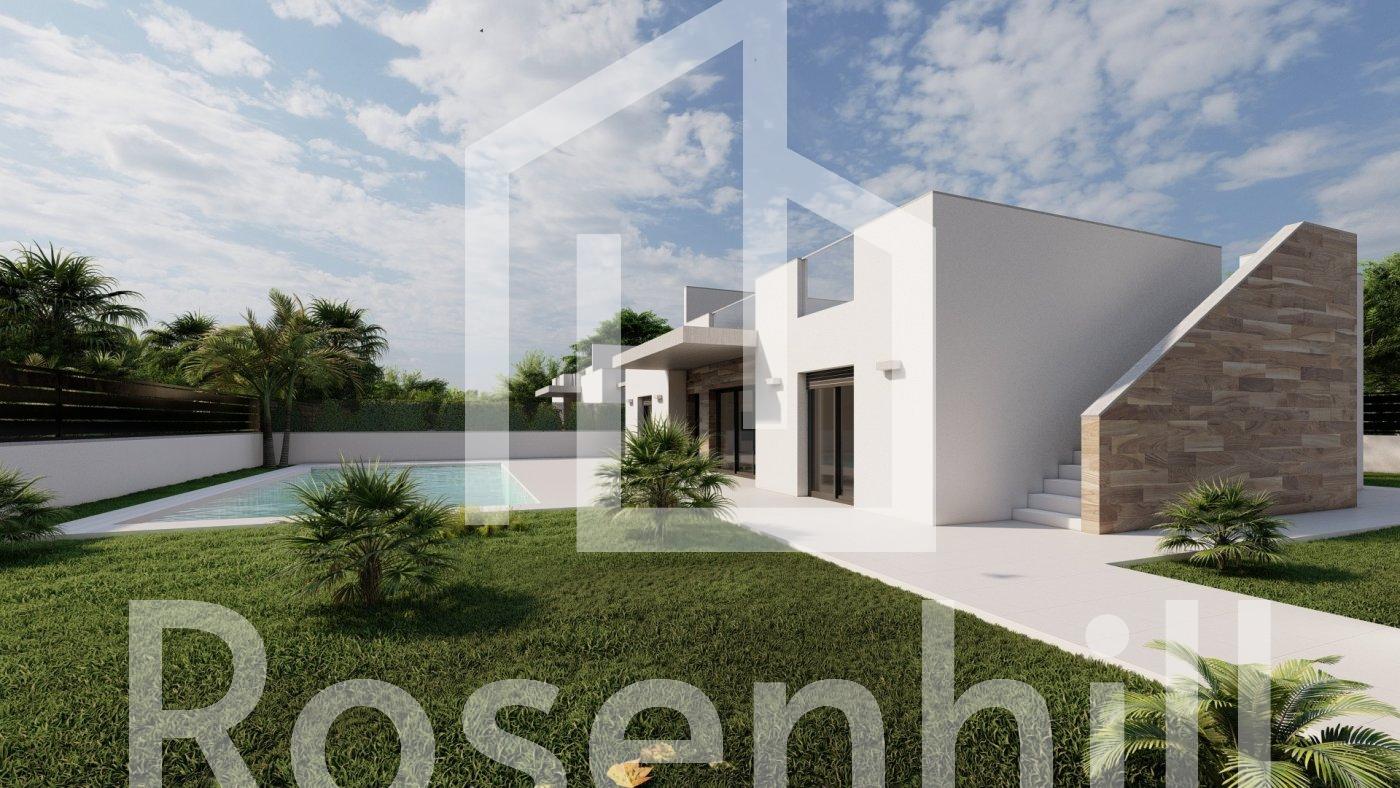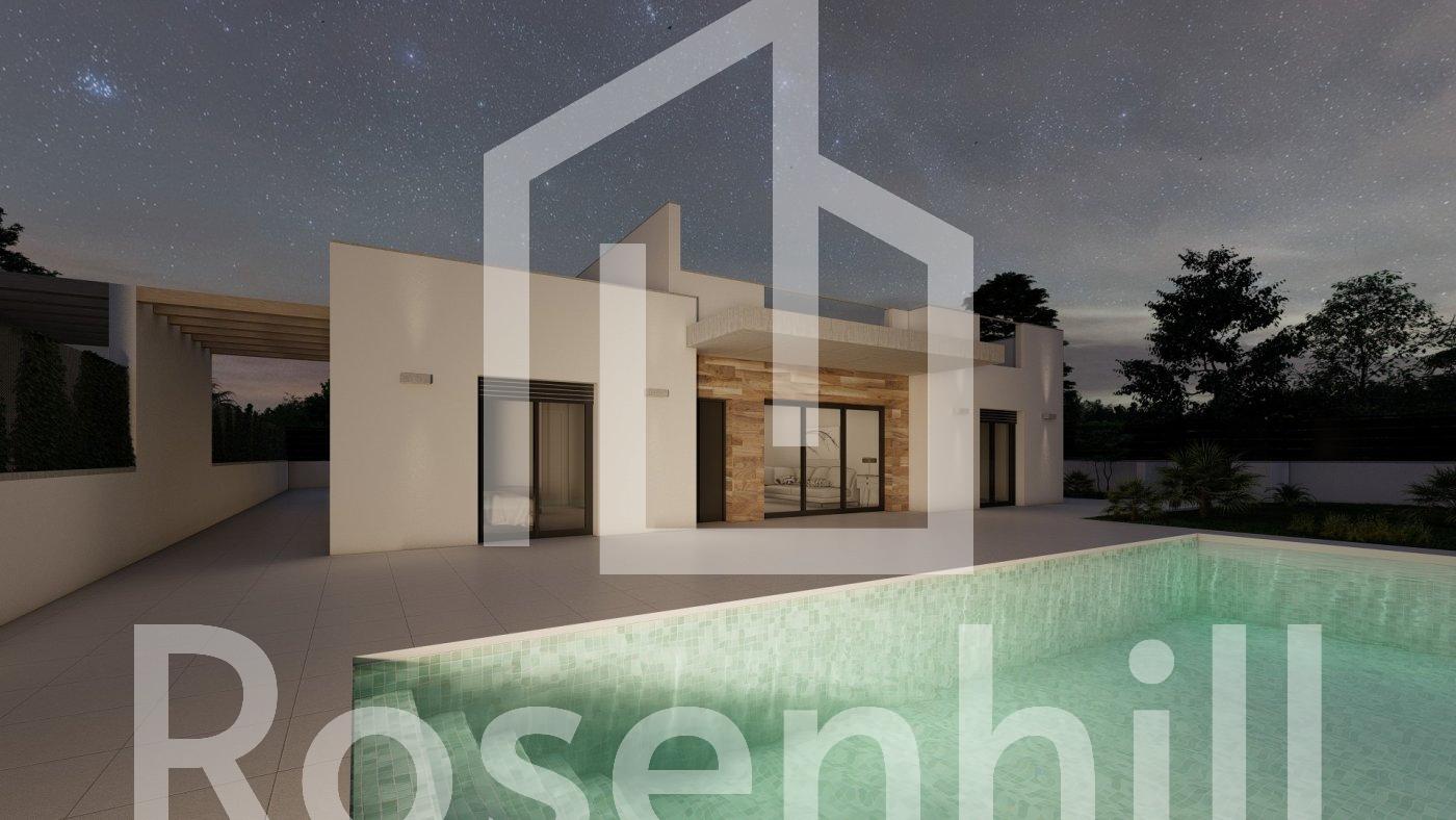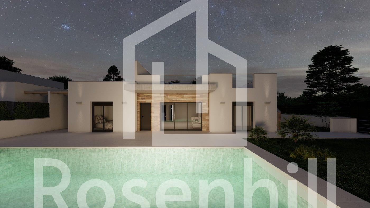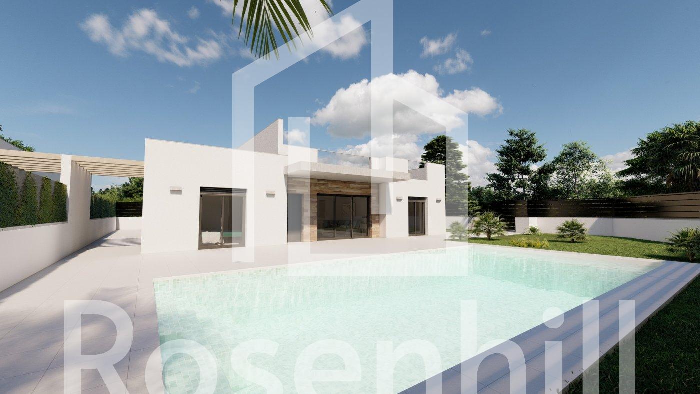 NEW BUILD VILLAS IN ROLDAN Luxury 2 one level New Build villas in Roldan, Murcia. Villas build on the plots of nearly 600 M2 each one, with private pool of 30 M2, garden area and large solarium on the roof. Each property has 4 bedrooms and 3 fitted bathrooms and have been designed with a contemporary style and an open planned concept, consisting of a fully-fitted kitchen and lounge-dining room. The development is located in Roldán (Murcia), in a gated and security control resort, included in a partial plan of 300,000 M2, surrounded by all services, sports facilities and near several Golf Courses. The property will meet the highest standards and will be equipped with: Private swimming pool of 30 M2 with solar shower. Pre-installation for heated pump. Kitchen completely furnished and equipped with raised oven, built-in microwave, integrated dishwasher, fridge and extractor fan. Island area in the kitchen. LED Lighting: inside the property (dining room, kitchen, corridors and bathrooms), as well as in outdoor areas. Lined wardrobes with drawers. Fully fitted bathrooms with suspended vanity unit and suspended toilet, mirror with light, shower with “rain effect” and shower screens. Pre-installation for ducted air conditioning. Summer kitchen with sliding doors in solarium. Pre-installation for washing machine and fridge socket. Solar panel. Parking on the plot. Roldan itself is a traditional town with all the local amenities you will need including Supermarkets, Restaurants, Bars, Health Clinic, Pharmacy, Police Station, Petrol Station, Mechanics, Dentists, Doctors and more. The nearby golf resorts of La Torre, & Terrazas are easily accessible, Corvera Airport is 15 minutes away & the beaches of the Mar Menor just 20 minutes drive.