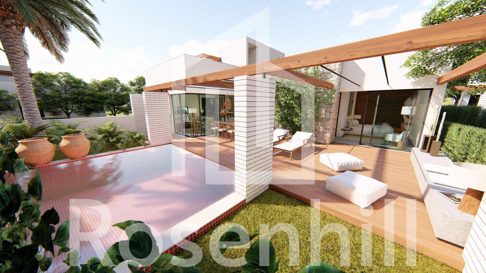 New Build Villas in Roldán – Modern Living with Mediterranean Style Exclusive New Construction Villas in El Alba Mediterranean Resort Discover this limited collection of 3 newly built independent villas in Roldán, located within the prestigious El Alba Mediterranean Resort. Designed on a single floor for maximum comfort and functionality, each villa offers the option to choose between 2 or 3 bedrooms and includes 2 bathrooms, a private pool, and a rooftop solarium. These contemporary homes combine elegant interior design with Mediterranean-inspired exteriors featuring natural stone and wood elements. The result is a perfect blend of style, quality, and convenience in a serene yet well-connected setting. Spacious, Bright, and Functional Interiors Each villa features: Open-plan living and dining area with a modern American-style kitchen Built-in wardrobes in all bedrooms Private garden with swimming pool Rooftop solarium ideal for sunbathing and outdoor entertaining Two private parking spaces Pre-installation of ducted air conditioning Kitchens equipped with high and low cabinets The single-level layout ensures easy accessibility and a practical flow throughout the home, making these villas ideal for both permanent living and holiday use. Unbeatable Location in Roldán, Murcia El Alba Mediterranean Resort is a gated residential community offering a range of amenities including: A social club with bar and lounge Communal swimming pool Paddle tennis courts Landscaped areas and pedestrian-friendly streets Located just a short walk from the center of Roldán, residents have access to supermarkets, banks, restaurants, and cafés. The peaceful town of Roldán provides all daily services while preserving a relaxed village charm. Nearby Points of Interest Beaches of the Mar Menor: 15 km Terrazas de la Torre Golf Course: 4 km La Torre Golf Resort: 6 km Dos Mares Shopping Center: 25 km Murcia International Airport (RMU): 20 km Cartagena city center: 35 km Murcia city center: 36 km This region of Murcia is renowned for its mild climate, natural beauty, and a high quality of life. With excellent road connections, you can reach nearby cities, beaches, and golf courses within minutes. Your dream home in the sun is waiting. Contact us now to schedule a visit or request more information.