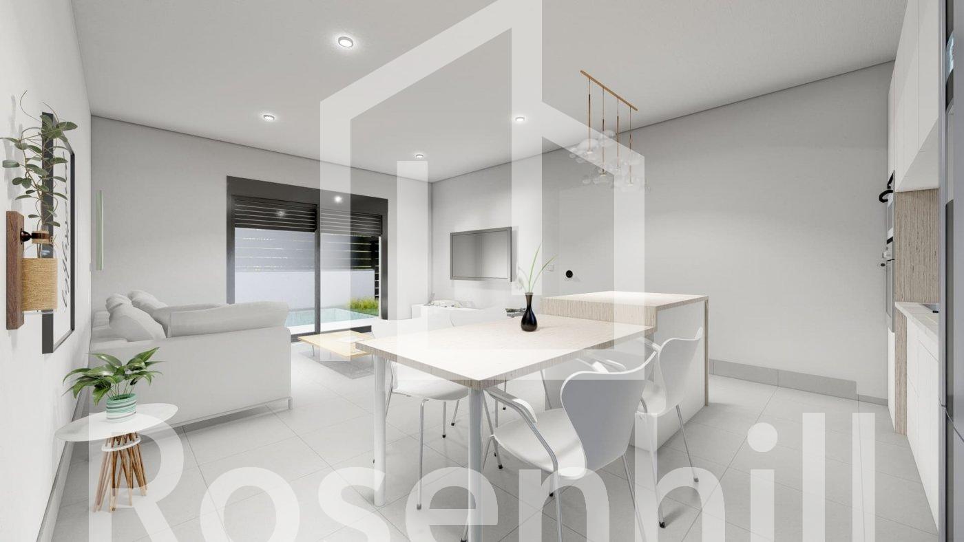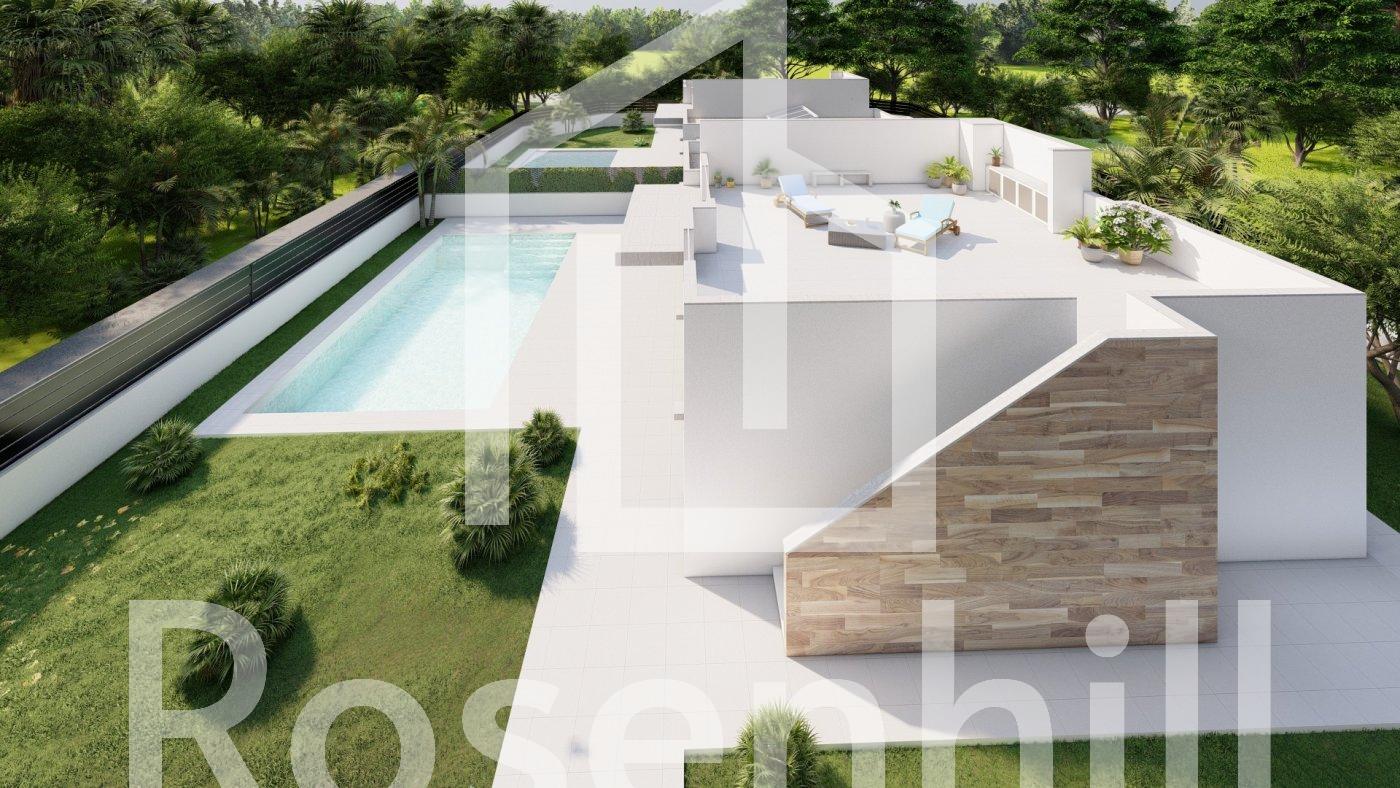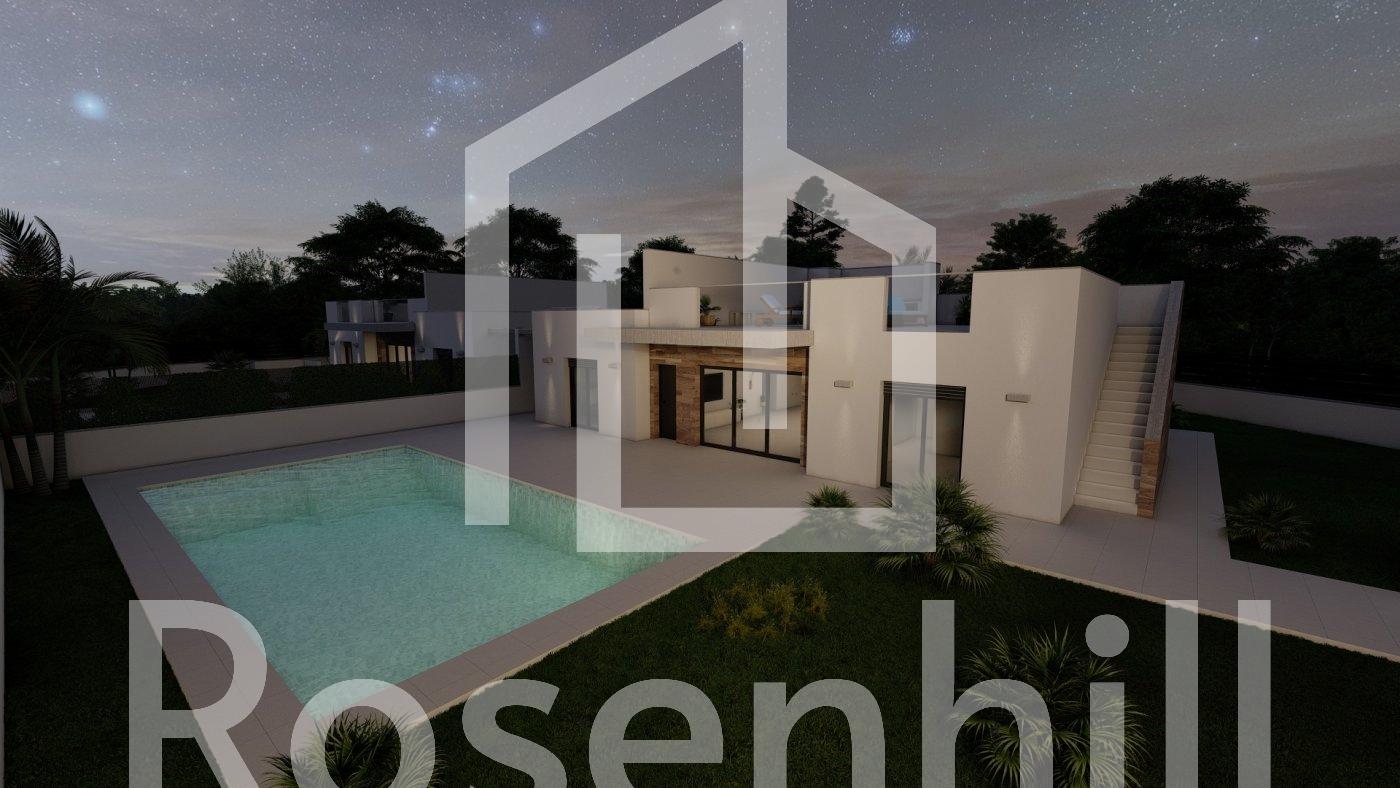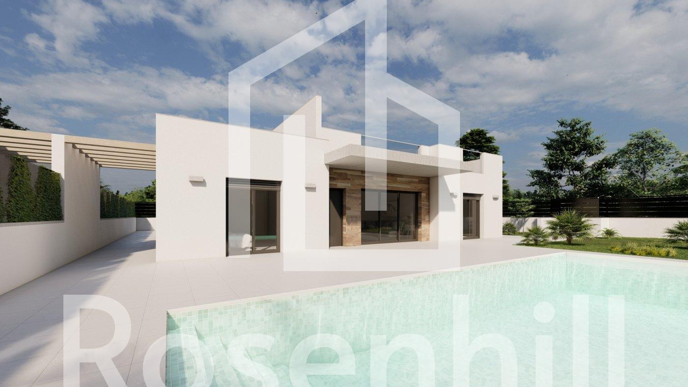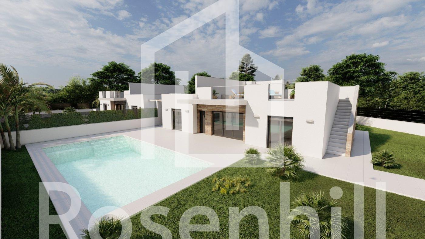 NEW BUILD VILLAS IN ROLDAN Luxury 2 one level New Build villas in Roldan, Murcia. Villas build on the plots of nearly 600 M2 each one, with private pool of 30 M2, garden area and large solarium on the roof. Each property has 4 bedrooms and 3 fitted bathrooms and have been designed with a contemporary style and an open planned concept, consisting of a fully-fitted kitchen and lounge-dining room. The development is located in Roldán (Murcia), in a gated and security control resort, included in a partial plan of 300,000 M2, surrounded by all services, sports facilities and near several Golf Courses. The property will meet the highest standards and will be equipped with: Private swimming pool of 30 M2 with solar shower. Pre-installation for heated pump. Kitchen completely furnished and equipped with raised oven, built-in microwave, integrated dishwasher, fridge and extractor fan. Island area in the kitchen. LED Lighting: inside the property (dining room, kitchen, corridors and bathrooms), as well as in outdoor areas. Lined wardrobes with drawers. Fully fitted bathrooms with suspended vanity unit and suspended toilet, mirror with light, shower with “rain effect” and shower screens. Pre-installation for ducted air conditioning. Summer kitchen with sliding doors in solarium. Pre-installation for washing machine and fridge socket. Solar panel. Parking on the plot. Roldan itself is a traditional town with all the local amenities you will need including Supermarkets, Restaurants, Bars, Health Clinic, Pharmacy, Police Station, Petrol Station, Mechanics, Dentists, Doctors and more. The nearby golf resorts of La Torre, & Terrazas are easily accessible, Corvera Airport is 15 minutes away & the beaches of the Mar Menor just 20 minutes drive.