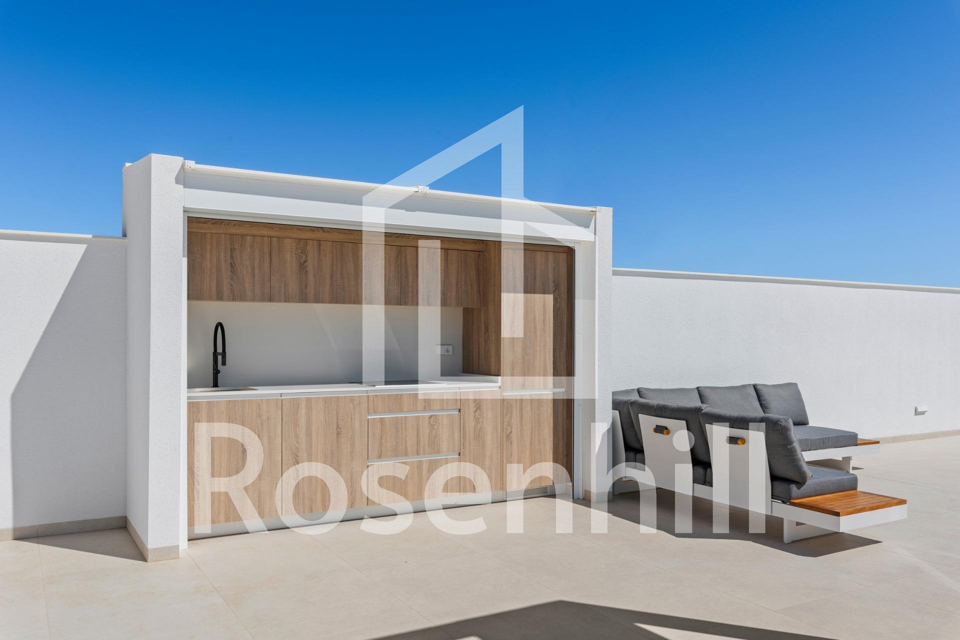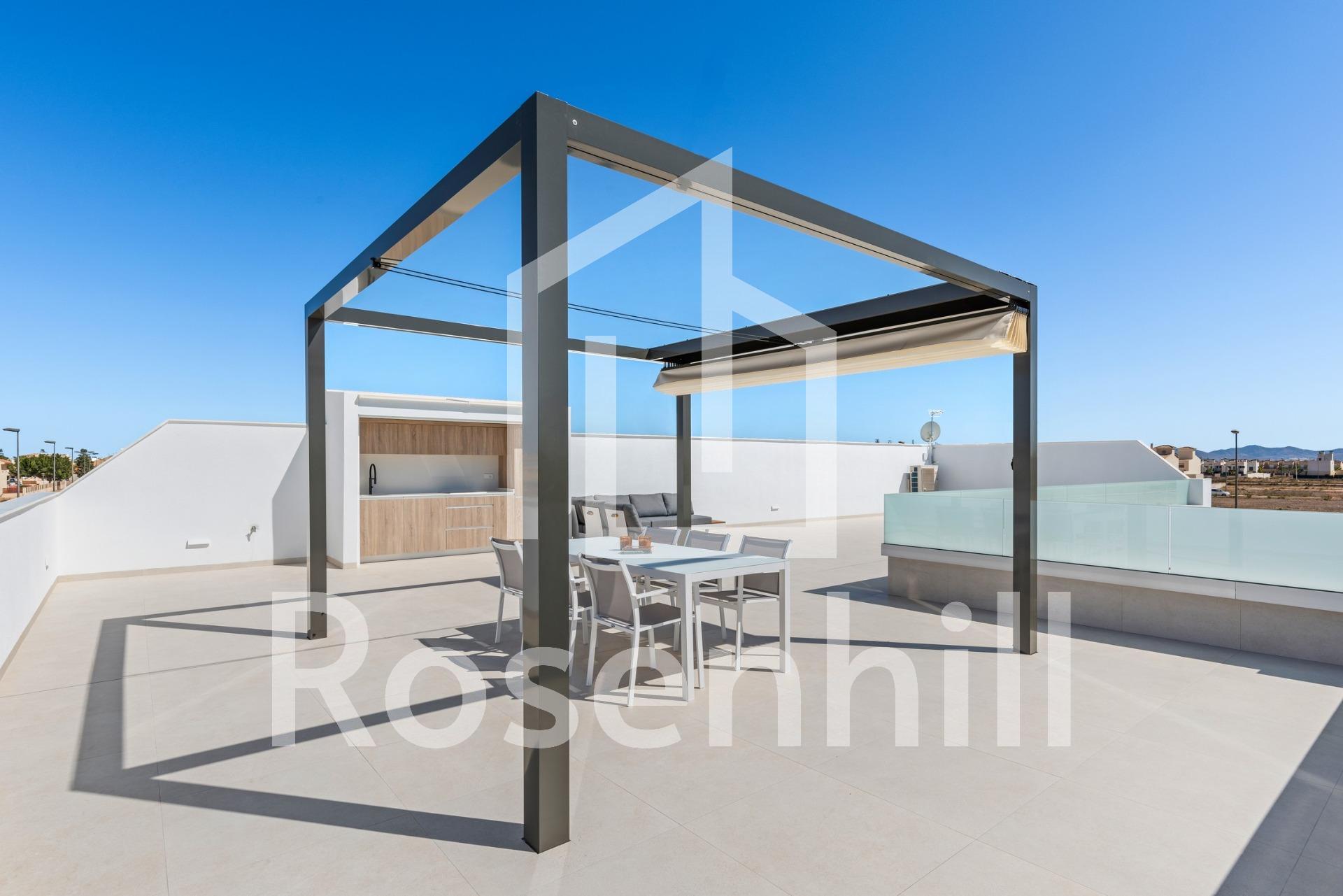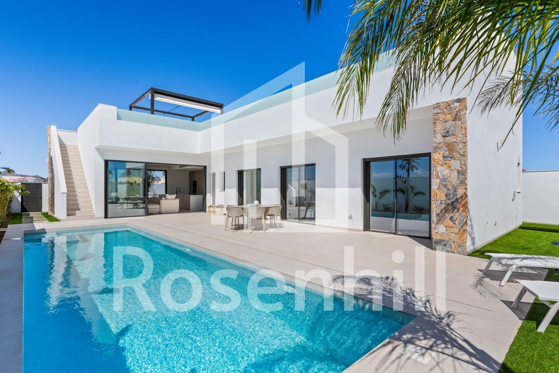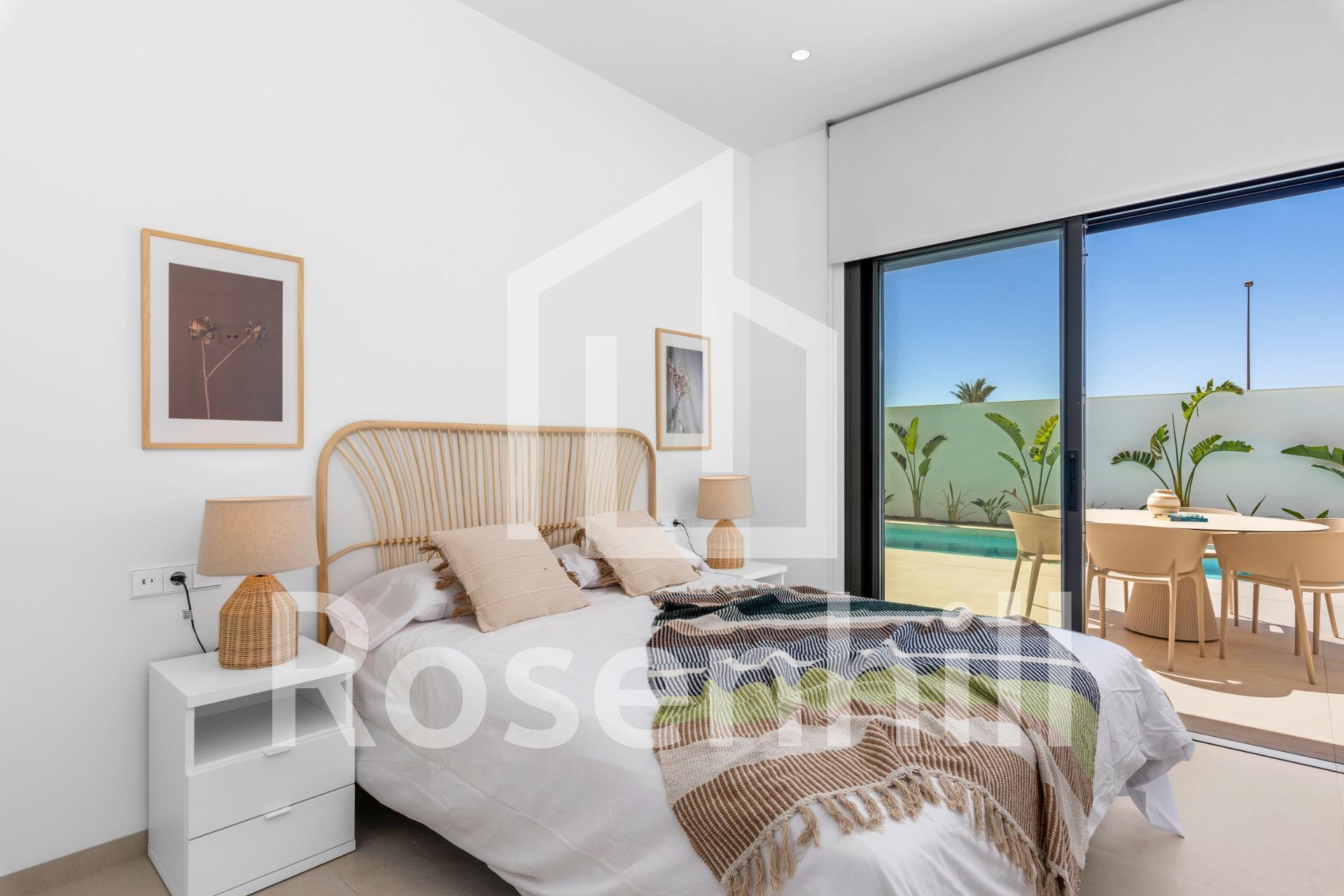 NEW BUILD VILLAS IN SAN JAVIER New build residential development of villas in San Javier, 2.5 km from the beach. Villas built on one floor and consisting of 3 bedrooms, 2 bathrooms and 1 toilet, open-plan kitchen, living room with open views to the terrace, private garden with swimming pool and solarium. Fully fitted kitchen in gloss white or wood including induction hob with integrated extractor, oven, microwave, washing machine, integrated fridge and integrated dishwasher. Complete ducted air conditioning installation. The pool has pre-installation for a heat pump. San Javier is close to all amenities with easy access to the beach, water sports, shops and transport links. Here you can enjoy all the facilities that San Javier has to offer, such as local shops, bars and restaurants, as well as being close to shopping centres, Murcia airport and all the beautiful places along the Mar Menor. Corvera/Murcia airport is 30 minutes away and Alicante airport is 45 minutes away.