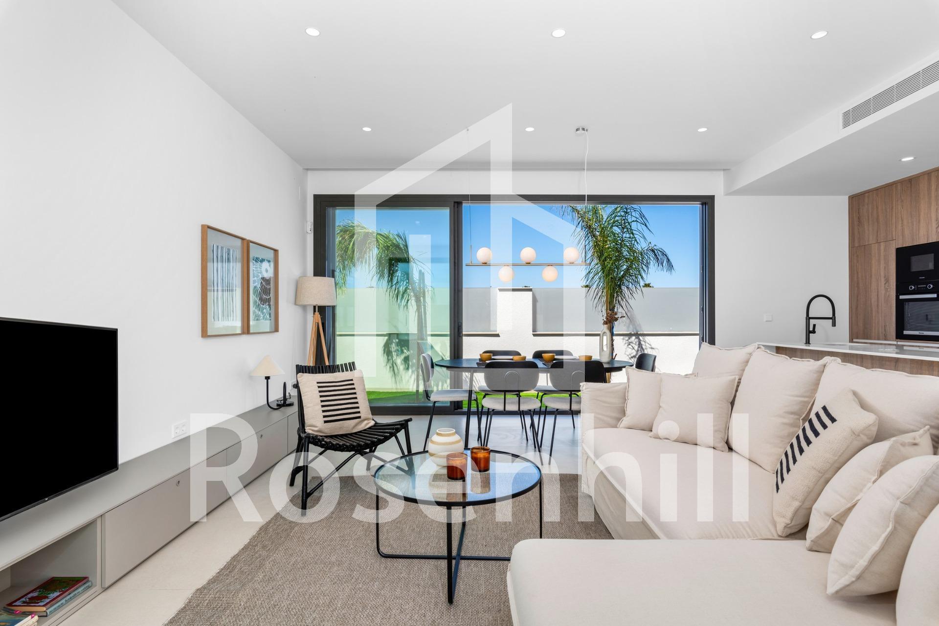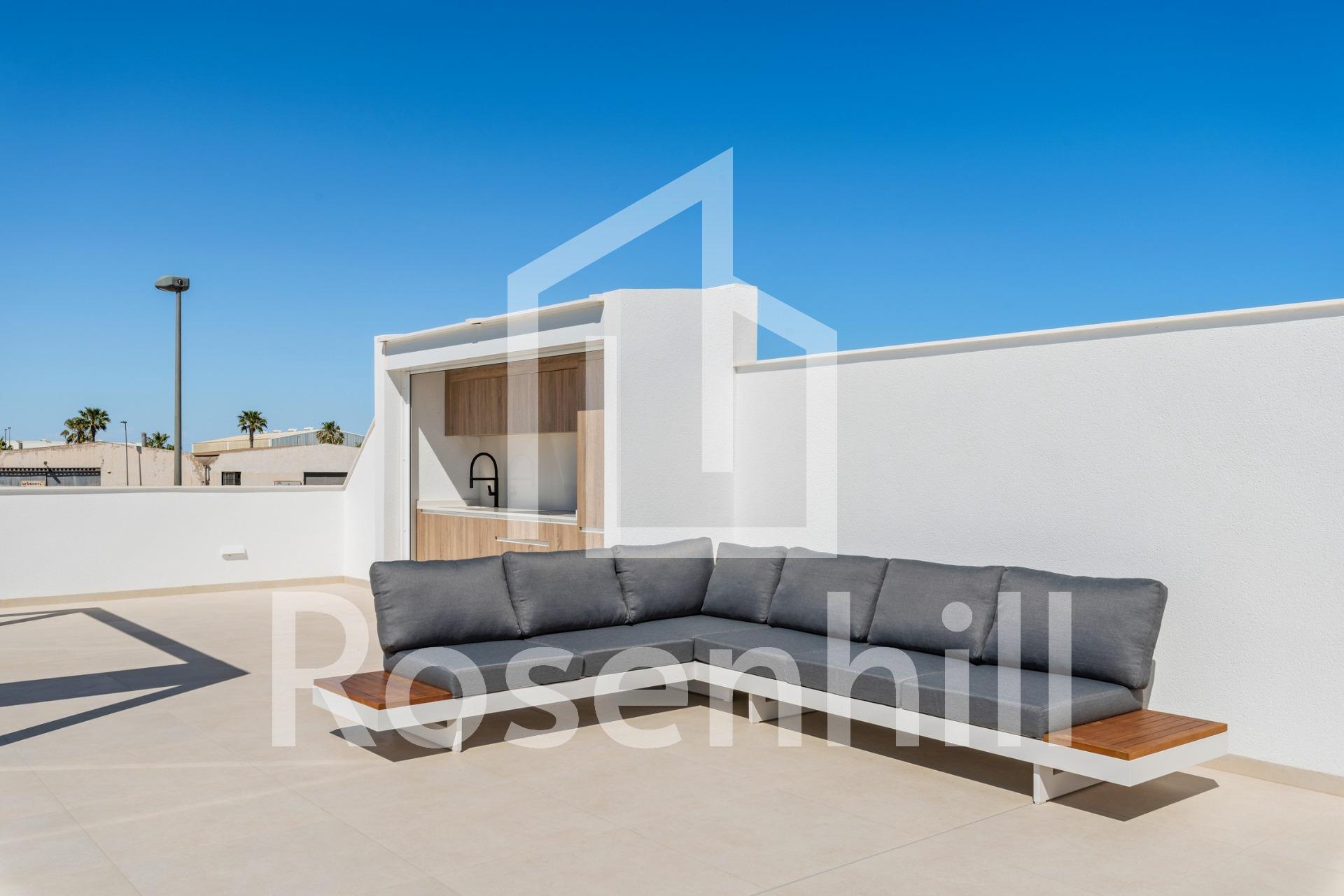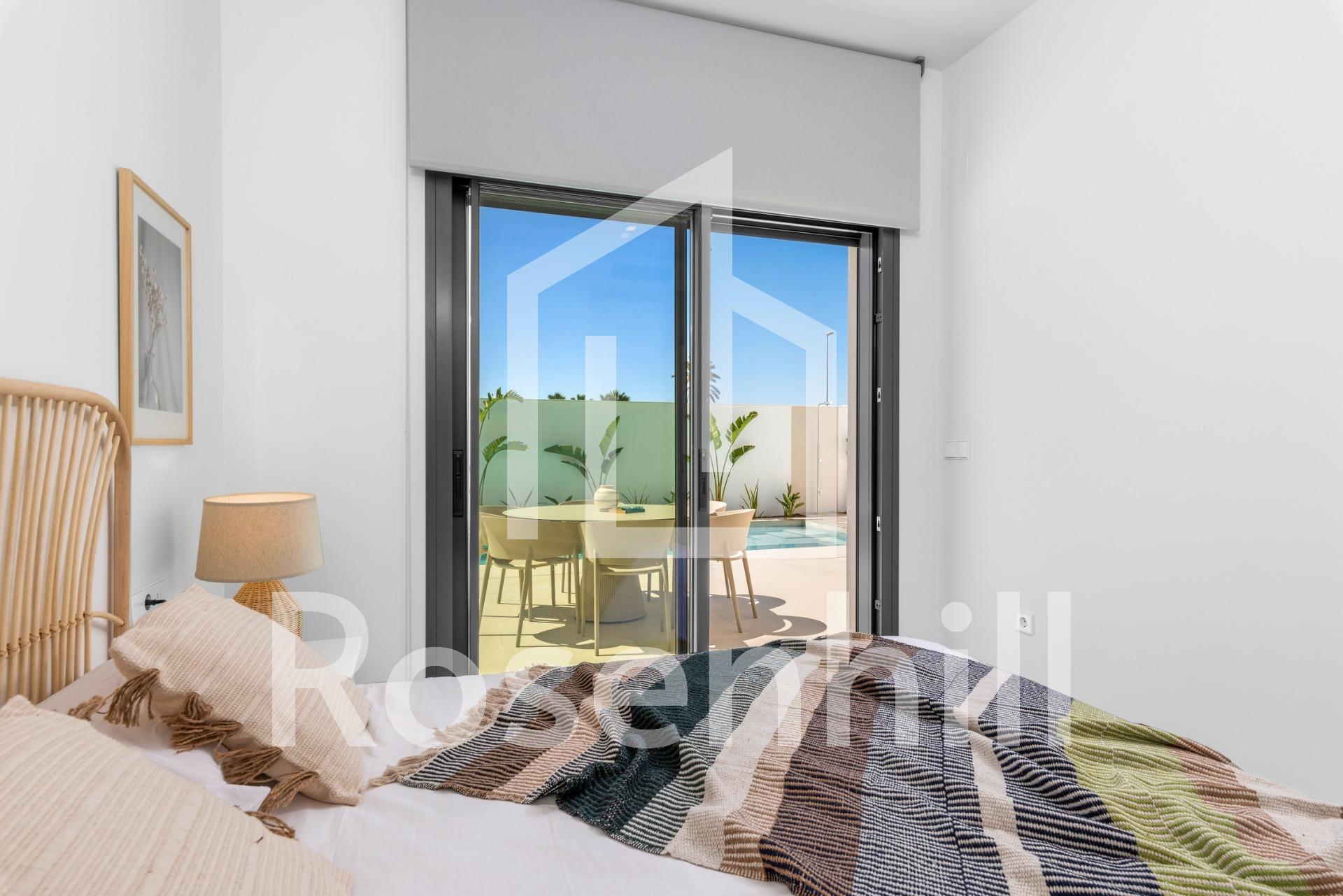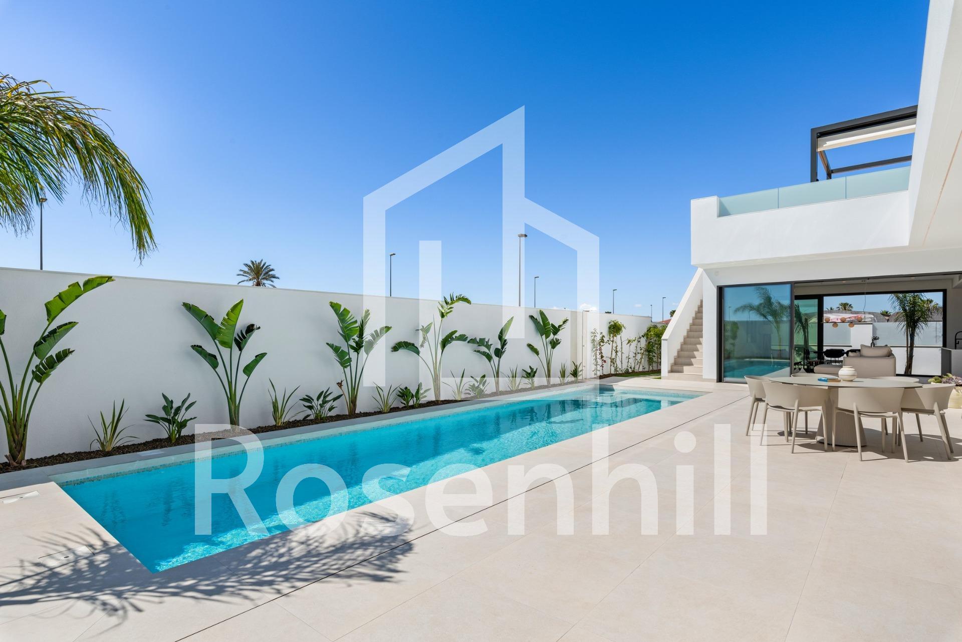 NEW BUILD VILLAS IN SAN JAVIER New build residential development of villas in San Javier, 2.5 km from the beach. Villas built on one floor and consisting of 3 bedrooms, 2 bathrooms and 1 toilet, open-plan kitchen, living room with open views to the terrace, private garden with swimming pool and solarium. Fully fitted kitchen in gloss white or wood including induction hob with integrated extractor, oven, microwave, washing machine, integrated fridge and integrated dishwasher. Complete ducted air conditioning installation. The pool has pre-installation for a heat pump. San Javier is close to all amenities with easy access to the beach, water sports, shops and transport links. Here you can enjoy all the facilities that San Javier has to offer, such as local shops, bars and restaurants, as well as being close to shopping centres, Murcia airport and all the beautiful places along the Mar Menor. Corvera/Murcia airport is 30 minutes away and Alicante airport is 45 minutes away.
