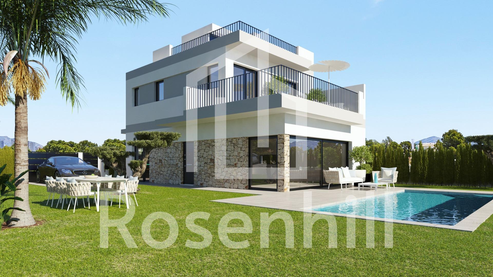 NEW BUILD VILLAS IN SAN MIGUEL DE SALINAS Exclusive new residential complex offering luxury villas with plots from 300 m2 and an impressive 8×3,5m swimming pool. Optional basement and solarium These modern homes offer 3 bedrooms, 3 bathrooms, a spacious living-dining room and a fully equipped kitchen, as well as a garden, and swimming pool. The villas stand out for their bright and open spaces, which offer exceptional views and a layout that optimises every corner of the home to the maximum. High quality finishes and interiors merge into a contemporary concept of luxury, combining the elegance, comfort and refinement that buyers desire. The design and construction of this residential complex has taken into account fundamental aspects such as energy efficiency and the use of top quality materials, thus guaranteeing a sustainable and long-lasting lifestyle. San Miguel de Salinas is a municipality in the Valencian Community, Spain. Located in the south of the province of Alicante, in the region of Vega Baja del Segura near the Region of Murcia. San Miguel de Salinas located close to the Las Colinas and Campoamor golf courses, offers exceptional views of the Torrevieja and La Mata lagoons. Alicante airport located 35 minutes drive away and Murcias Corvera airport is about 1 hour drive away.