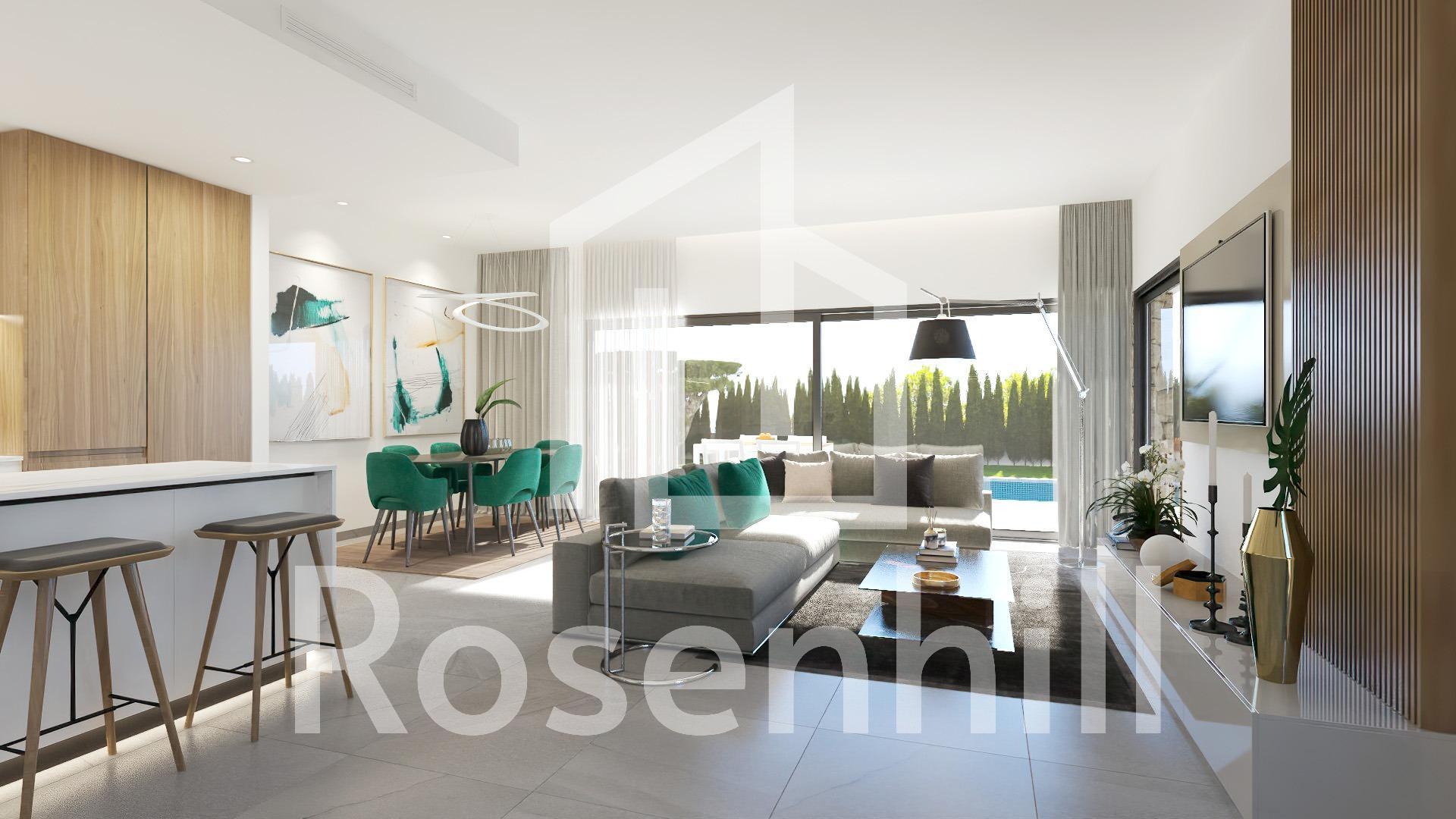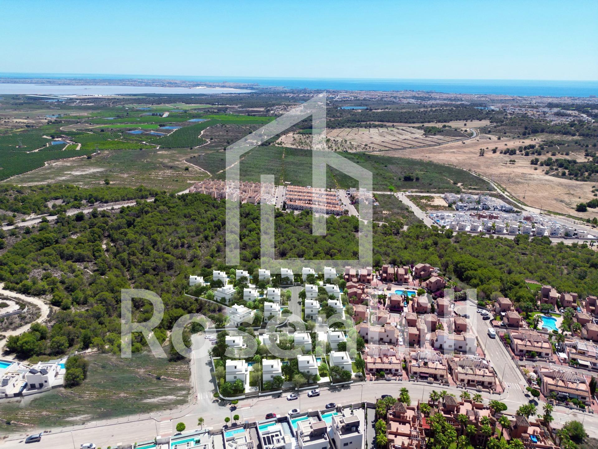 NEW BUILD VILLAS IN SAN MIGUEL DE SALINAS Exclusive new residential complex offering luxury villas with plots from 300 m2 and an impressive 8×3,5m swimming pool. Optional basement and solarium These modern homes offer 3 bedrooms, 3 bathrooms, a spacious living-dining room and a fully equipped kitchen, as well as a garden, and swimming pool. The villas stand out for their bright and open spaces, which offer exceptional views and a layout that optimises every corner of the home to the maximum. High quality finishes and interiors merge into a contemporary concept of luxury, combining the elegance, comfort and refinement that buyers desire. The design and construction of this residential complex has taken into account fundamental aspects such as energy efficiency and the use of top quality materials, thus guaranteeing a sustainable and long-lasting lifestyle. San Miguel de Salinas is a municipality in the Valencian Community, Spain. Located in the south of the province of Alicante, in the region of Vega Baja del Segura near the Region of Murcia. San Miguel de Salinas located close to the Las Colinas and Campoamor golf courses, offers exceptional views of the Torrevieja and La Mata lagoons. Alicante airport located 35 minutes drive away and Murcias Corvera airport is about 1 hour drive away.