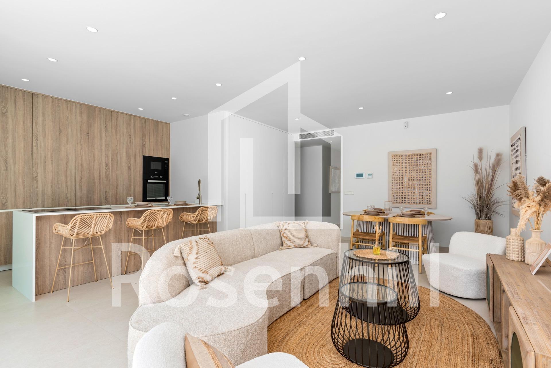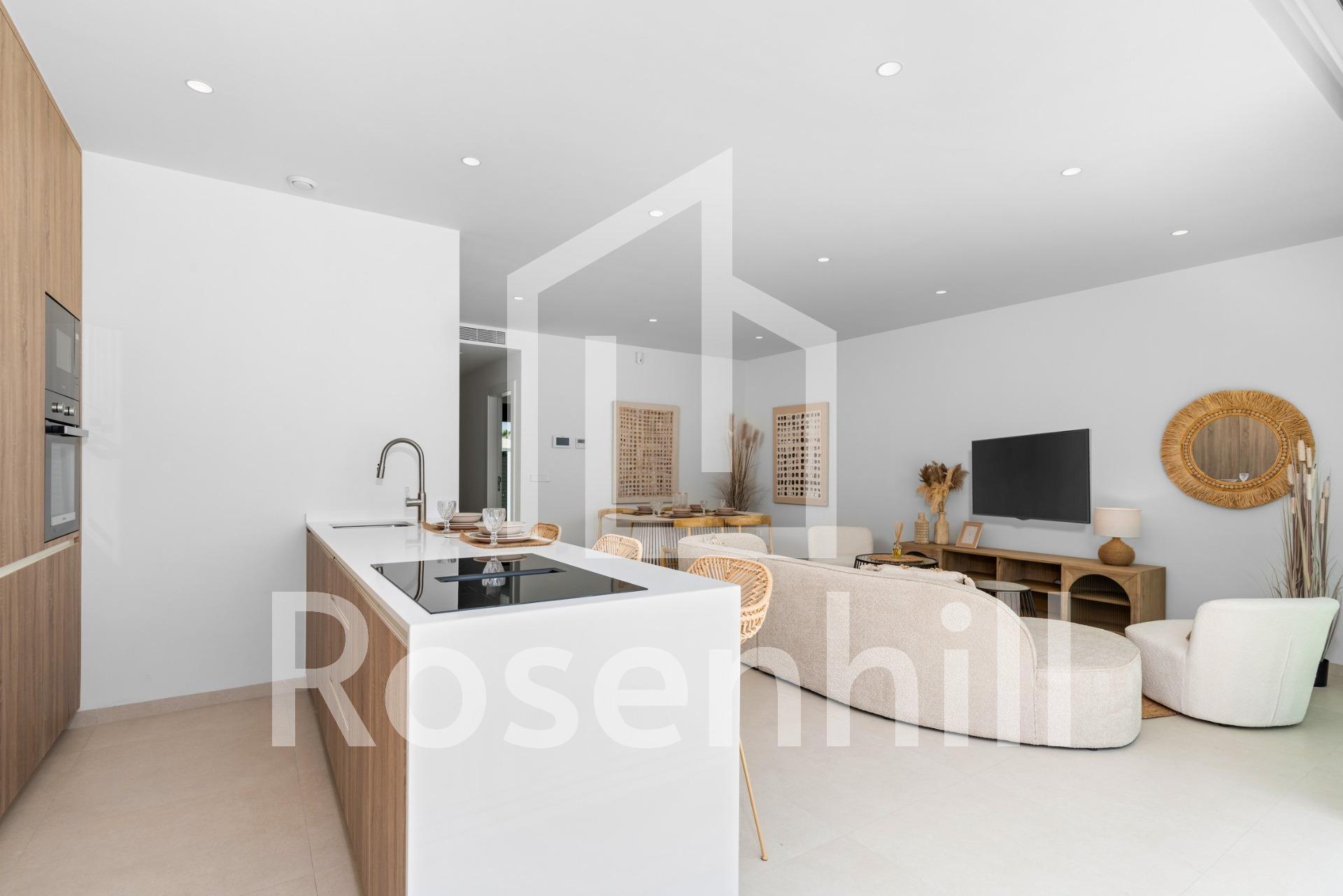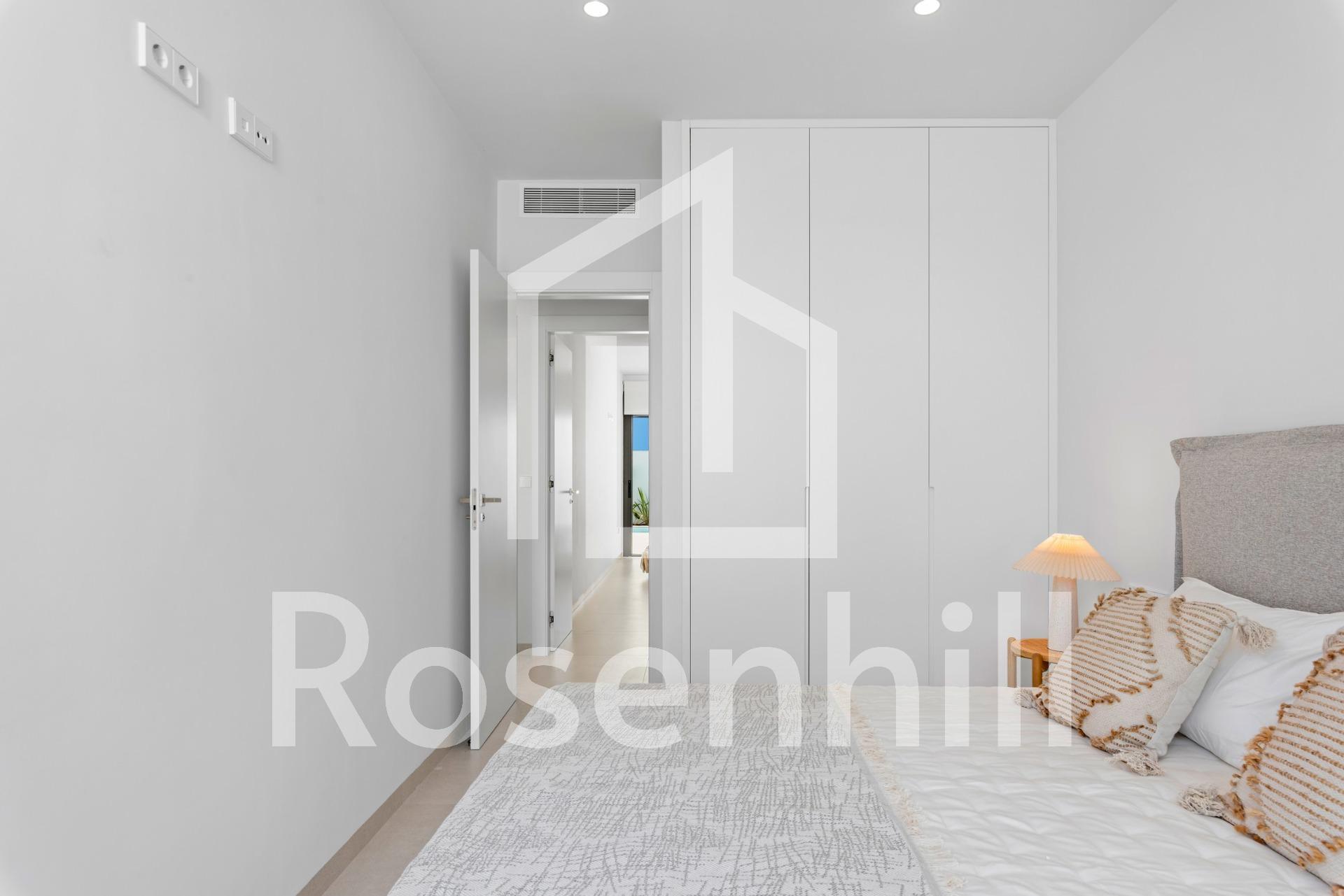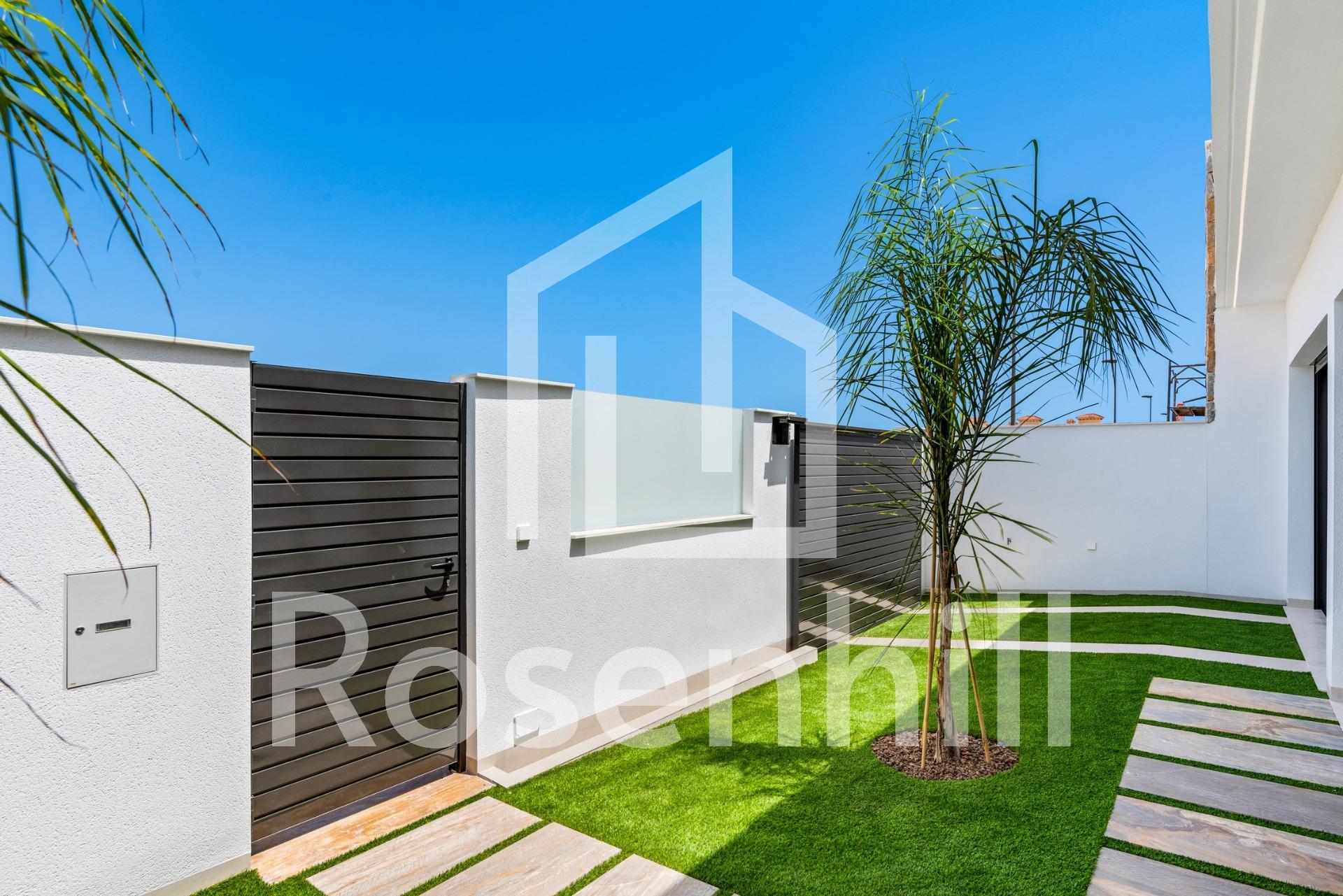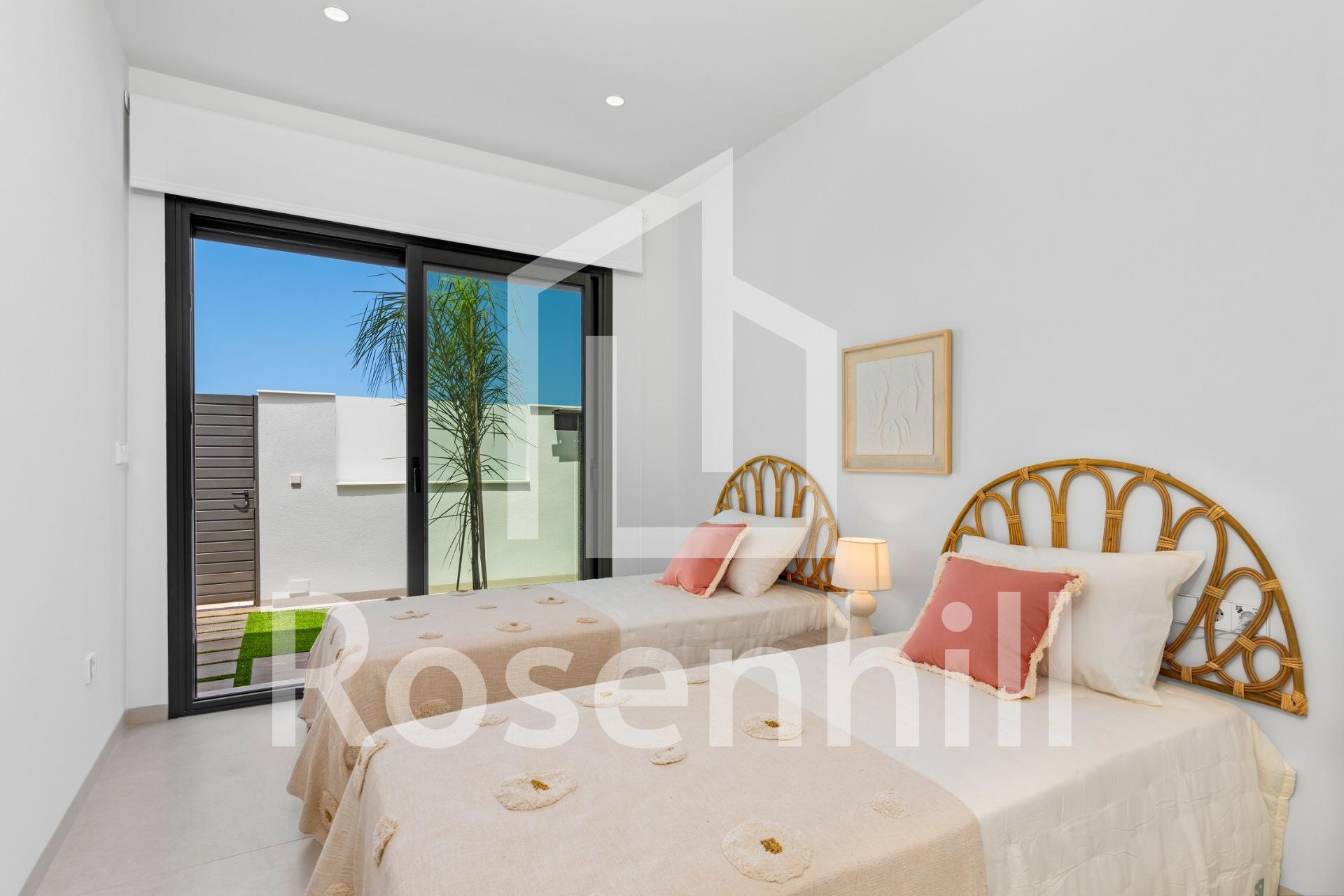 New Build Villas Near Serena Golf in Los Alcazares Modern Villas in a Prime Coastal and Golf Location This exclusive new build residential project offers modern villas located in Los Alcazares, just a short distance from the prestigious Serena Golf and only 1.2 km from the sandy beaches of the Mar Menor. Set in one of the most attractive areas of the Region of Murcia, these homes combine contemporary design, comfort and an excellent location close to the sea, golf and all daily services. Los Alcazares is a well established coastal town known for its relaxed lifestyle, long promenade, water sports and mild climate throughout the year. Single Level Design with Private Outdoor Spaces The development features stylish villas with 3 bedrooms and 2 bathrooms, available in two different built sizes of approximately 106 sqm and 130 sqm. The larger model also includes an additional guest toilet. All villas are designed on a single floor, offering practical and comfortable living. The open plan kitchen, dining and living area connects directly to a terrace and private garden with swimming pool, creating an ideal space for indoor and outdoor living. Each property also includes a private solarium and on plot parking. High Quality Finishes and Modern Equipment These villas are built with high quality materials and equipped with modern features. The fully fitted kitchens are available in white gloss or wood finish and include quartz worktops, stainless steel sink, induction hob with integrated extractor, oven, microwave, washing machine, integrated fridge and dishwasher. Bathrooms are fitted with furniture, mirrors, lighting and electric towel heaters. Additional features include electric blinds in bedrooms, LED lighting throughout the property and a complete ducted air conditioning system by Fujitsu. Private Pool and Energy Efficient Comfort Each villa includes a private swimming pool finished with blue ceramic tiles, integrated steps and white LED lighting. The pool is prepared with pre installation for a heat pump. The combination of efficient climate control, modern construction and thoughtful design ensures comfort all year round. Excellent Connectivity and Key Distances The villas are within walking distance of the town centre of Los Alcazares and very close to Serena Golf. The beach is approximately 1.2 km away. Cartagena city is around 20 km away, offering a rich cultural and gastronomic scene. Murcia Corvera International Airport is about 22 km away, and Alicante Airport is approximately 90 km. Several golf courses and marinas are also nearby, making this location ideal for both permanent living and holidays. Your Ideal Home by the Sea and Golf If you are looking for a modern new build villa near the beach and golf in Los Alcazares, contact us today for more information or to arrange a private viewing.
