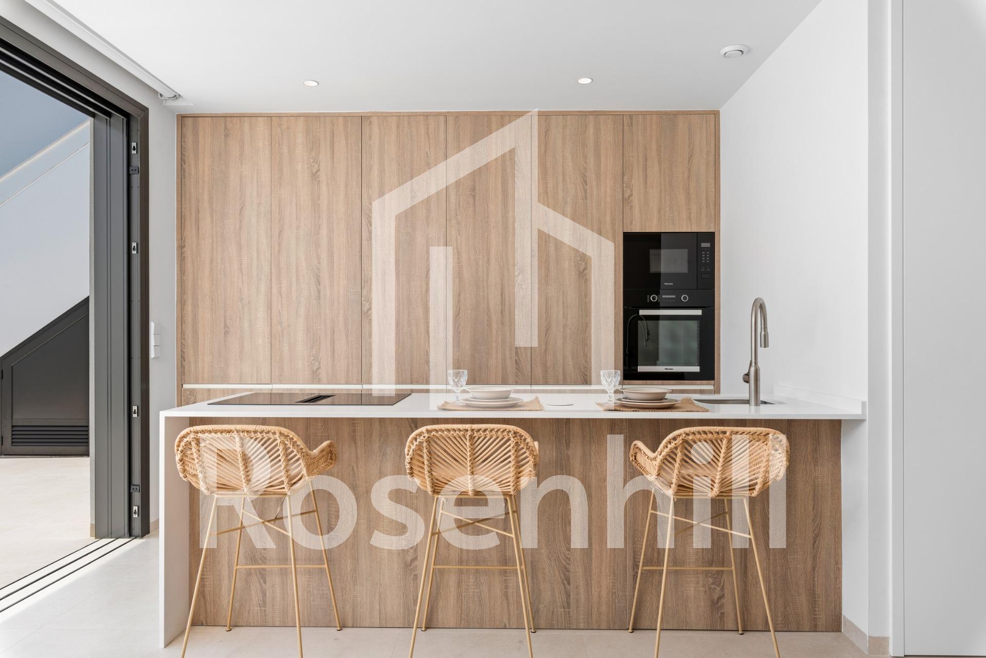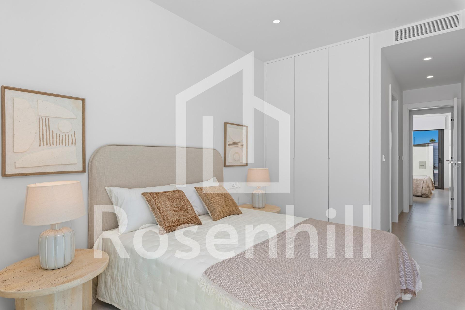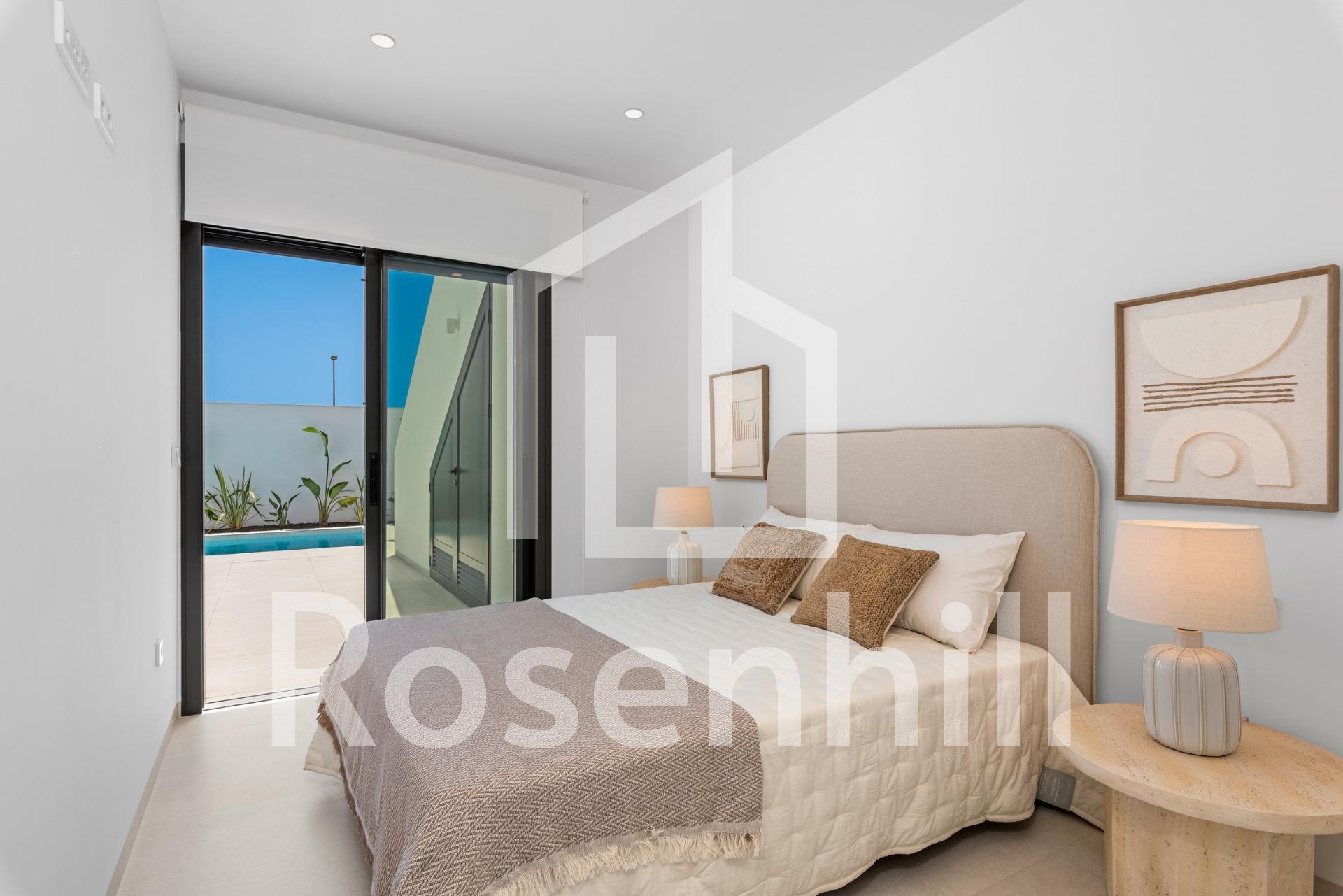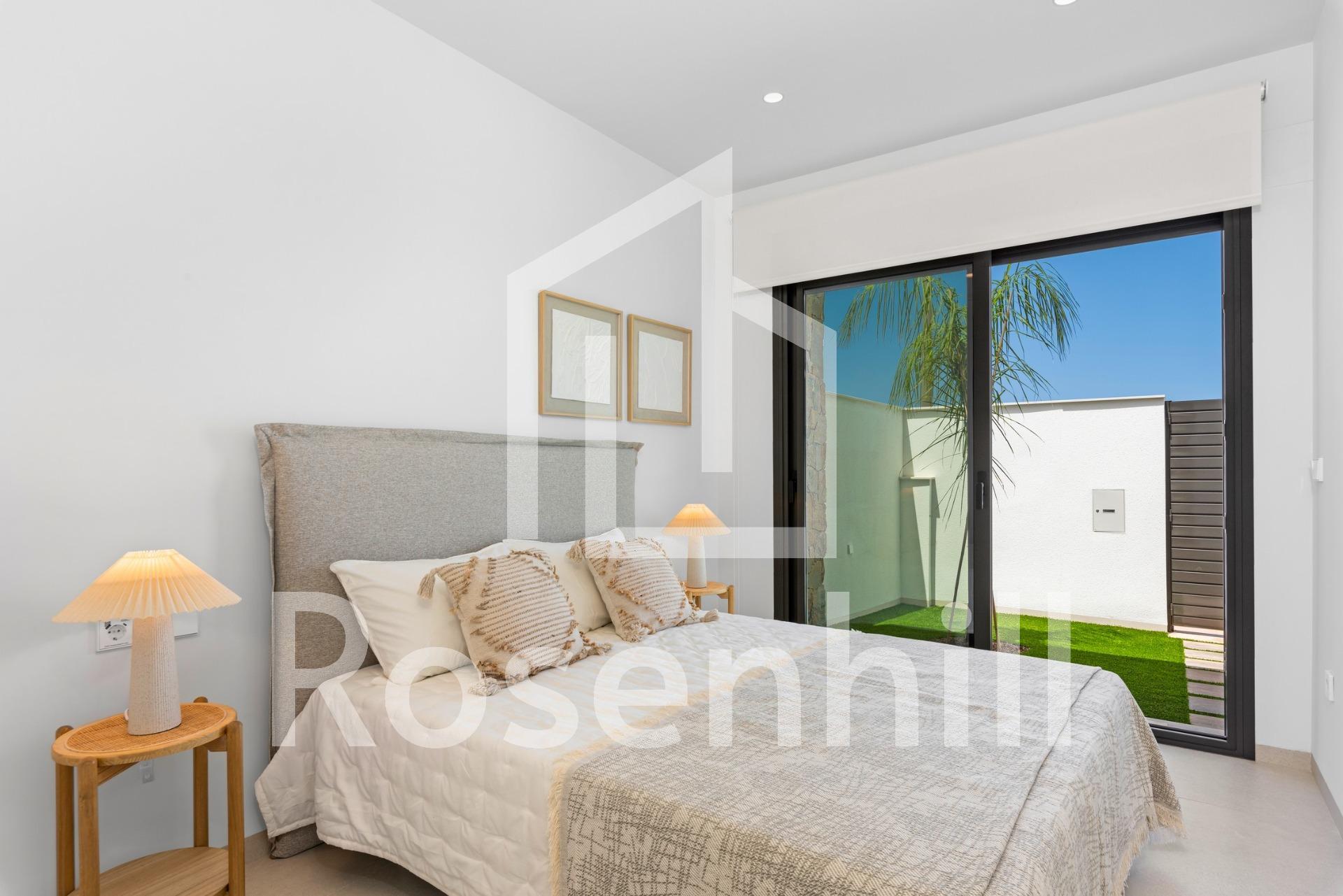 New Build Villas Near Serena Golf in Los Alcazares Modern Villas in a Prime Coastal and Golf Location This exclusive new build residential project offers modern villas located in Los Alcazares, just a short distance from the prestigious Serena Golf and only 1.2 km from the sandy beaches of the Mar Menor. Set in one of the most attractive areas of the Region of Murcia, these homes combine contemporary design, comfort and an excellent location close to the sea, golf and all daily services. Los Alcazares is a well established coastal town known for its relaxed lifestyle, long promenade, water sports and mild climate throughout the year. Single Level Design with Private Outdoor Spaces The development features stylish villas with 3 bedrooms and 2 bathrooms, available in two different built sizes of approximately 106 sqm and 130 sqm. The larger model also includes an additional guest toilet. All villas are designed on a single floor, offering practical and comfortable living. The open plan kitchen, dining and living area connects directly to a terrace and private garden with swimming pool, creating an ideal space for indoor and outdoor living. Each property also includes a private solarium and on plot parking. High Quality Finishes and Modern Equipment These villas are built with high quality materials and equipped with modern features. The fully fitted kitchens are available in white gloss or wood finish and include quartz worktops, stainless steel sink, induction hob with integrated extractor, oven, microwave, washing machine, integrated fridge and dishwasher. Bathrooms are fitted with furniture, mirrors, lighting and electric towel heaters. Additional features include electric blinds in bedrooms, LED lighting throughout the property and a complete ducted air conditioning system by Fujitsu. Private Pool and Energy Efficient Comfort Each villa includes a private swimming pool finished with blue ceramic tiles, integrated steps and white LED lighting. The pool is prepared with pre installation for a heat pump. The combination of efficient climate control, modern construction and thoughtful design ensures comfort all year round. Excellent Connectivity and Key Distances The villas are within walking distance of the town centre of Los Alcazares and very close to Serena Golf. The beach is approximately 1.2 km away. Cartagena city is around 20 km away, offering a rich cultural and gastronomic scene. Murcia Corvera International Airport is about 22 km away, and Alicante Airport is approximately 90 km. Several golf courses and marinas are also nearby, making this location ideal for both permanent living and holidays. Your Ideal Home by the Sea and Golf If you are looking for a modern new build villa near the beach and golf in Los Alcazares, contact us today for more information or to arrange a private viewing.
